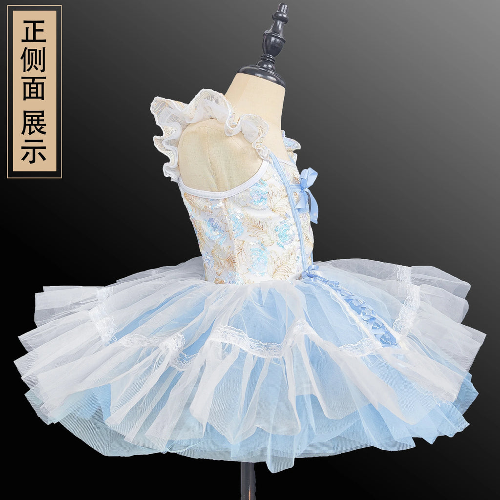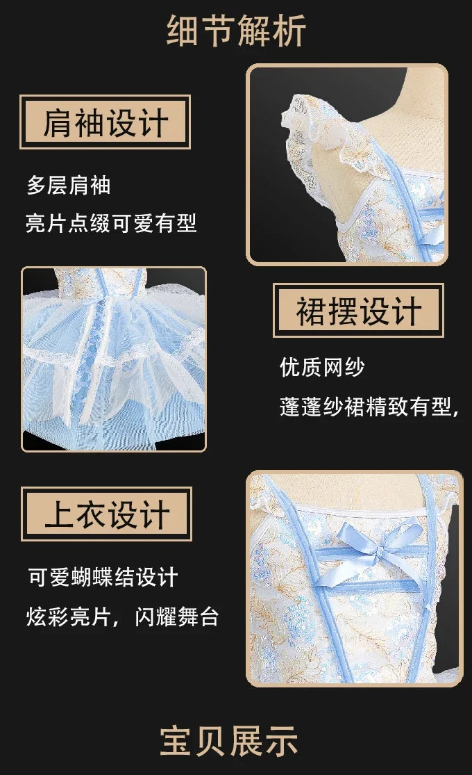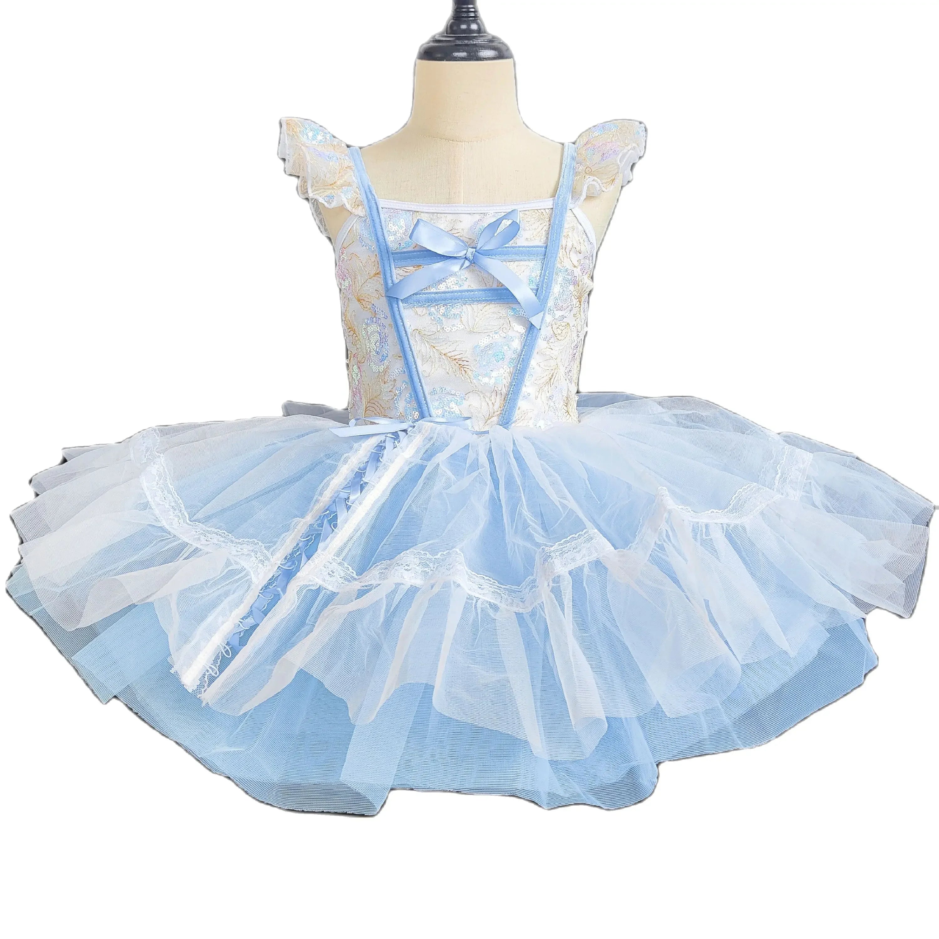 Blue Sequined Dance Costume Tutu Dress for Kids - Ballroom, Jazz, Party Wear