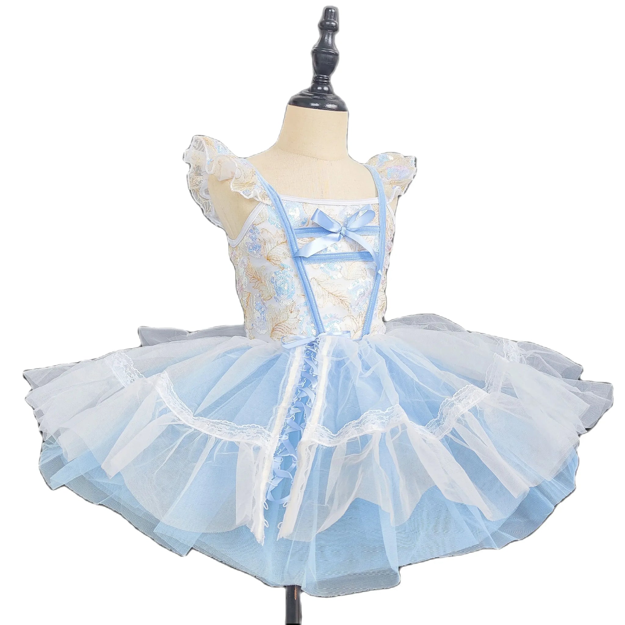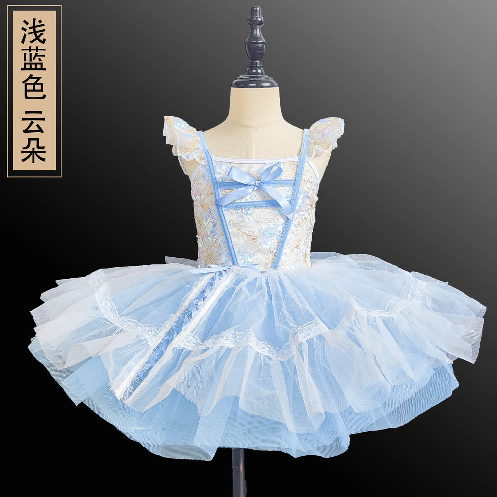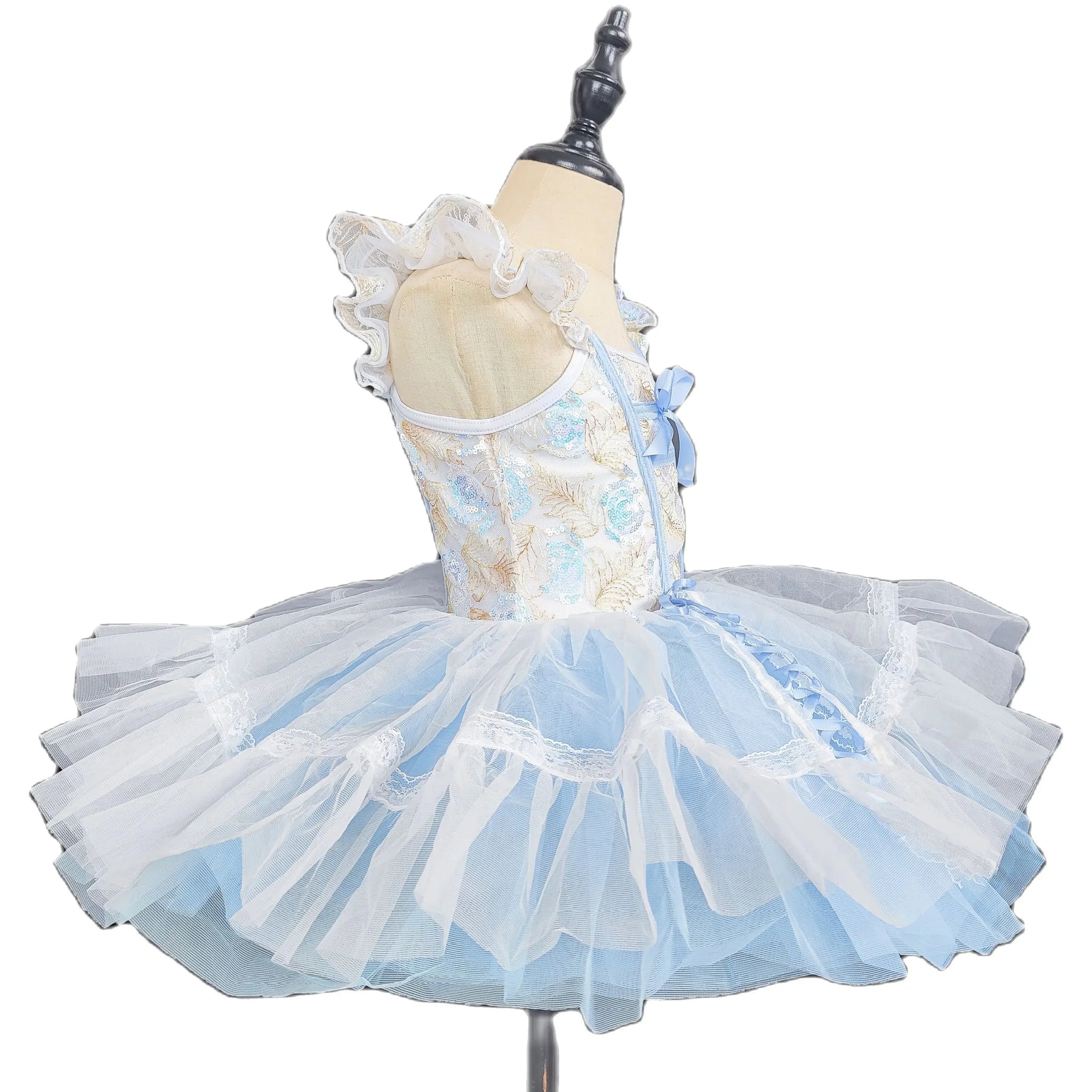 Blue Sequined Dance Costume Tutu Dress for Kids - Ballroom, Jazz, Party Wear