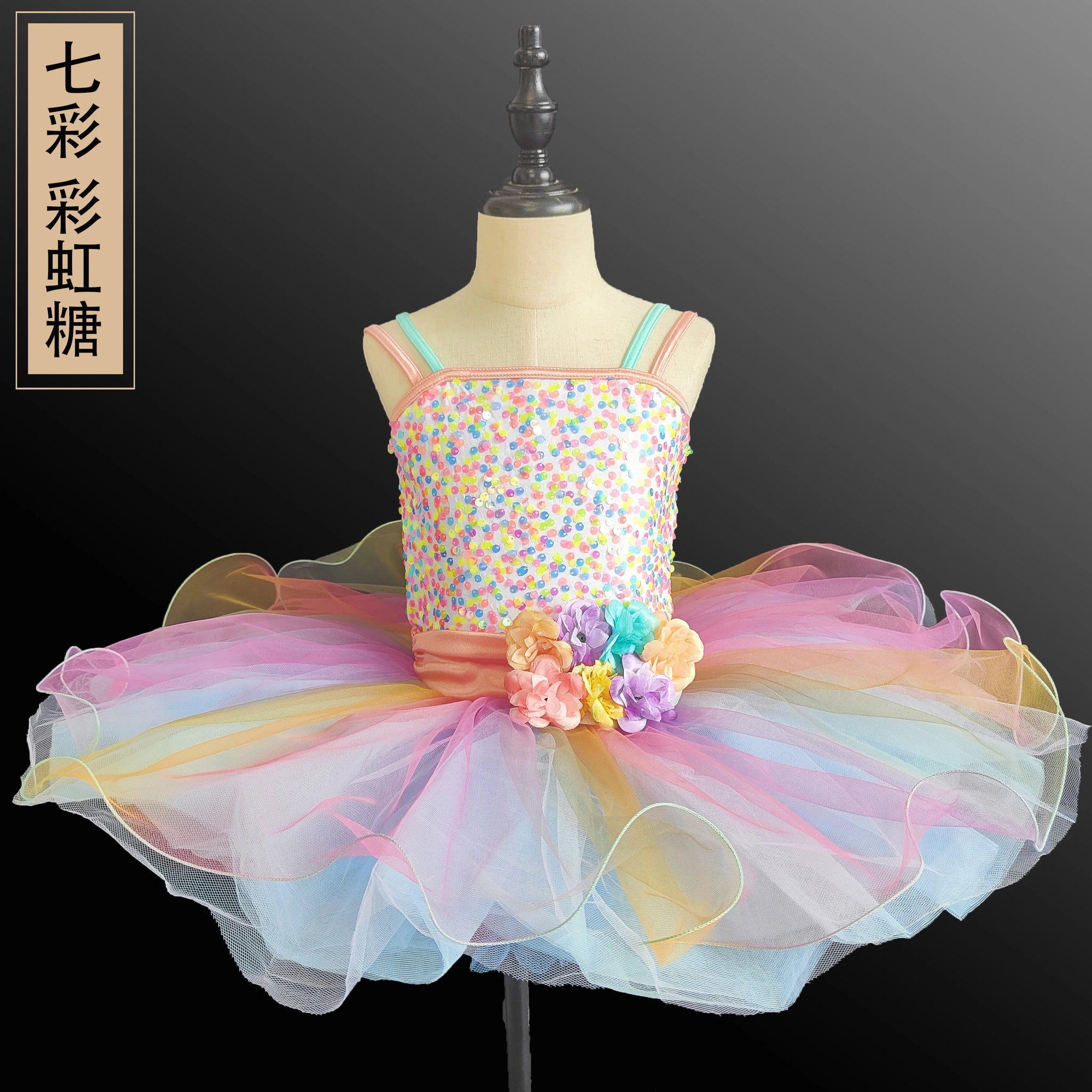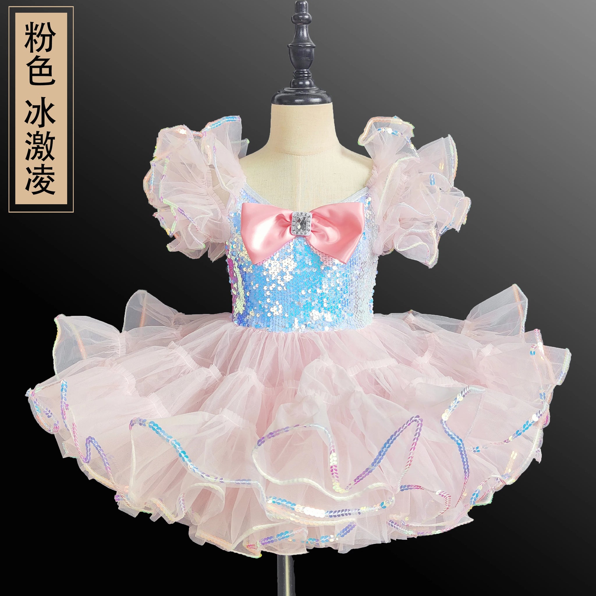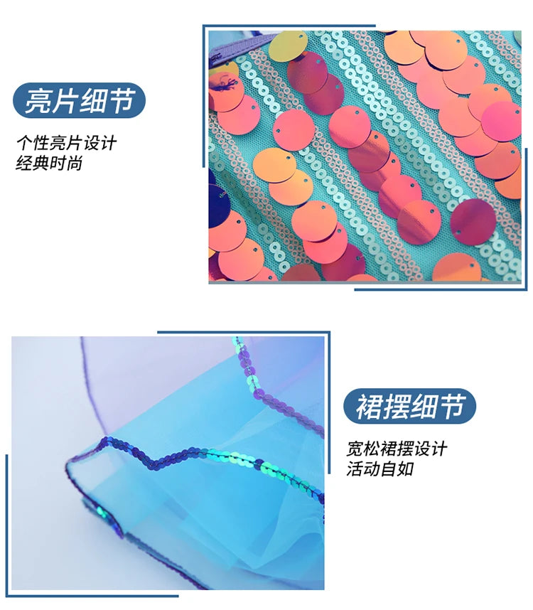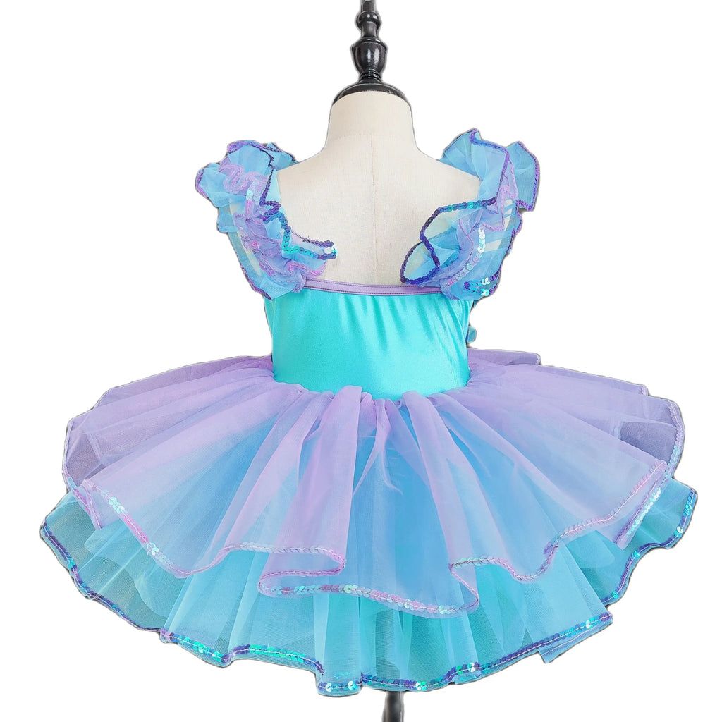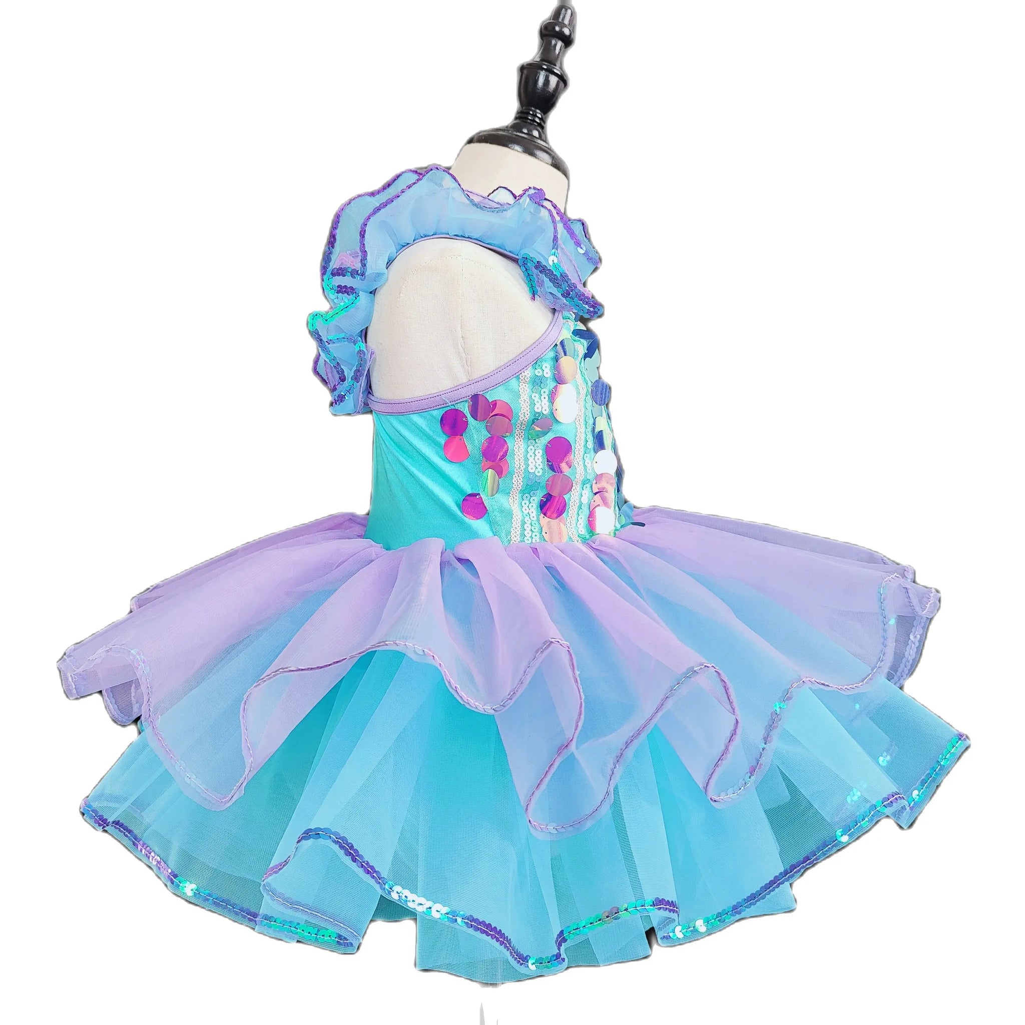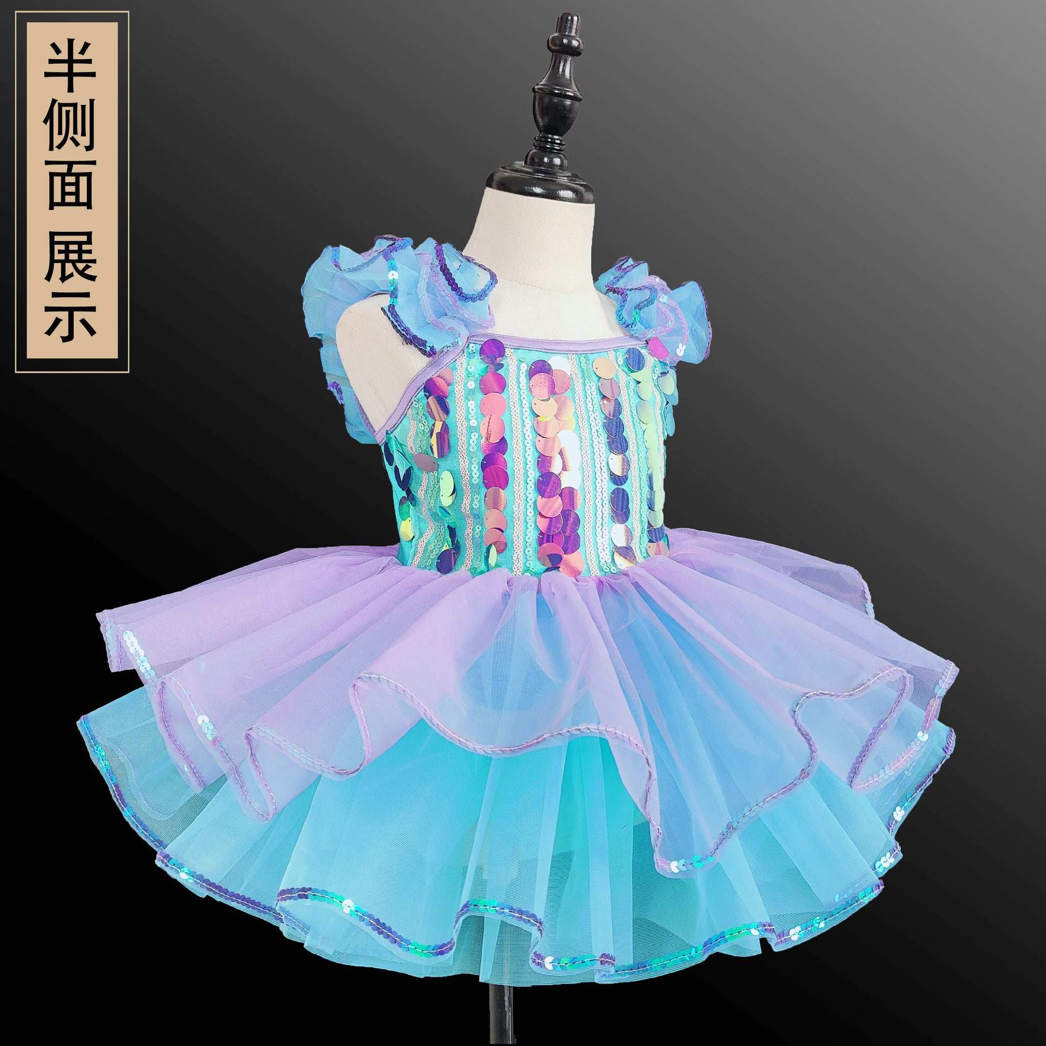 Blue Sequined Ballroom Dance Tutu Dress for Kids - Modern Jazz Party Wear