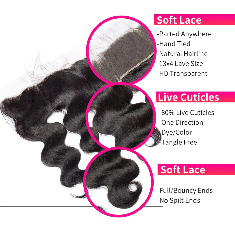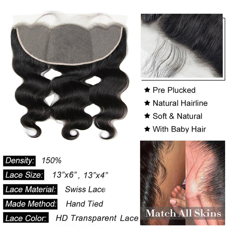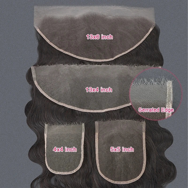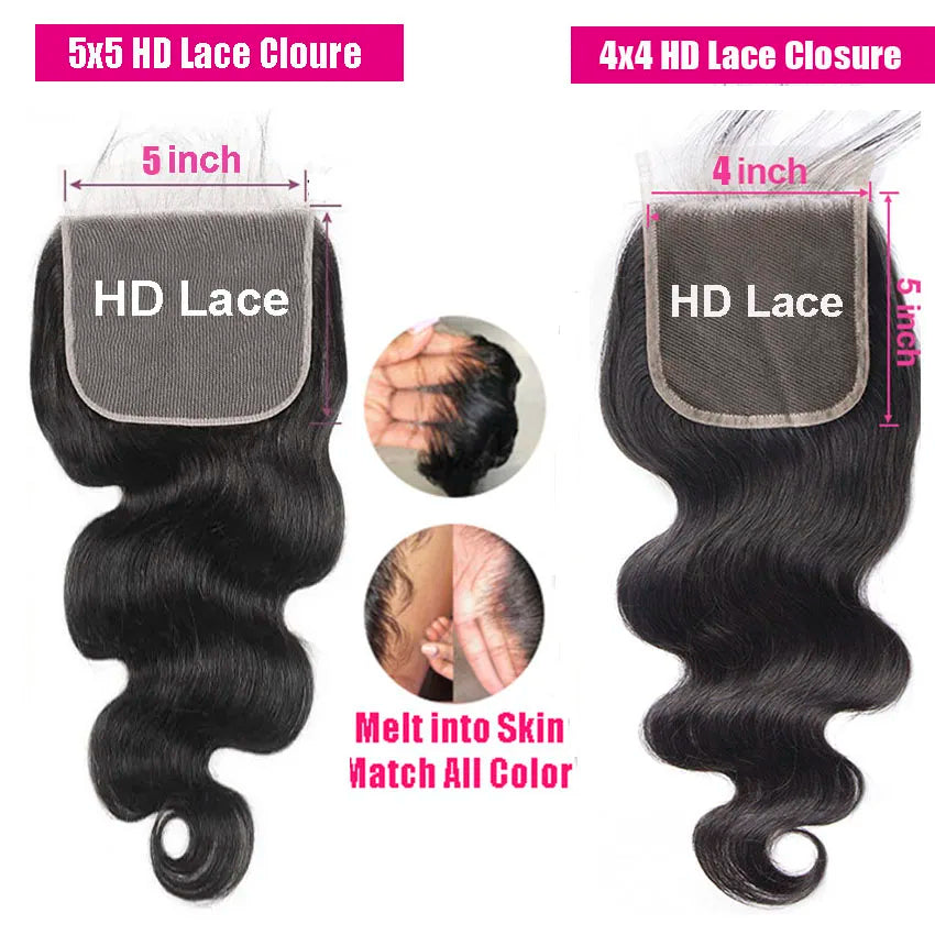 Body Wave Lace Closure & Frontal Human Hair, 4x4 5x5 6x6 & 13x4 13x6 HD Transparent, Pre-Plucked