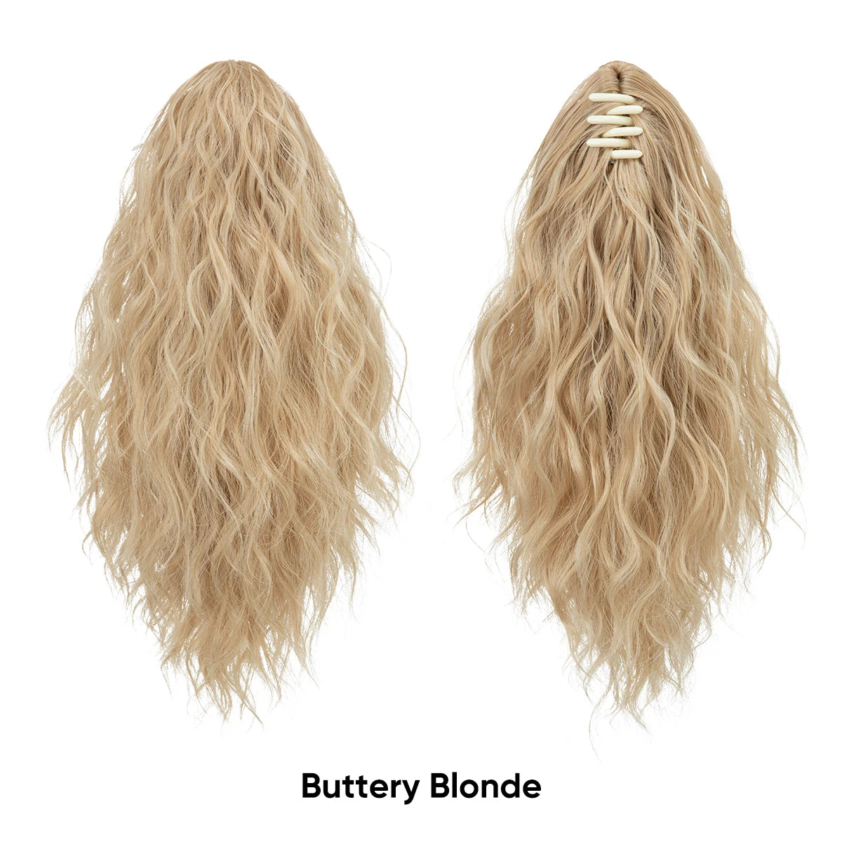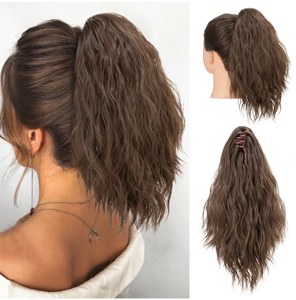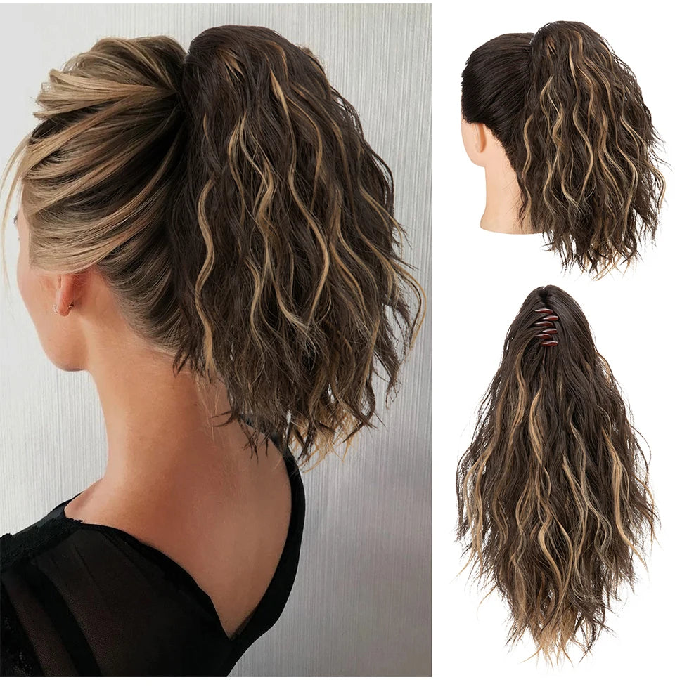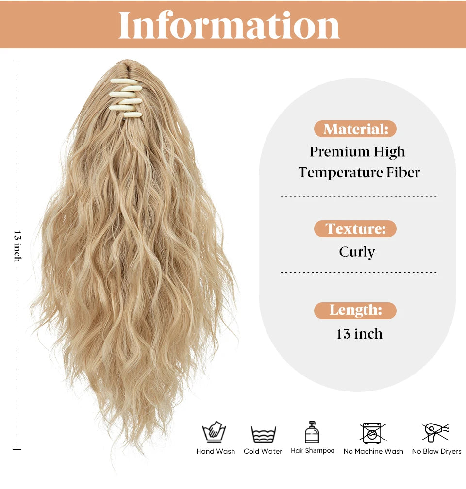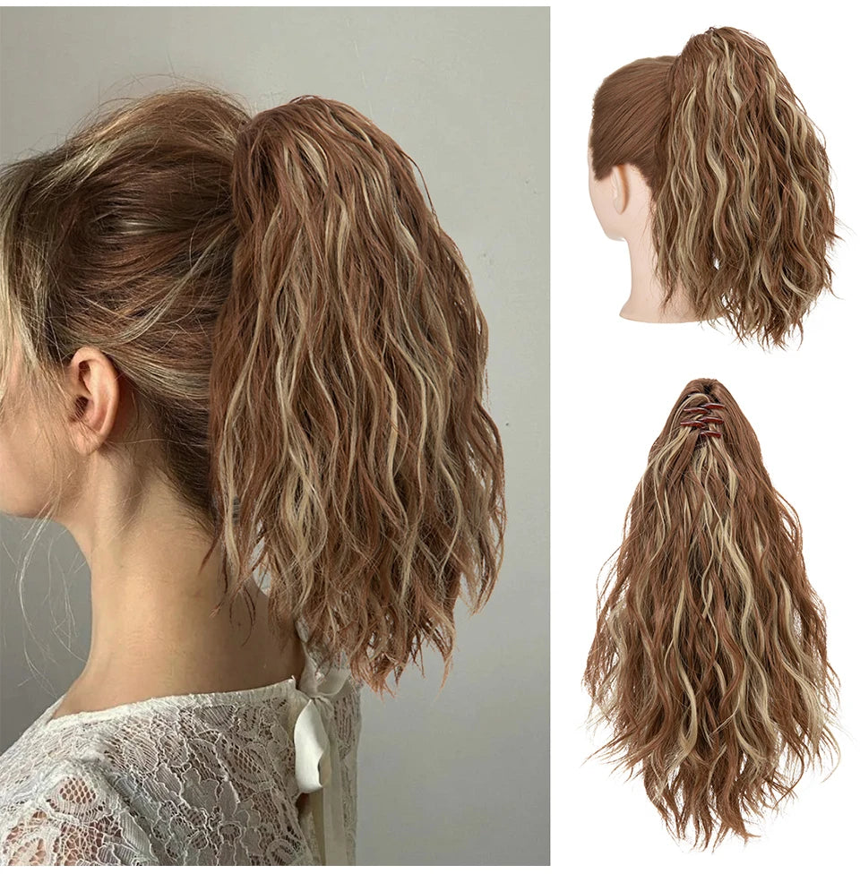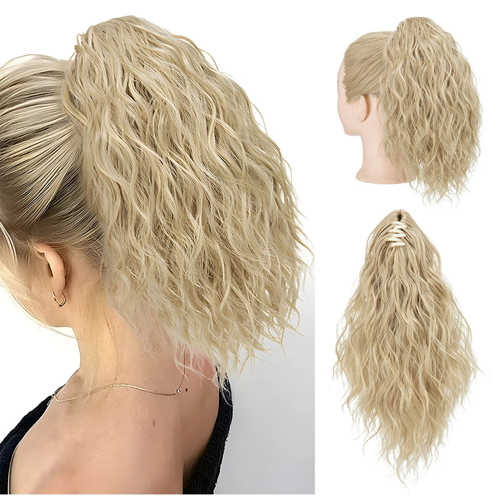 Blonde Curly Synthetic Claw Clip Ponytail Extension Fluffy Short Hairpiece for Daily Use