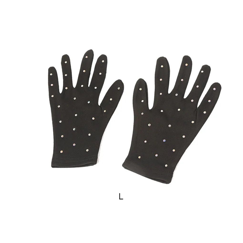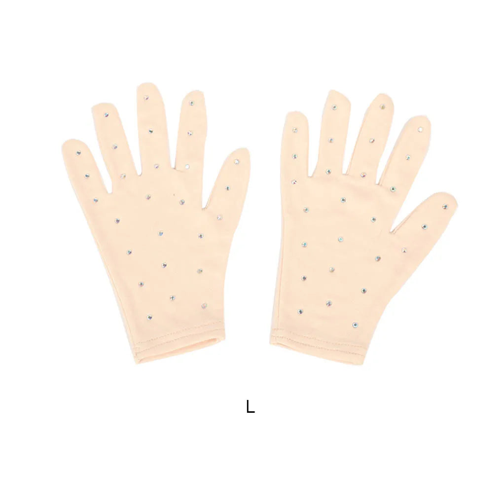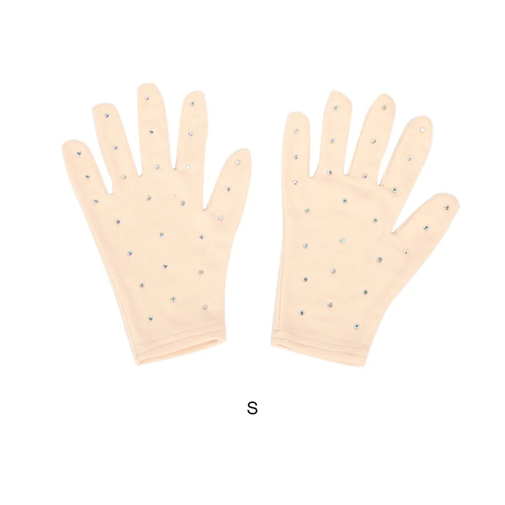 Elevate your style and performance with these fashionable unisex gloves, thoughtfully designed for ice figure skating enthusiasts. Crafted from breathable polyester with a touch of nylon, these gloves feature transparent rhinestones, adding a shiny and stylish flair to your attire. They ensure warmth and protection from the cold, making them perfect for both competitions and practice sessions.