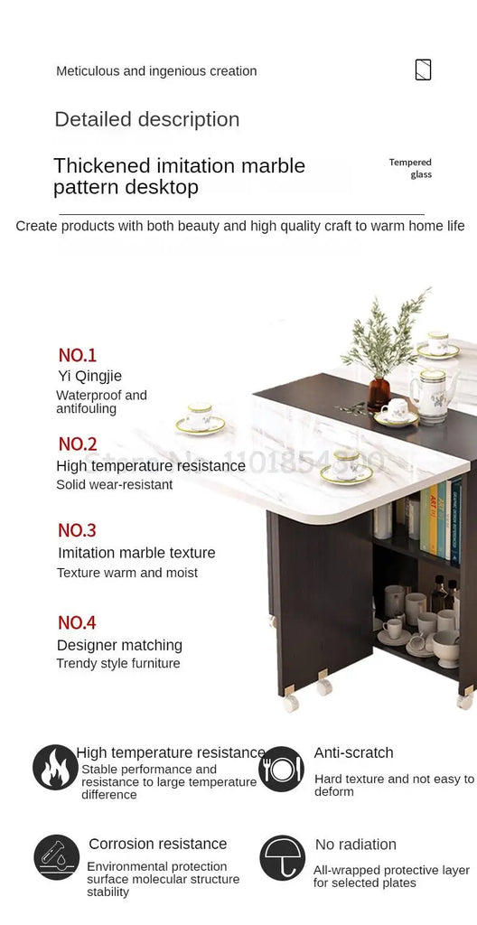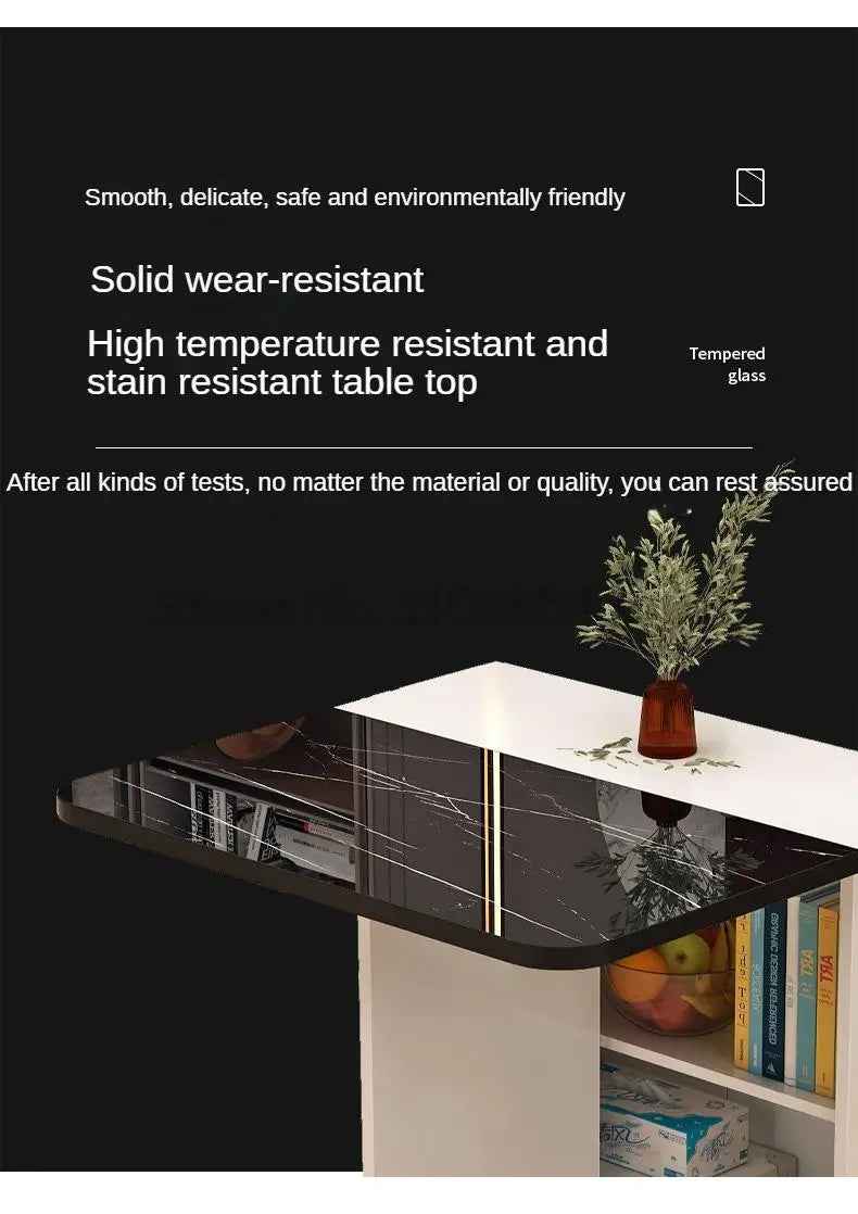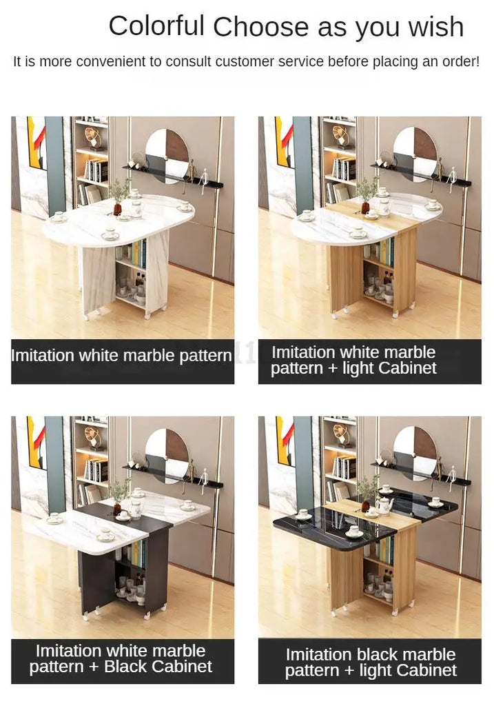Each table is thoughtfully designed to cater to varying tastes, with options ranging from imitation marble finishes to simple pure white designs. Customizable choices allow for personal tailoring to your space, ensuring a fit for any room layout. These tables are also transportable and come with rollers for added convenience.