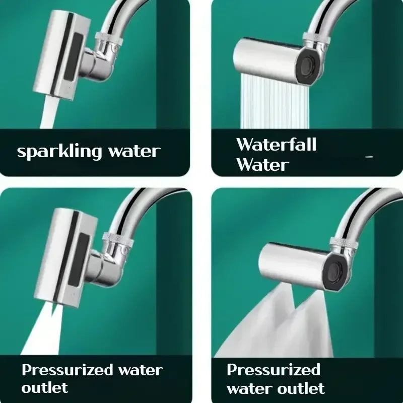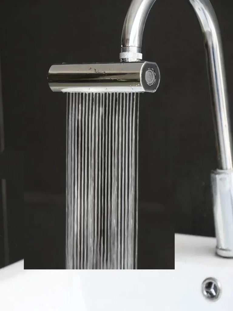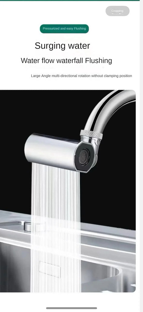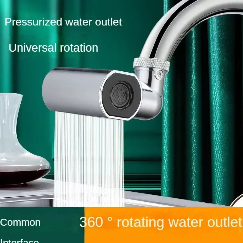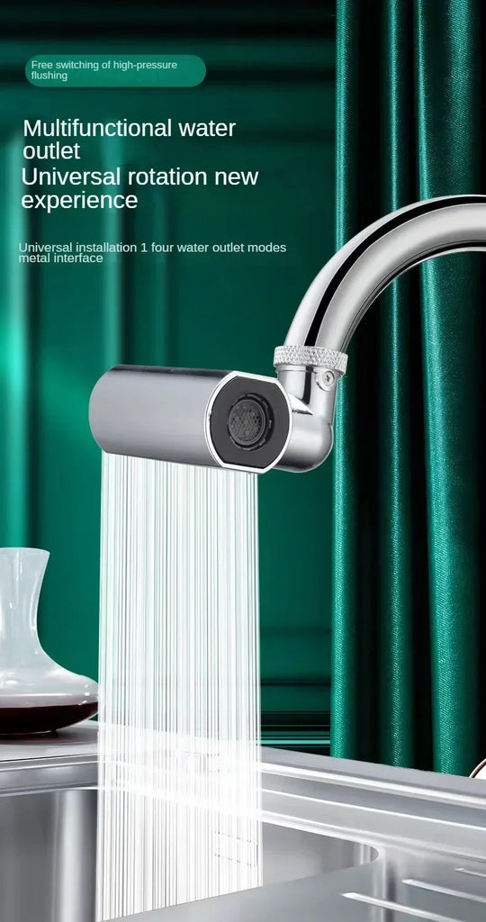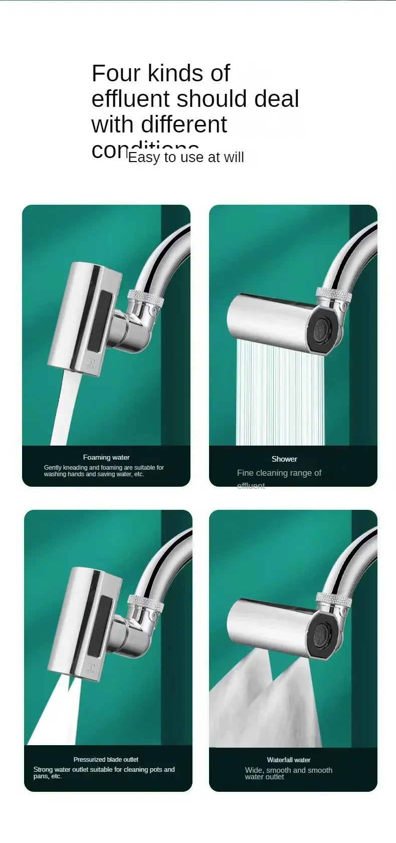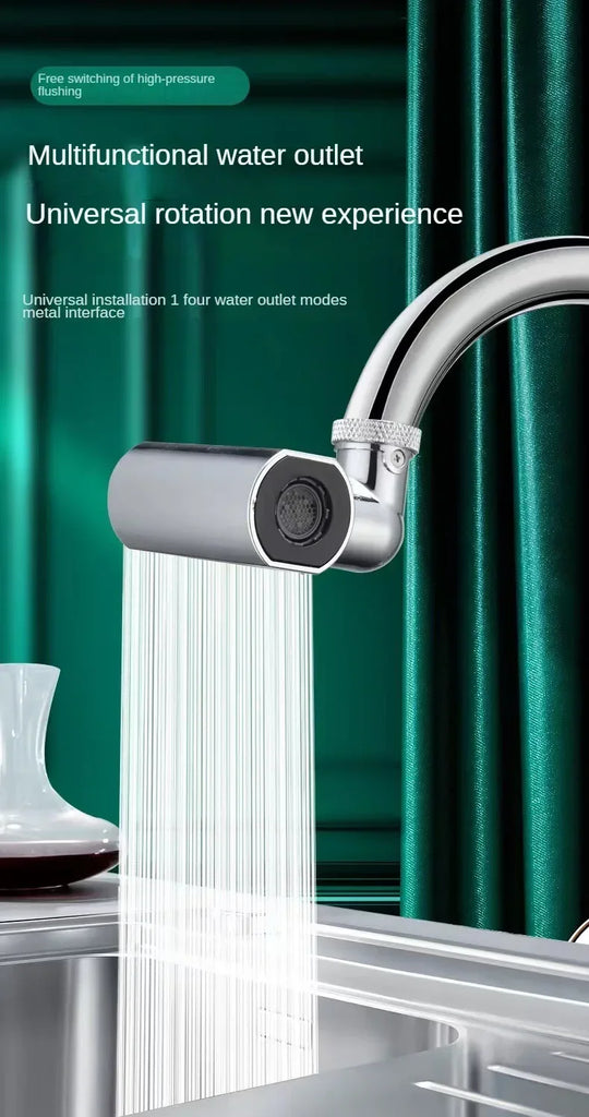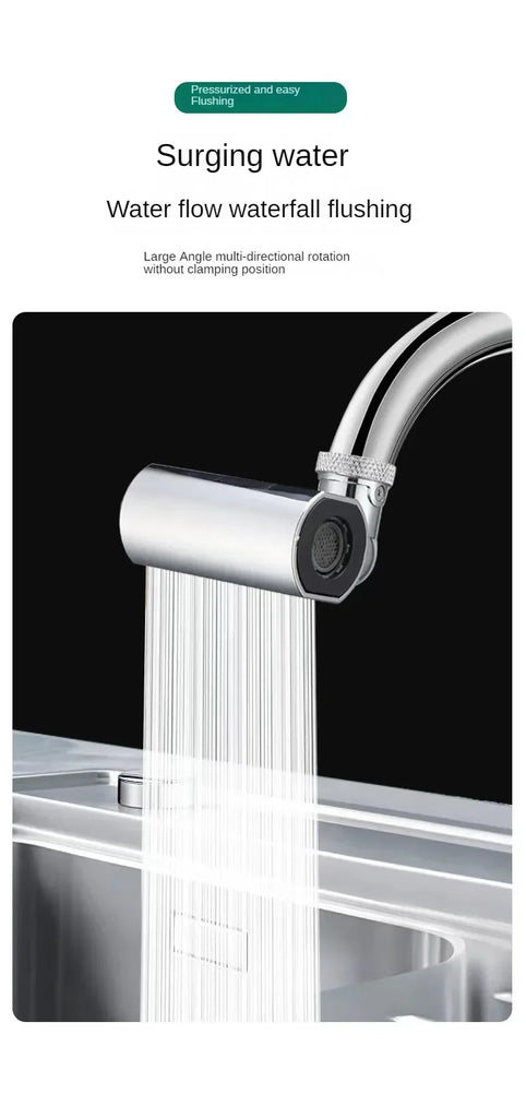 Compact Rotating Kitchen Faucet Aerator with Four-Speed Spray for Veggie Washing and Dish Cleaning