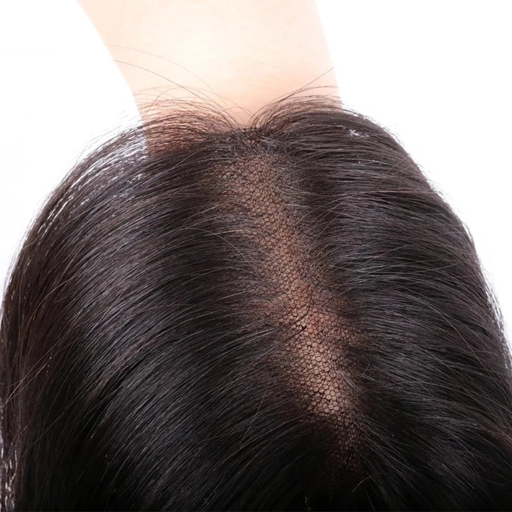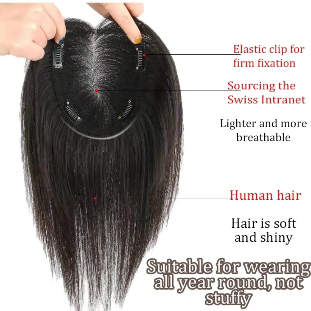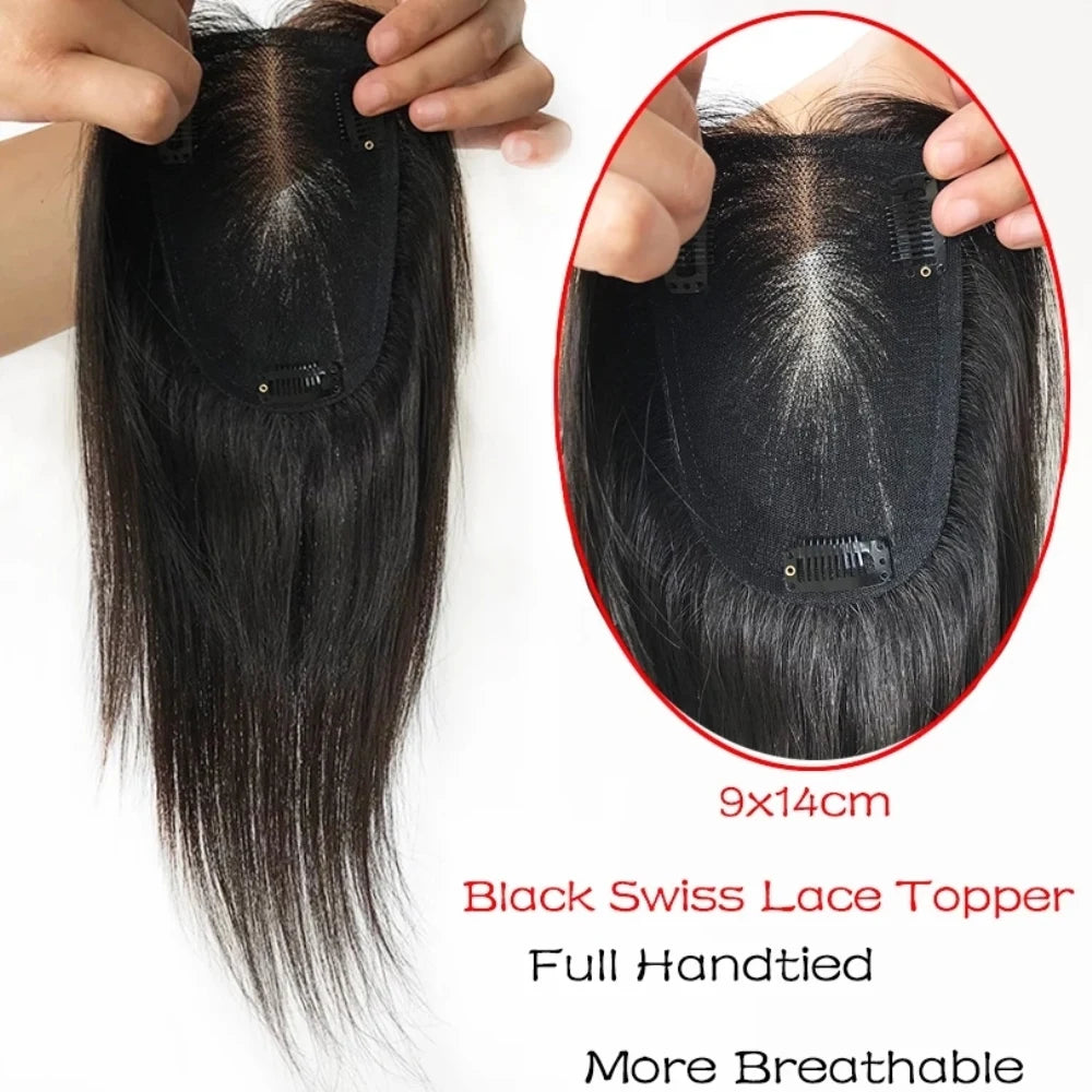 Breathable Black Lace Remy Human Hair Topper with Clips - Soft Swiss Base Women’s Hairpiece/Toupee