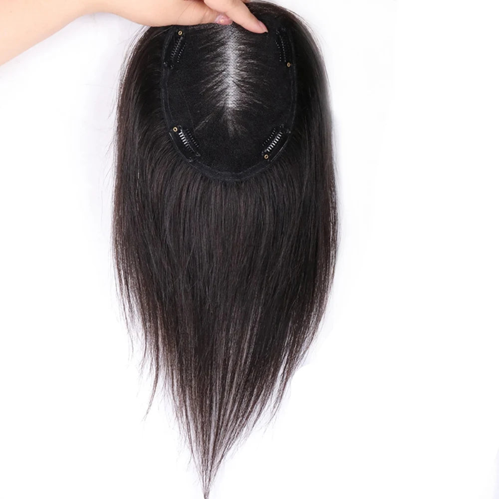 Crafted from 8A 100% Remy Malaysian human hair, its silky smooth texture ensures a high-quality, natural look. With customizable options for color, length, style, and base size, you're sure to find the perfect fit for your needs. Choose from hair lengths of 10 inches, 12 inches, or 14 inches. Plus, our topper comes equipped with four easy-to-use clip-ins for hassle-free attachment.