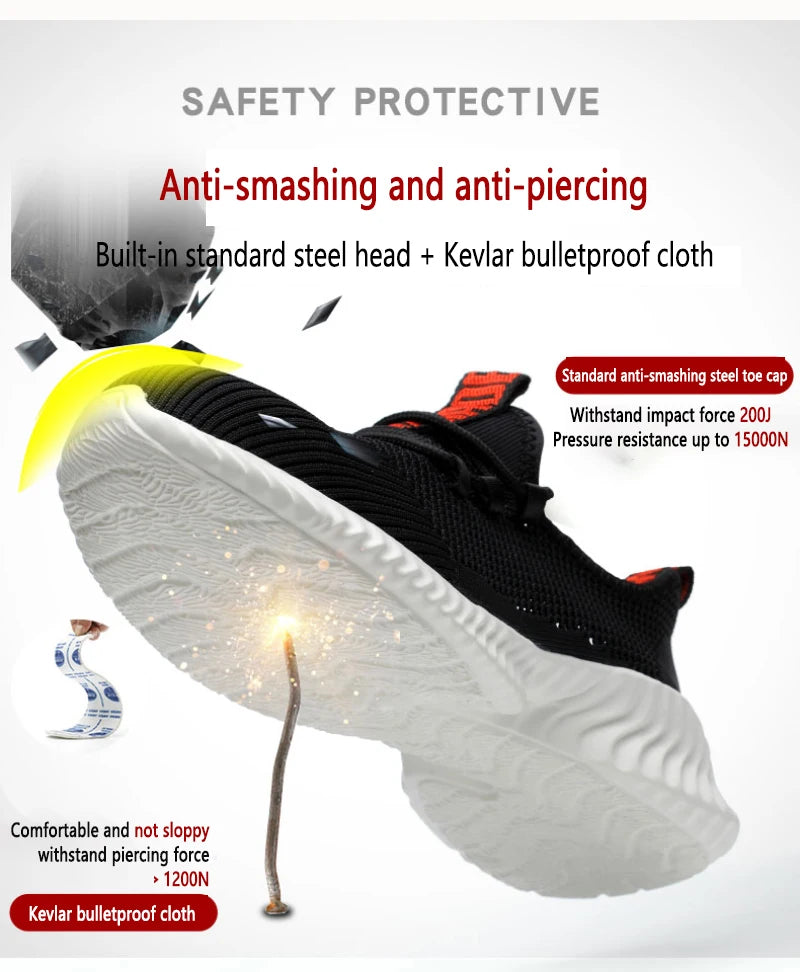 Breathable Lightweight Iron Toe Safety Work Shoes, Anti-Slip & Anti-Stab Protection for Summer