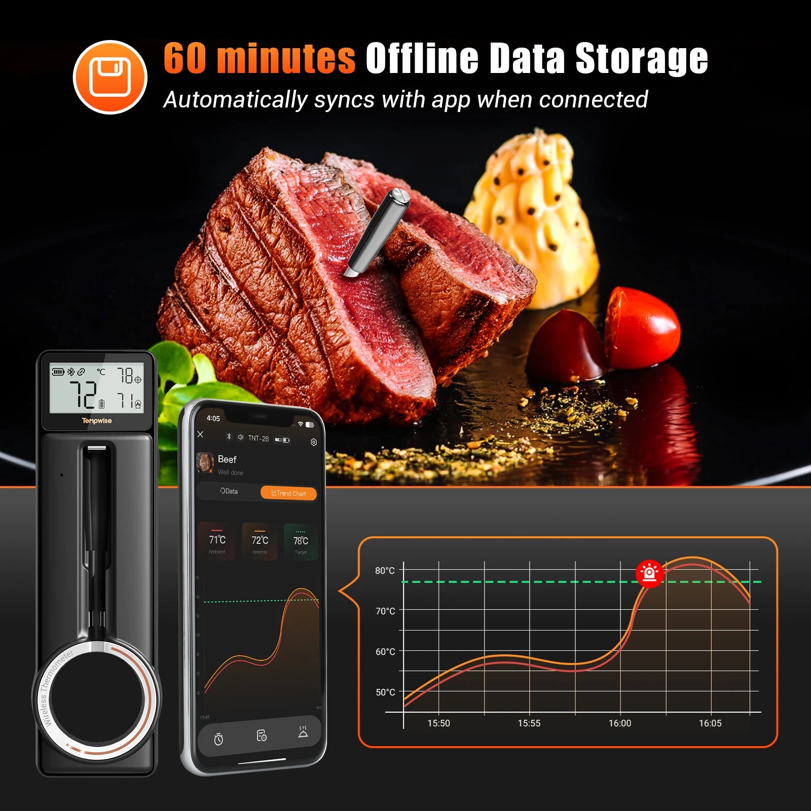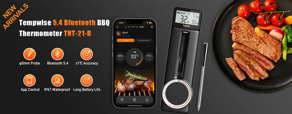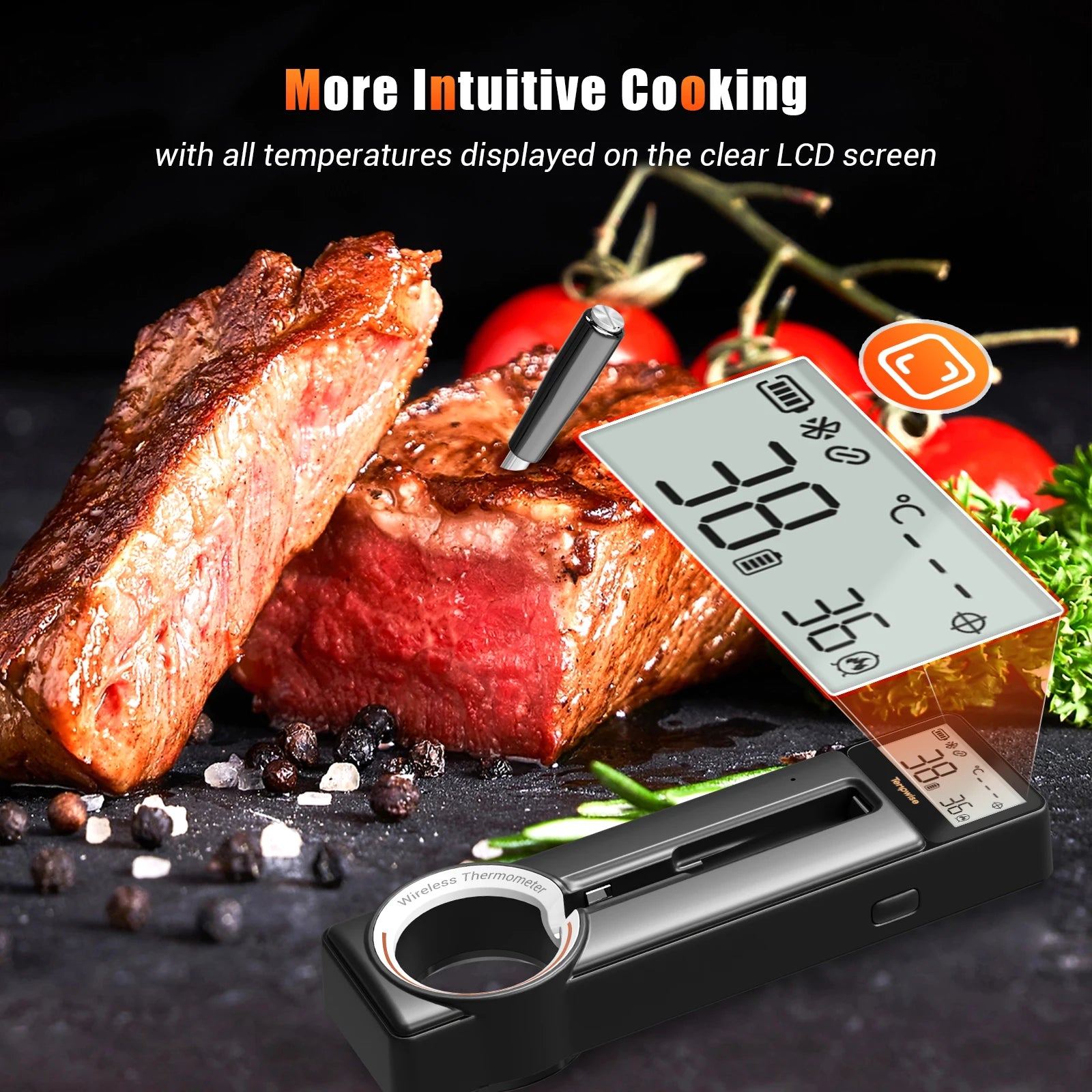 Bluetooth 5.4 Meat Thermometer for BBQ and Cooking, Ultra Thin 5mm Fast Response Probe, Indoor/Outdoor Use