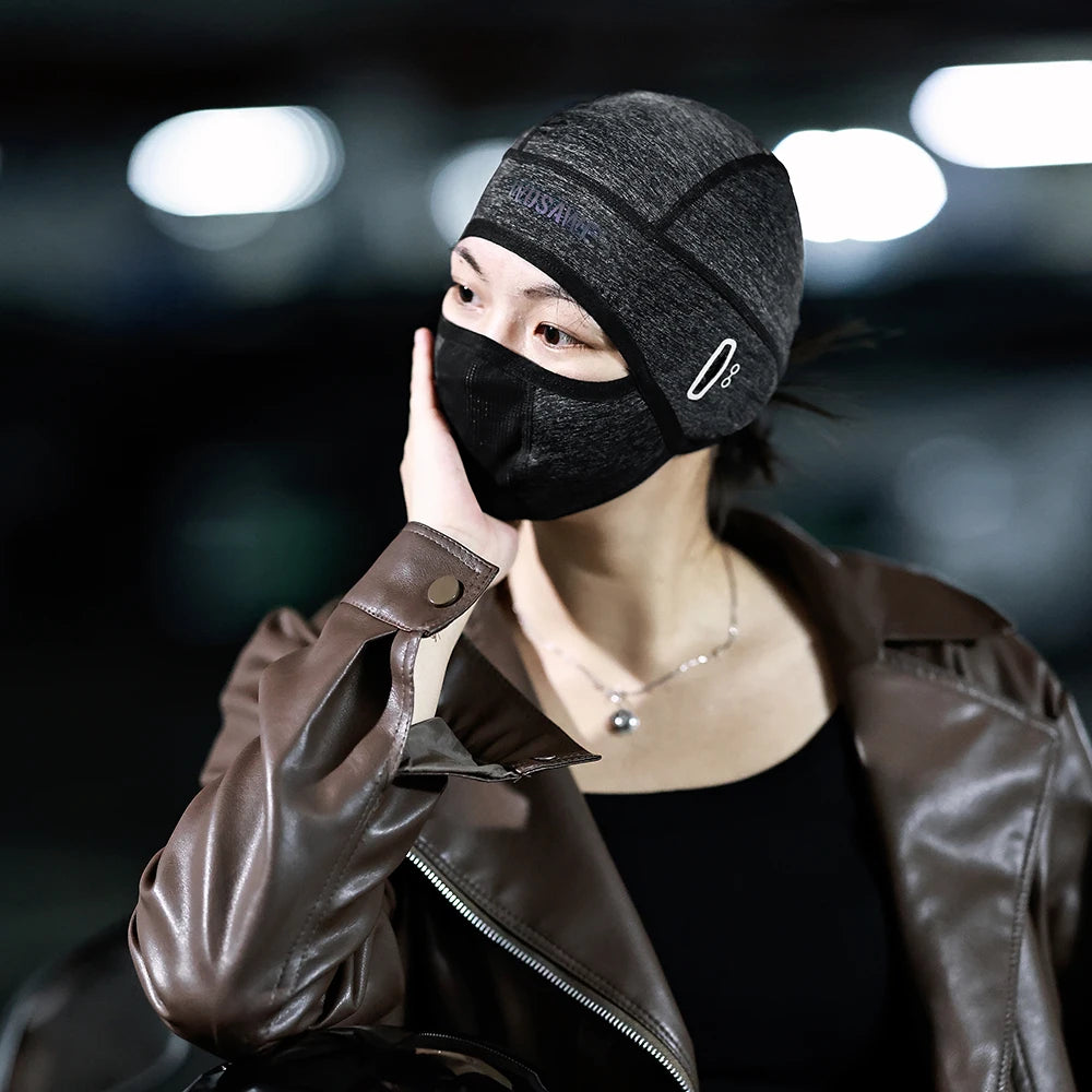 The cap's innovative breathable hollow mesh design around the nose and mouth ensures you stay cool during intense activities. It features convenient glasses holes and reflective strips on both sides, allowing easy eyewear storage and enhancing visibility in low-light conditions. The front boasts an iridescent reflective logo, adding style and safety.