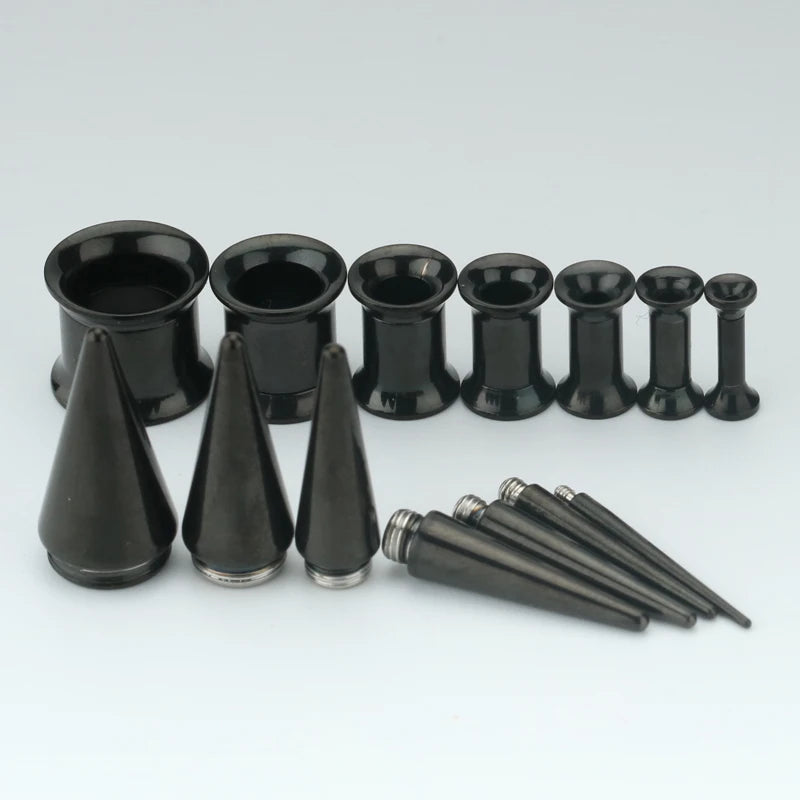 Enhance your style with this elegant ear stretcher kit designed for those who appreciate quality body jewelry. Crafted from premium surgical stainless steel, this classic water drop-shaped plug and tunnel jewelry promises durability and style. Available in a wide range of sizes from 2mm to 20mm, it offers the perfect fit for any preference. The sleek black finish adds a sophisticated touch to your look, making it a must-have addition to your collection.