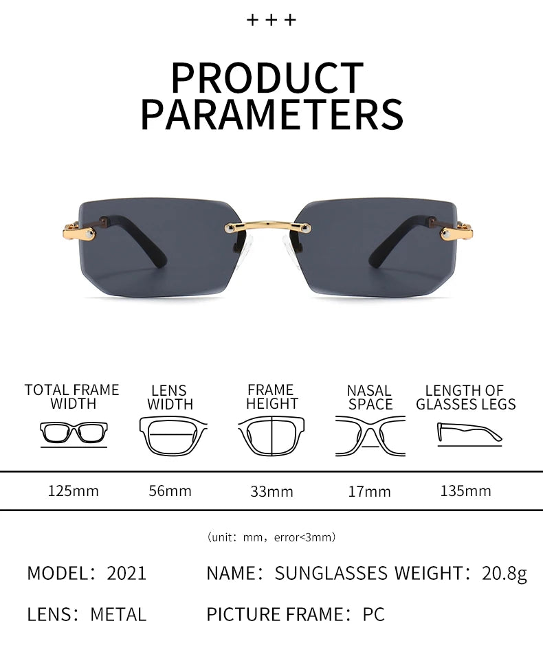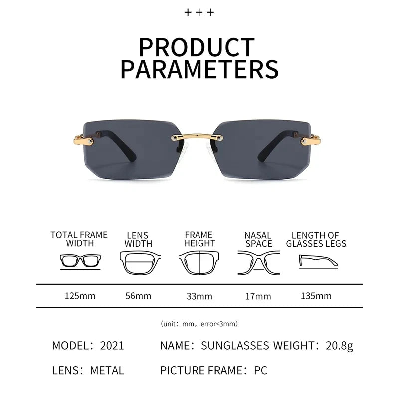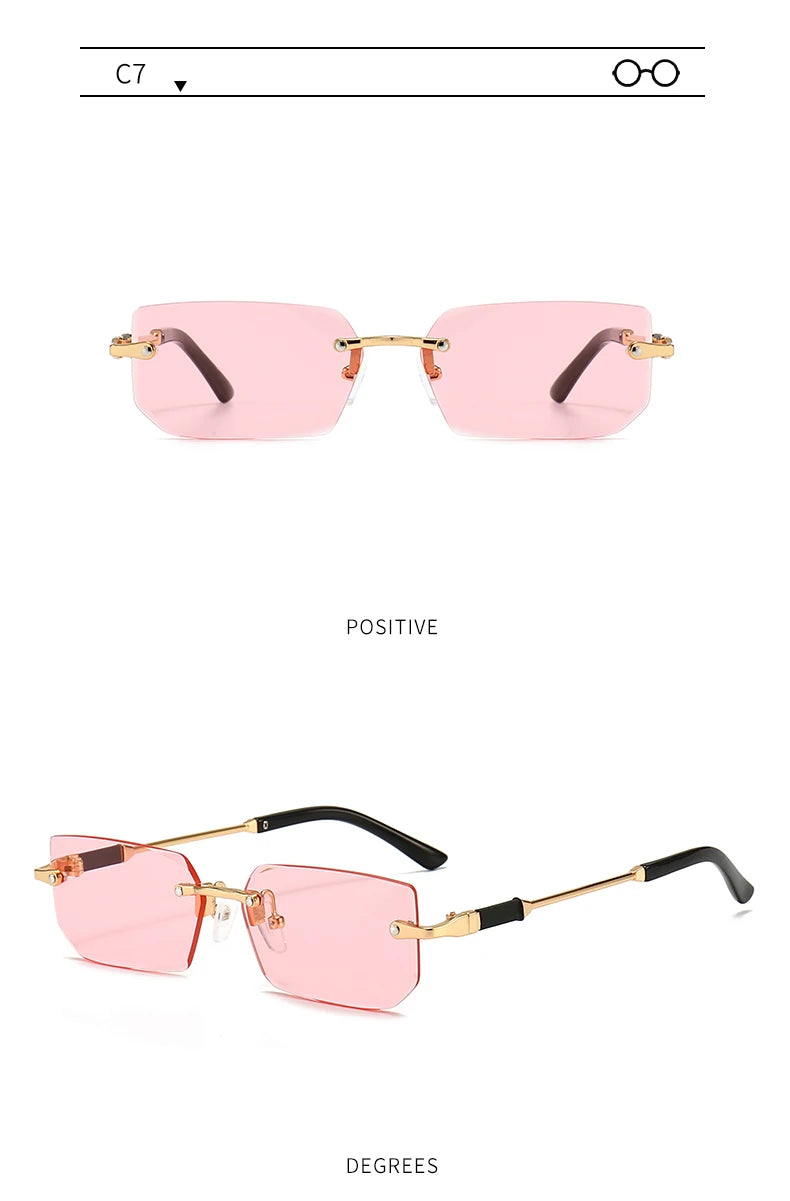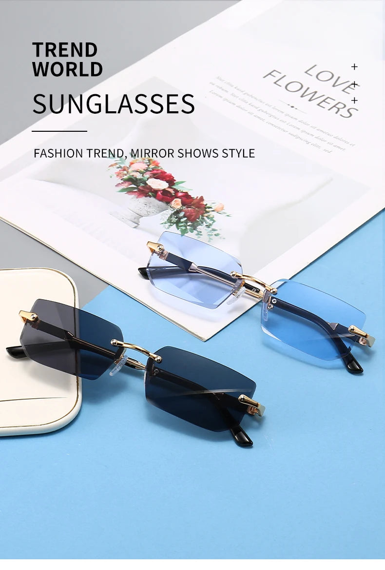 Elevate your style with these chic sunglasses, designed for modern women who appreciate a blend of fashion and function. The small rectangular frame features a rimless design, offering a classic yet contemporary look that's perfect for various occasions. Made from durable alloy with polycarbonate lenses, these sunglasses ensure both comfort and longevity. The gradient lenses not only enhance your vision but add a touch of elegance to your ensemble. Choose from 11 stylish colors to match any outfit effortlessly.