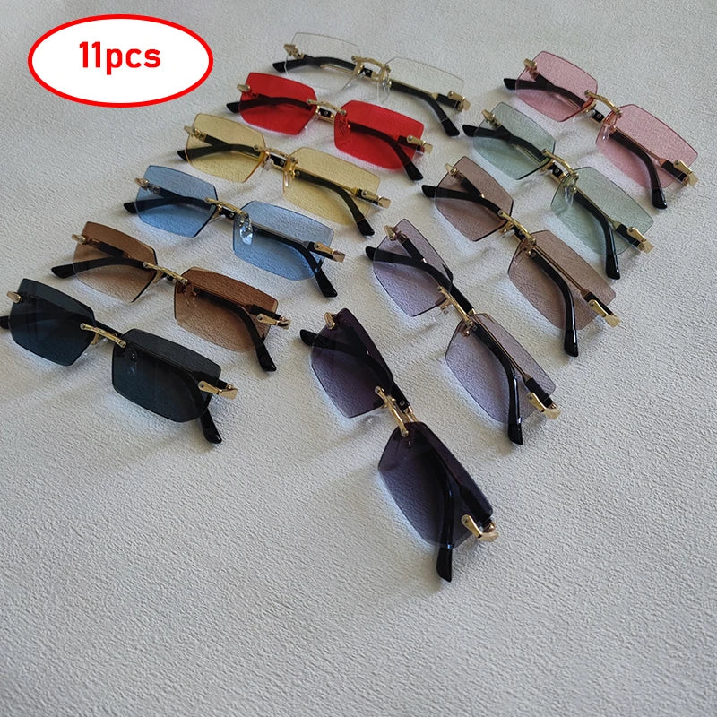 11 Pairs Women's Trendy Rimless Rectangle Sunglasses Small Frame Square Shades for Summer Outdoors
