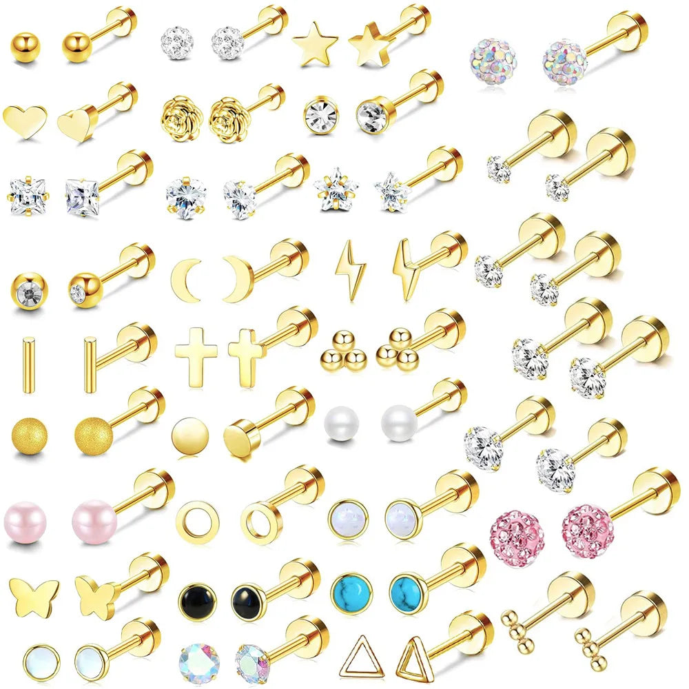 Gold Flower Cross Stud Earrings Set for Women - Stainless Steel Mini Pearl Cartilage Tragus Piercing Jewelry (2pcs)
