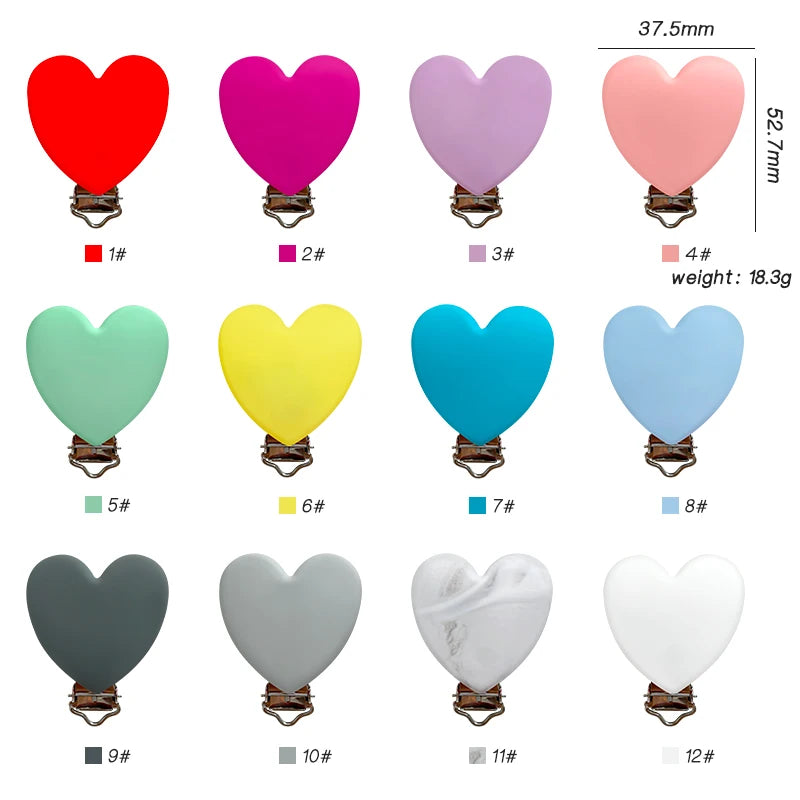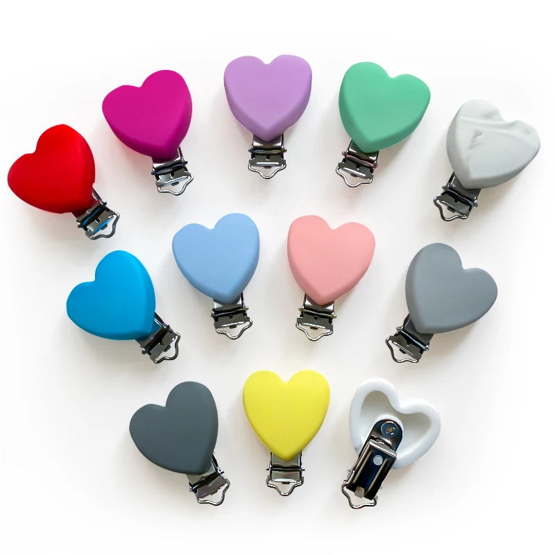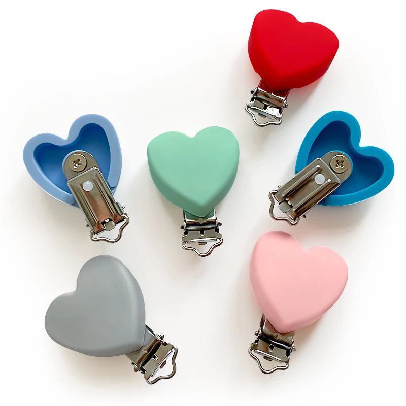 Heart-Shaped Silicone Pacifier Clips, 3-Pack BPA-Free Soother & Teether Holders