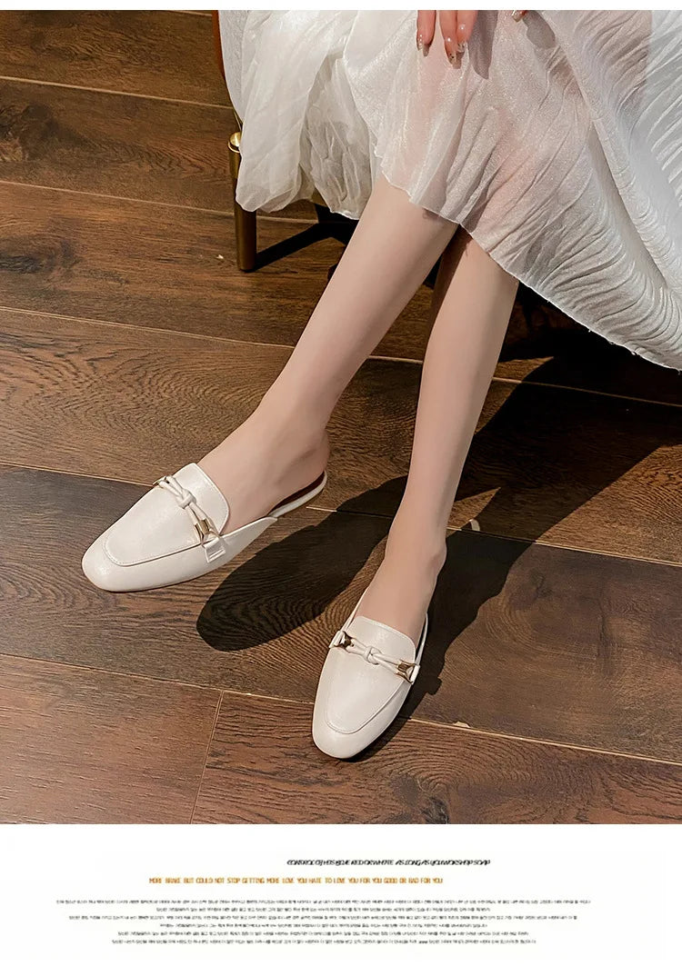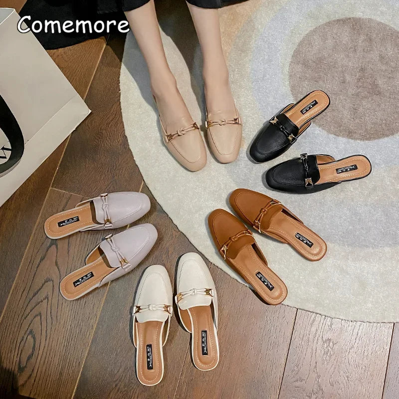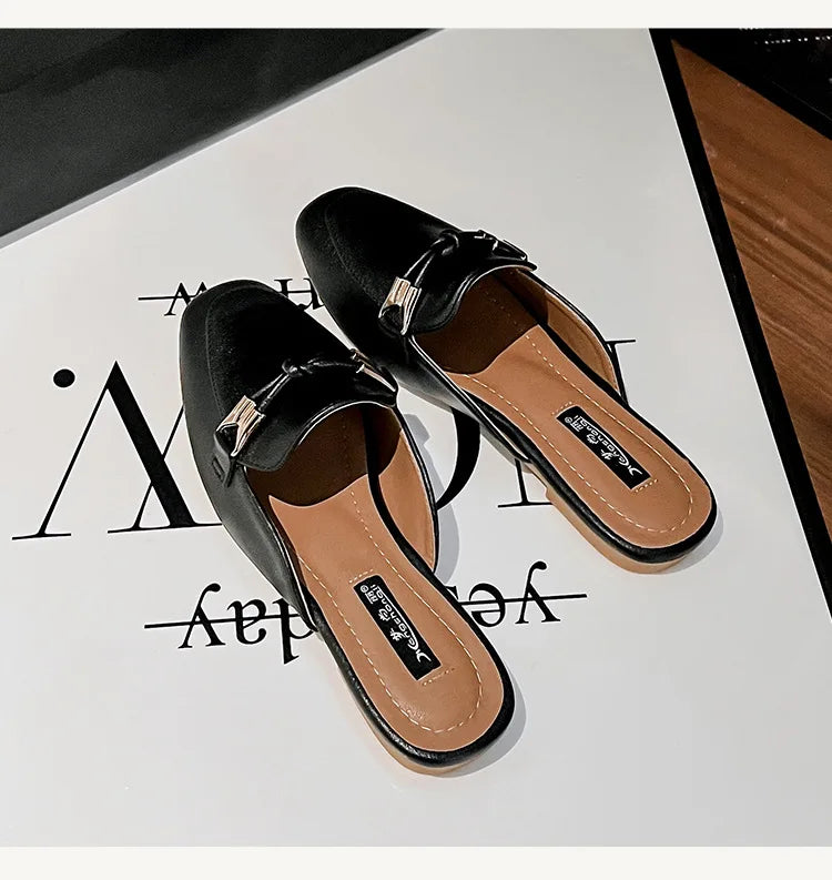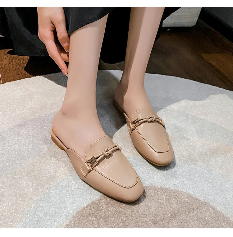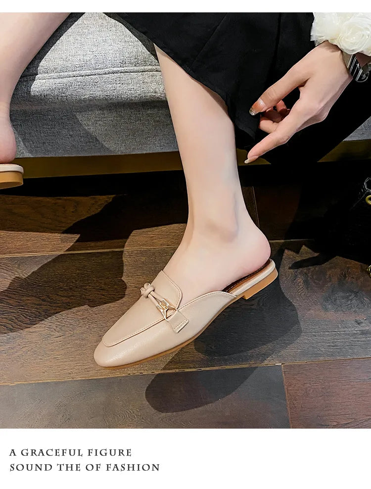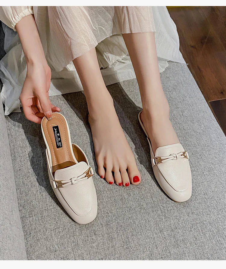 Step into style and comfort with these chic women's mules, perfect for outdoor occasions. Designed with meticulous attention to detail, these mules feature a trendy Korean style adorned with elegant metal decorations. The low square heel (1cm-3cm) offers just the right amount of lift for all-day wearability.