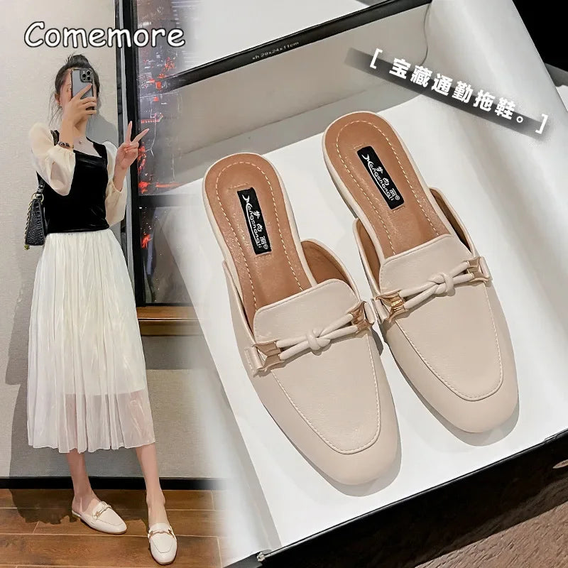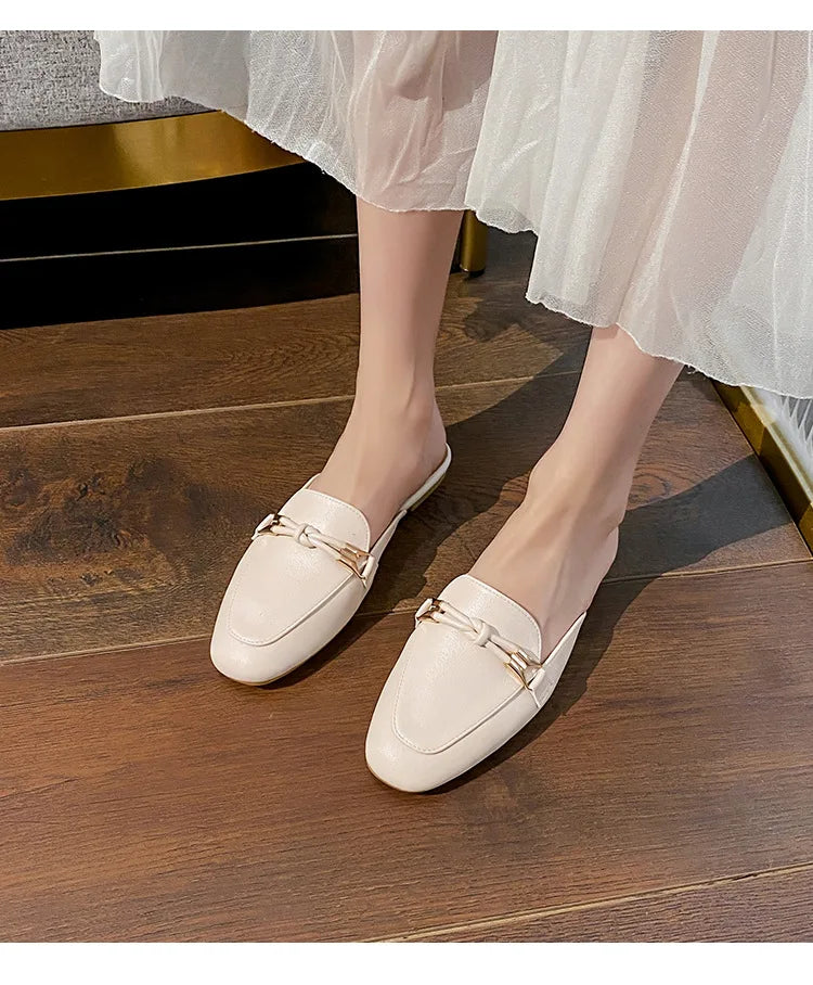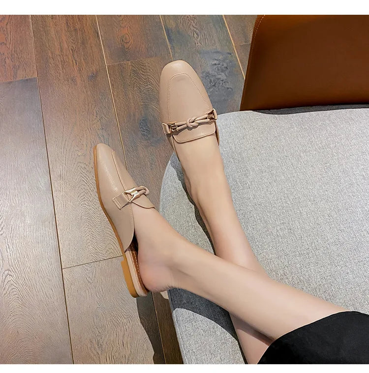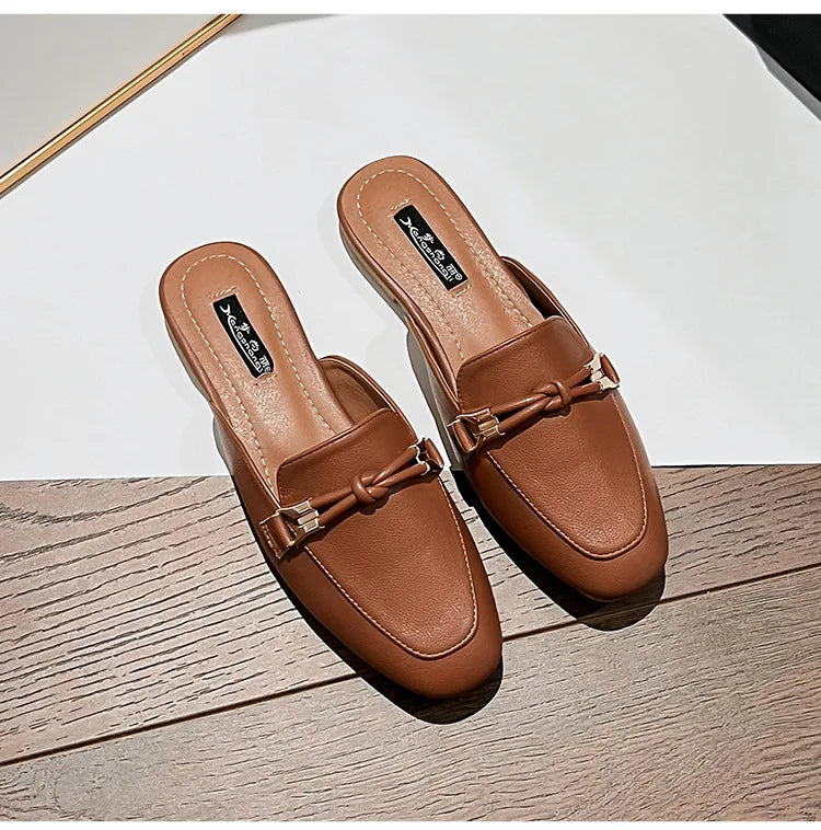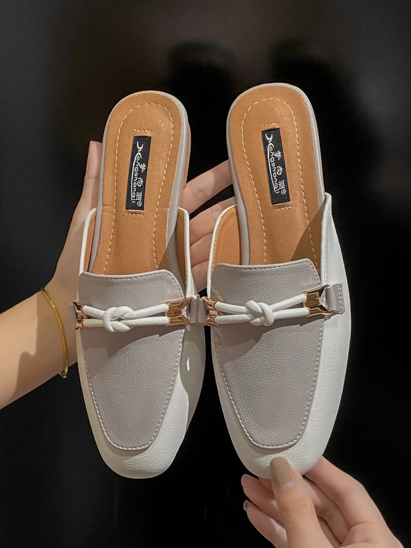Step into style and comfort with these chic women's mules, perfect for outdoor occasions. Designed with meticulous attention to detail, these mules feature a trendy Korean style adorned with elegant metal decorations. The low square heel (1cm-3cm) offers just the right amount of lift for all-day wearability.