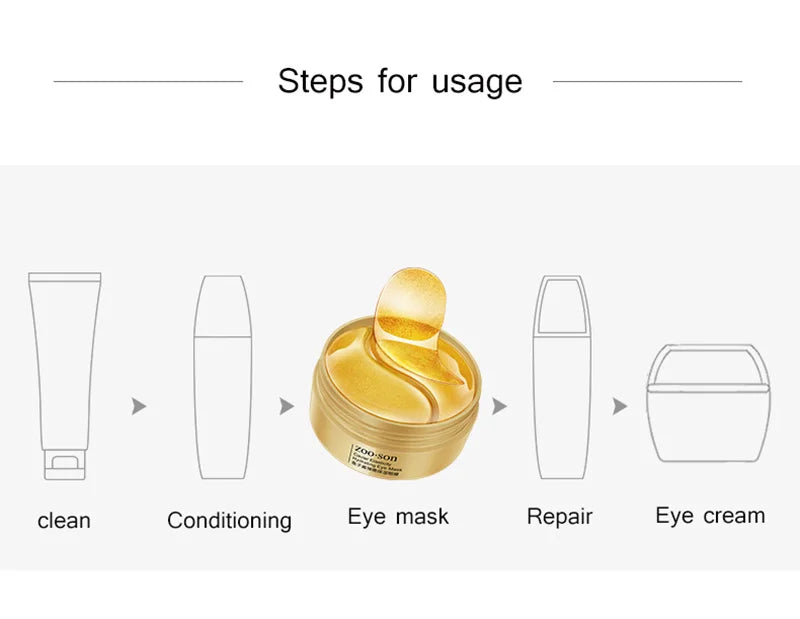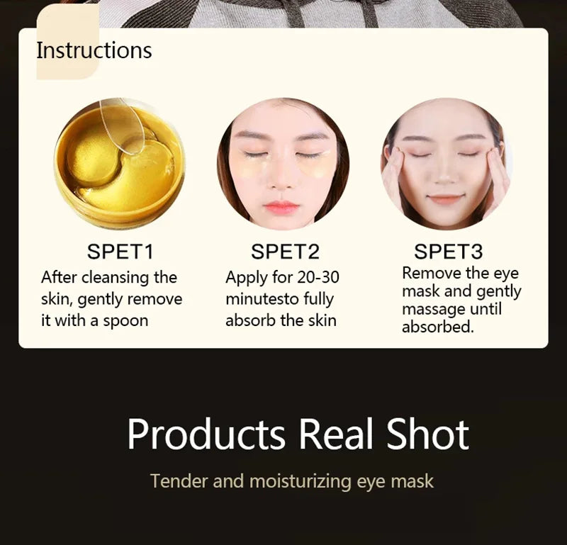 Gold Eye Masks for Dark Circles, Puffiness, Anti-Aging, Hydrating Gel Patches