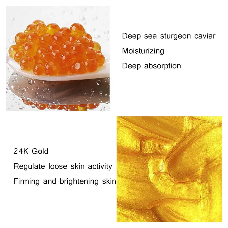 Transform your skincare routine with this luxurious Eye Treatment and Mask, designed to rejuvenate and refresh the delicate eye area. This cutting-edge formula effectively tackles puffiness, reduces dark circles, and minimizes signs of aging, promoting a youthful and radiant appearance. Infused with powerful ingredients like Glycerin, Hydrolyzed Collagen, Hyaluronic Acid, 24K Gold Powder, and Deep Sea Caviar, these eye patches deliver intense hydration and outstanding anti-aging benefits. Lightweight and fragrance-free, it's ideal for daily use, ensuring visible improvements with each application. Enjoy revitalized eyes daily with 30 treatments and a total of 60 patches.