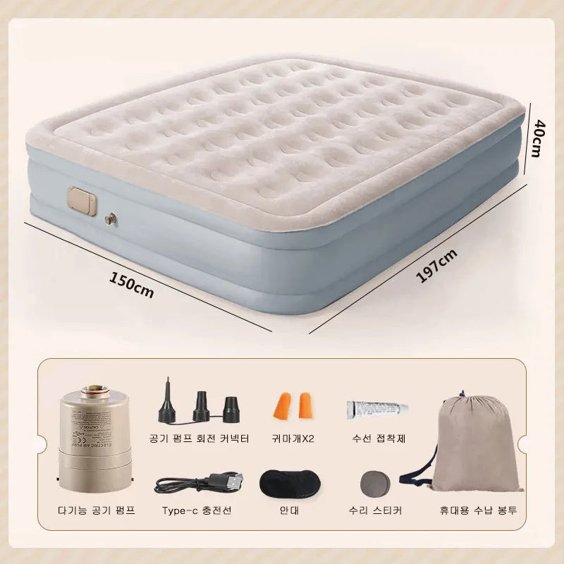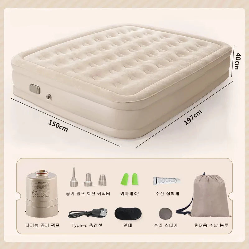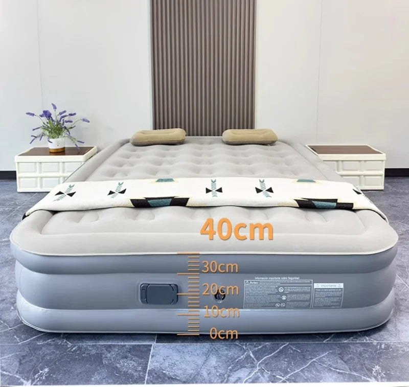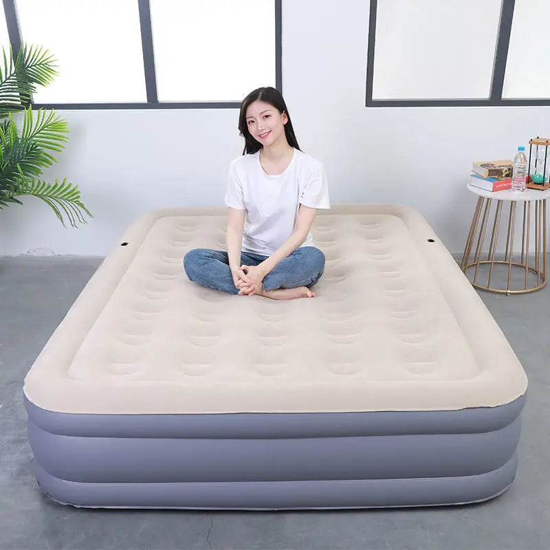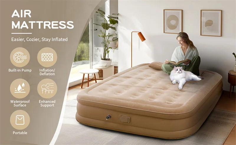 Double Height Inflatable Air Mattress with Built-in Pump - Durable PVC Sleeping and Glamping Mat