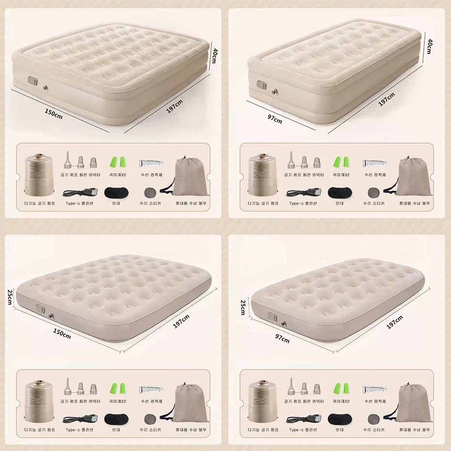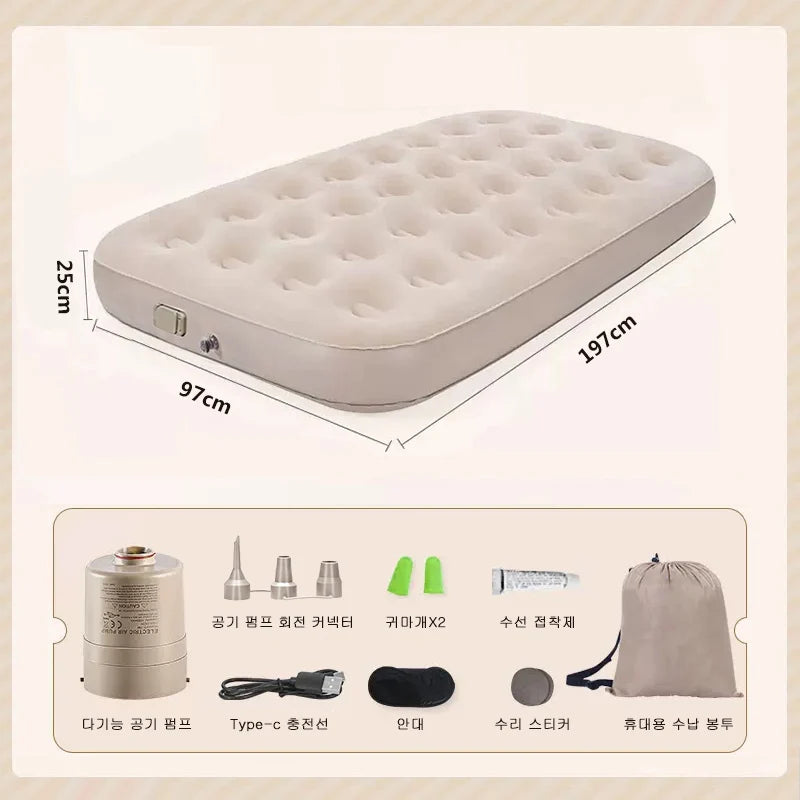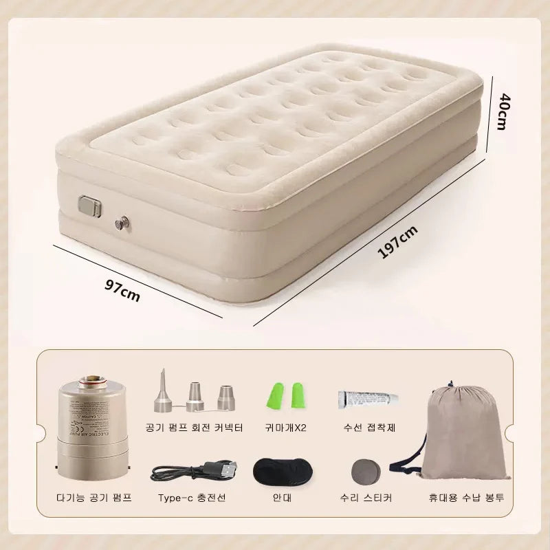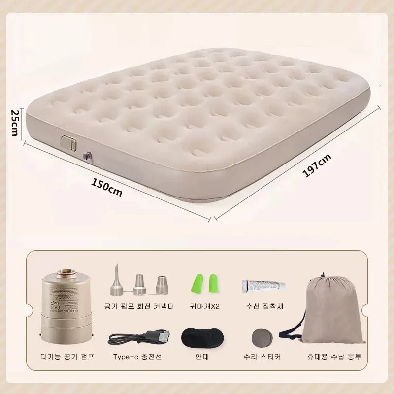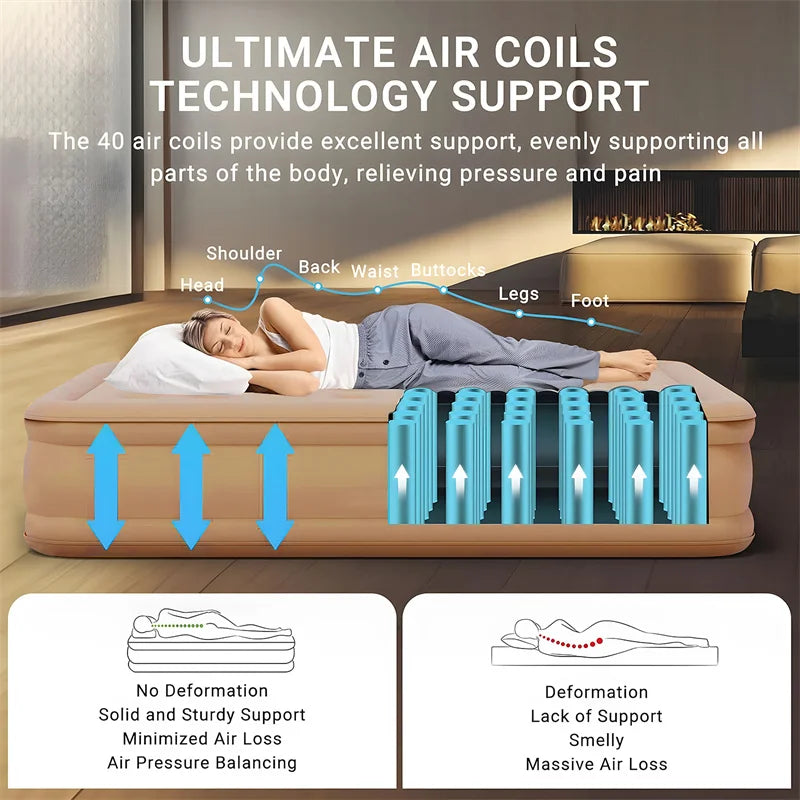 Double Height Inflatable Air Mattress with Built-in Pump - Durable PVC Sleeping and Glamping Mat