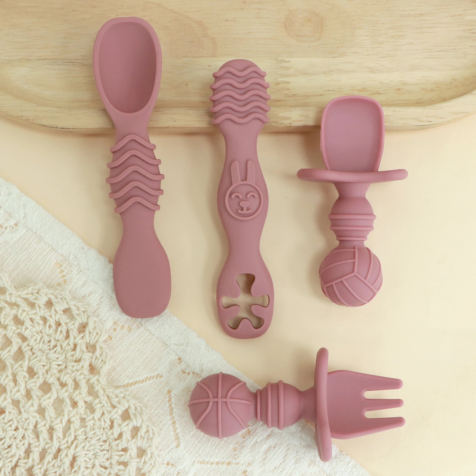 4-Pack Silicone Toddler Feeding Spoons - Baby & Toddler Cutlery Set, Ideal for Noodles & More, Perfect Gift for Christmas