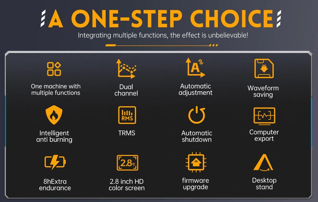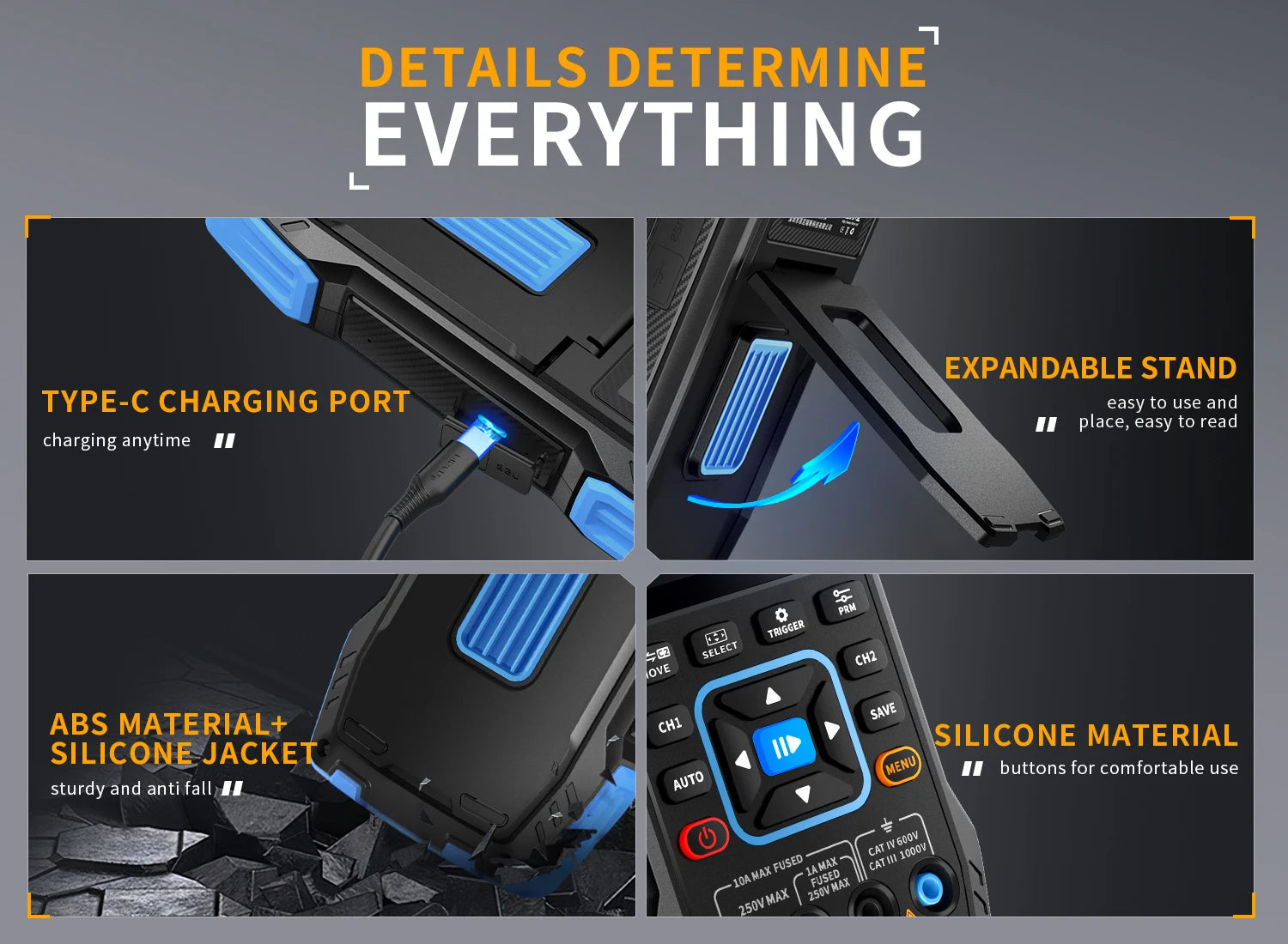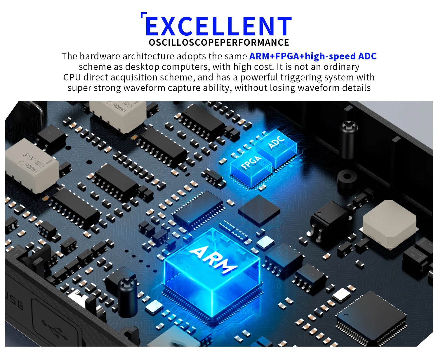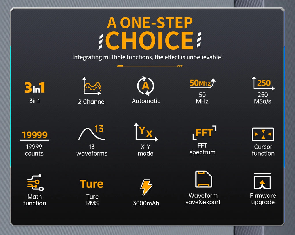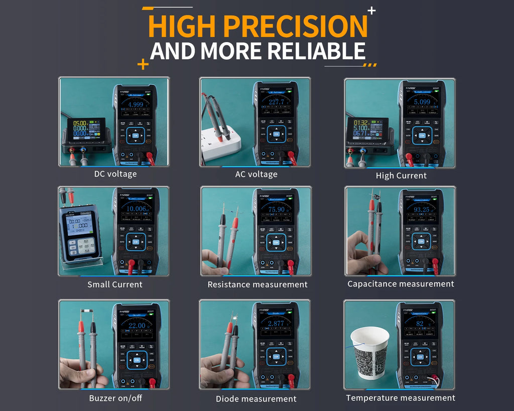 - Oscilloscope: Upgraded to 250MS/s sampling rate, 50MHz bandwidth, independent dual-channel, with advanced math functions and FFT.