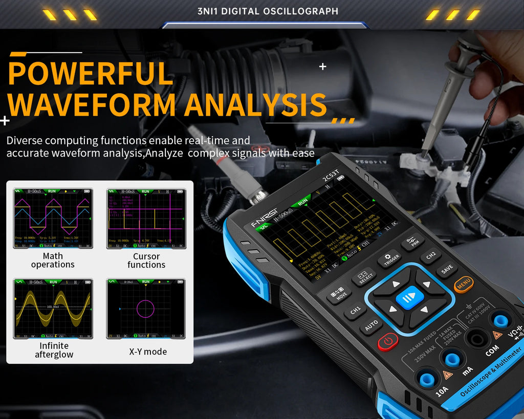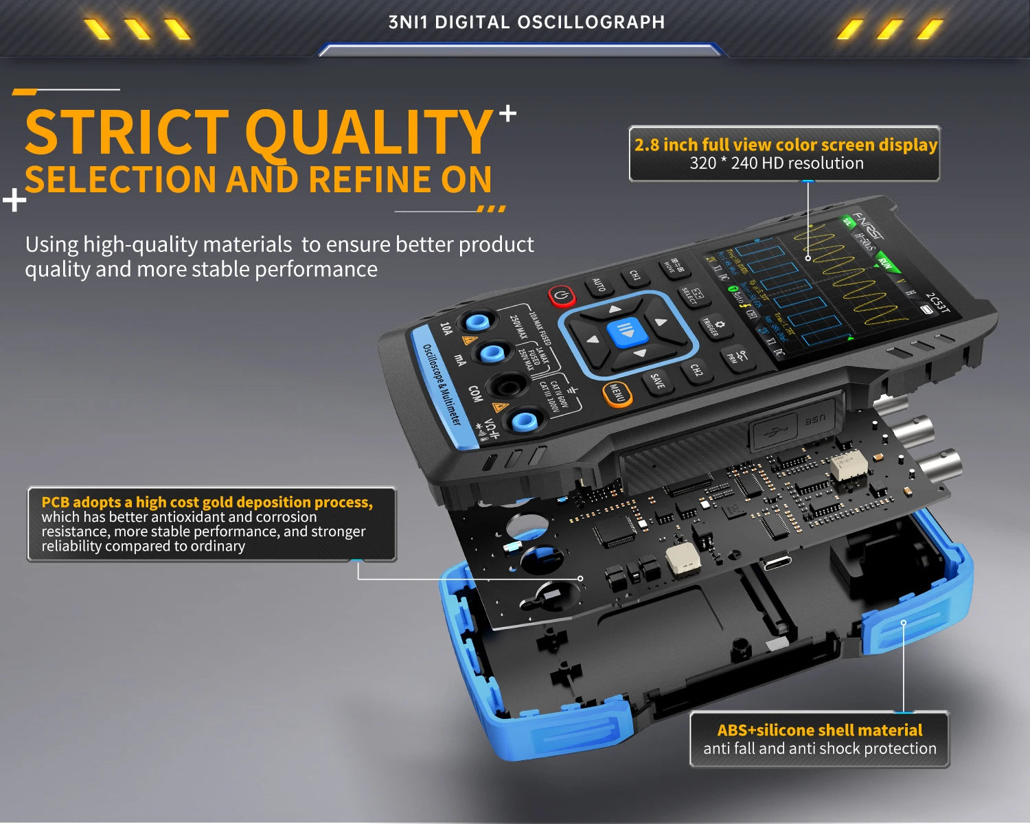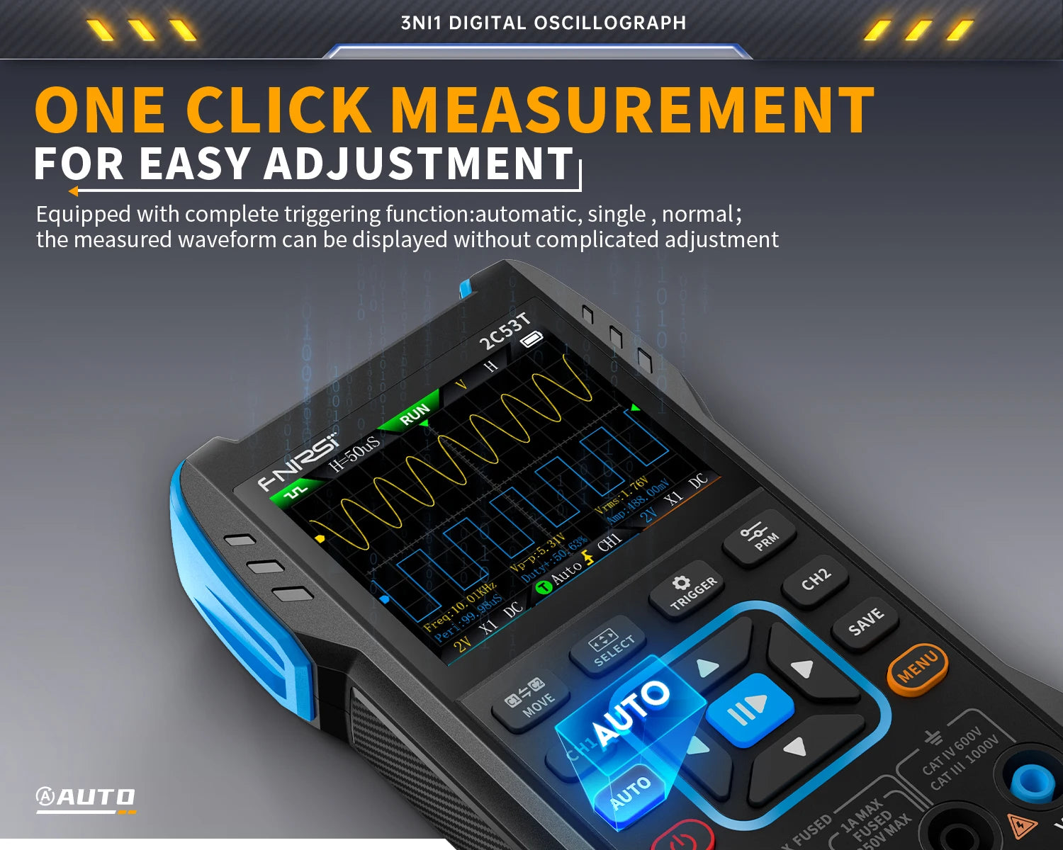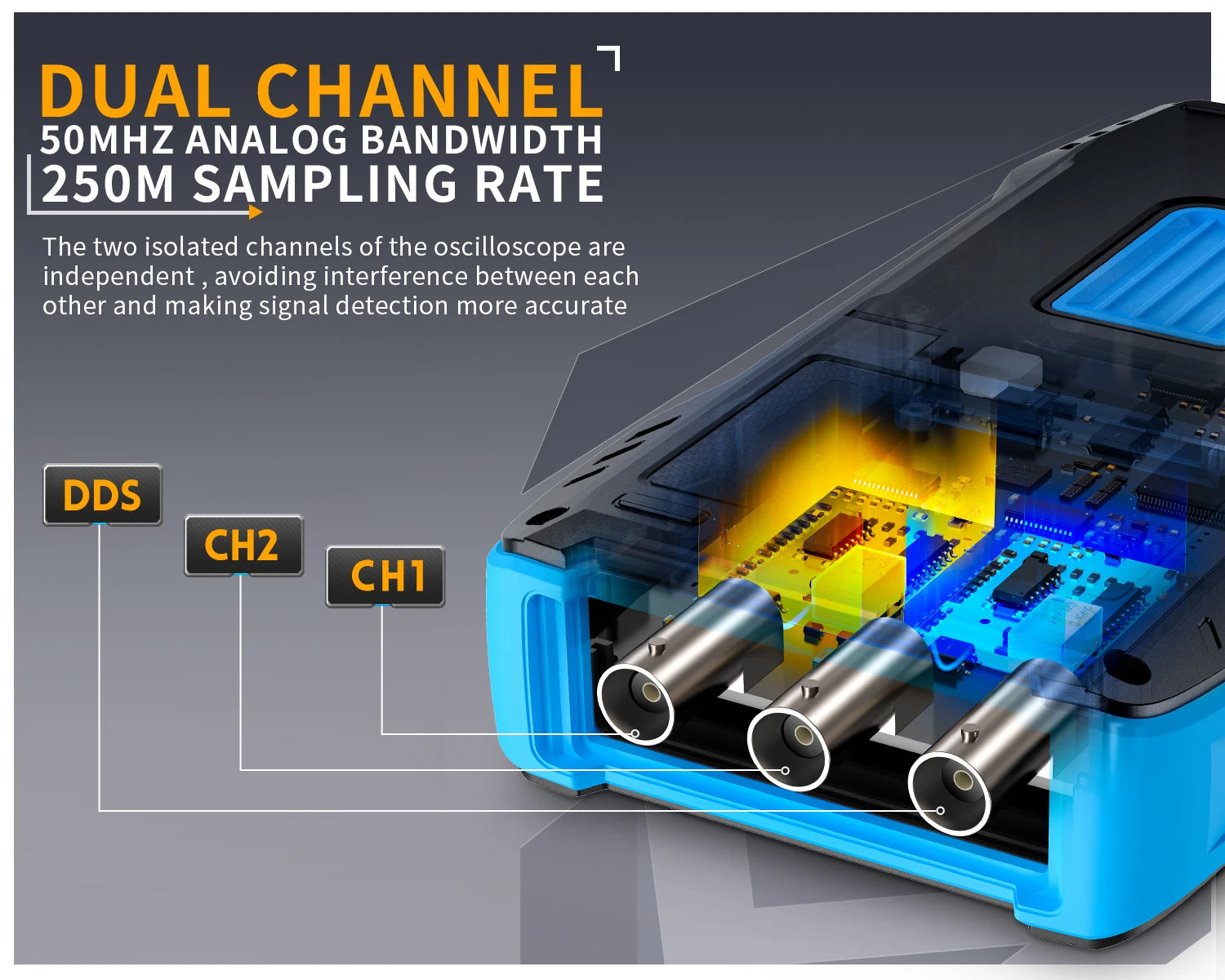 Handheld 50MHz Digital Oscilloscope Multimeter Signal Generator 3-in-1 Dual Channel Automotive Tool