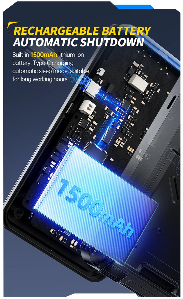 Designed for portability, it features a 2.8-inch TFT color screen for clear visual data representation and a built-in 1500mAh rechargeable lithium battery, allowing for up to four hours of standby time. Its lightweight and compact design make it suitable for mobile use.