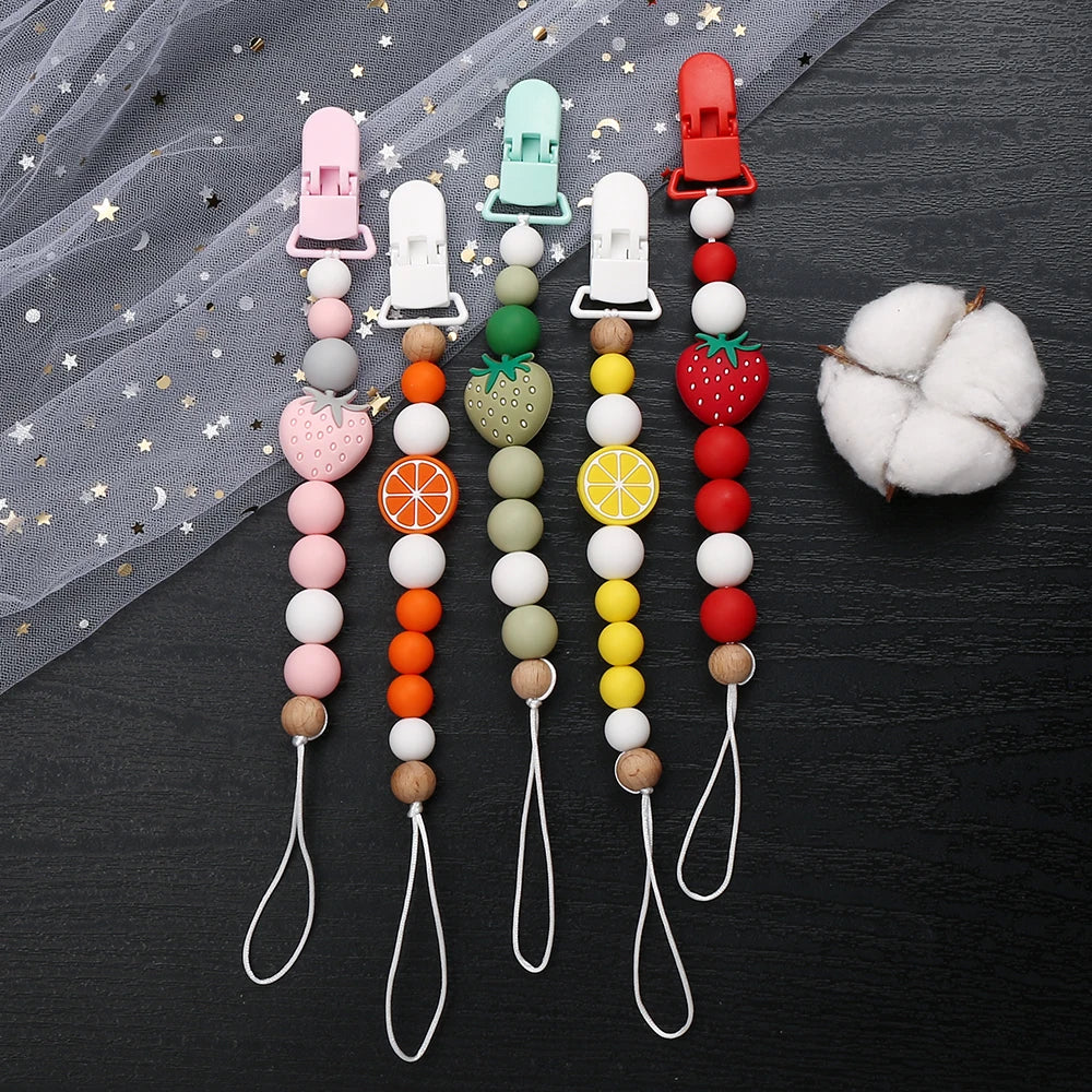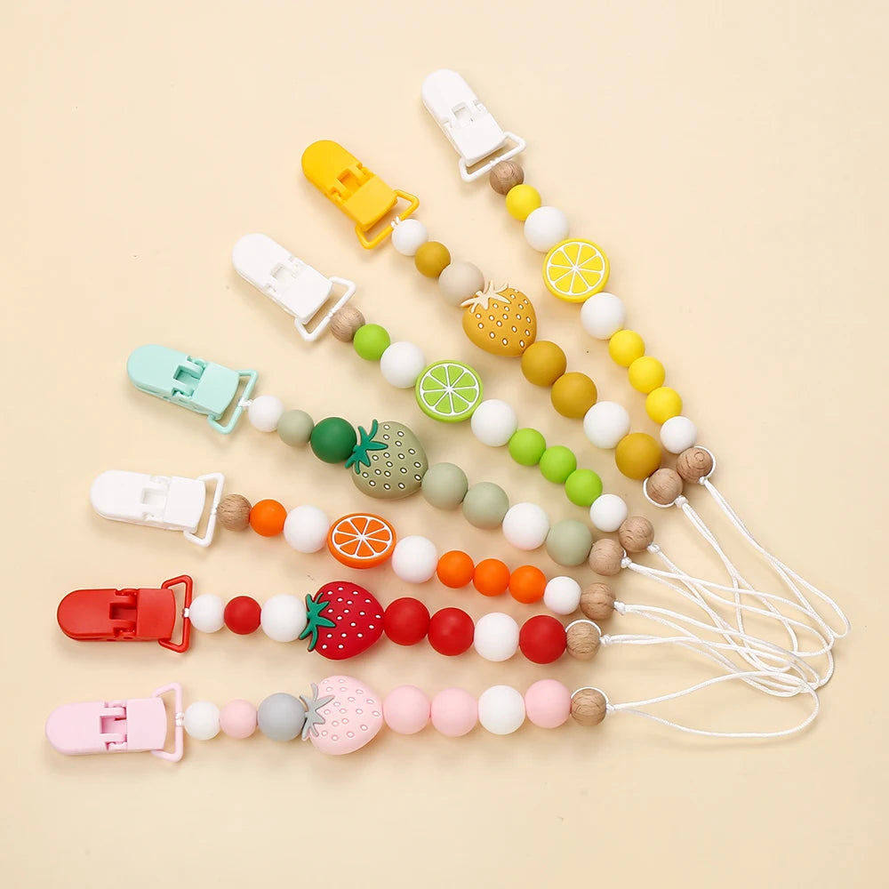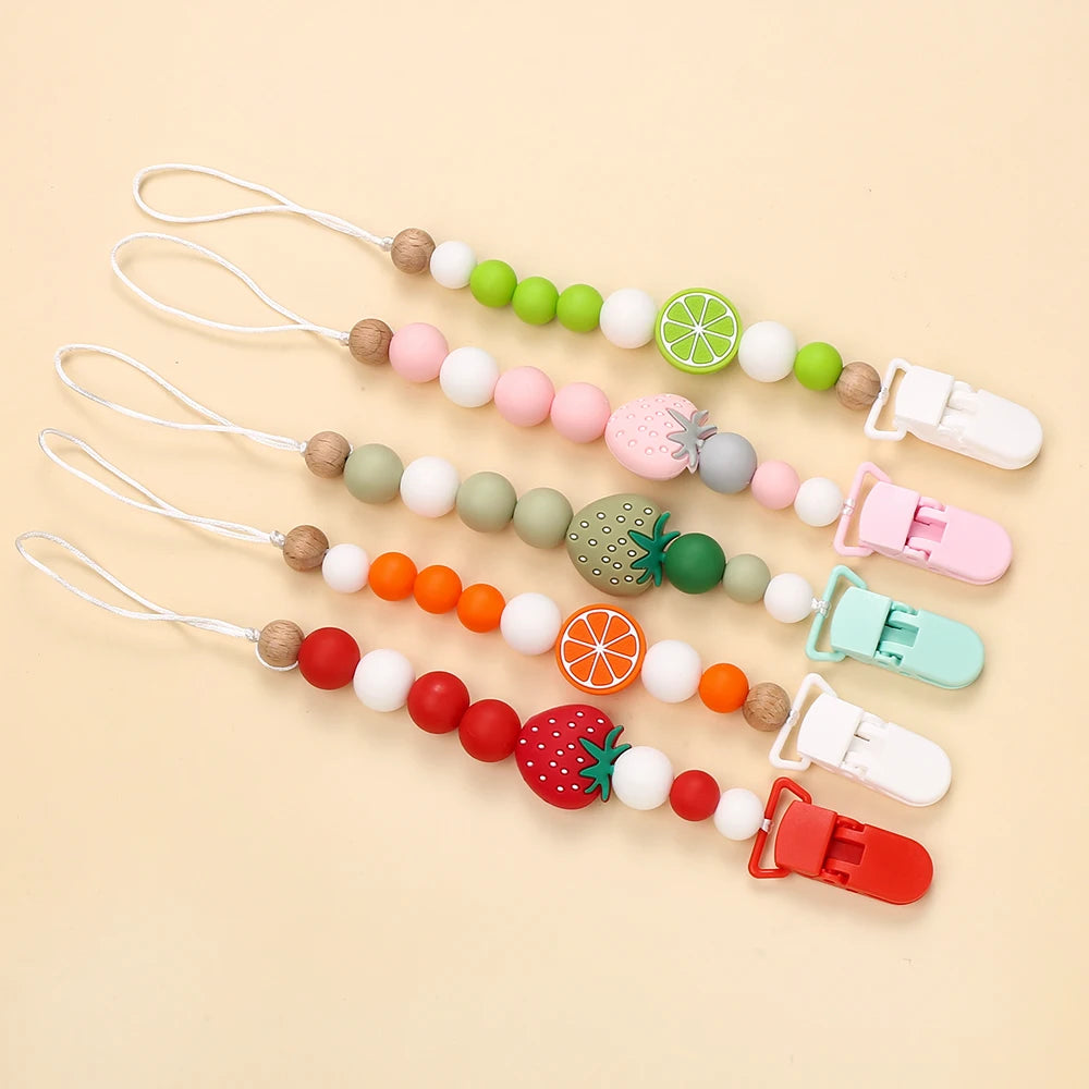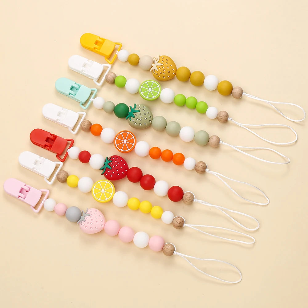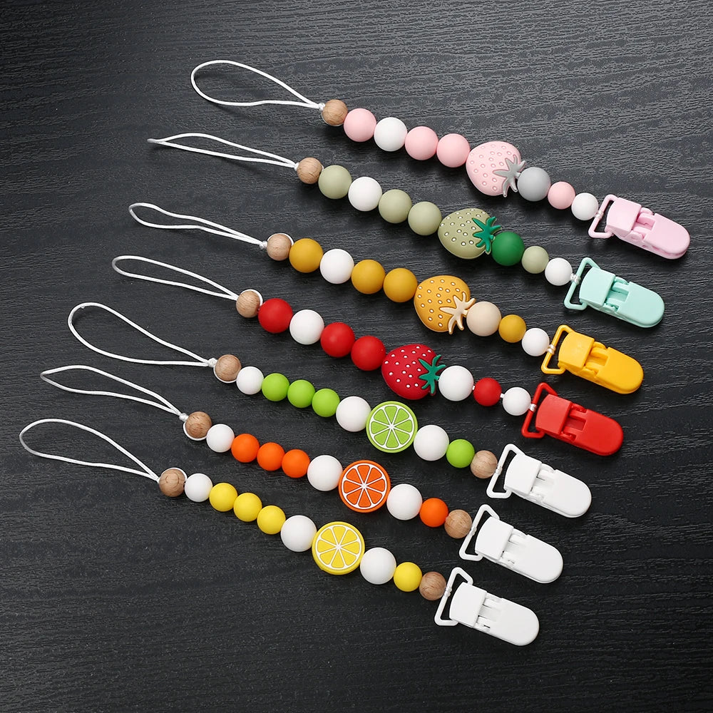 Fruit Silicone Beads Baby Pacifier Clip & Teether Holder Soother Chain Dummy Strap Nipple Holder