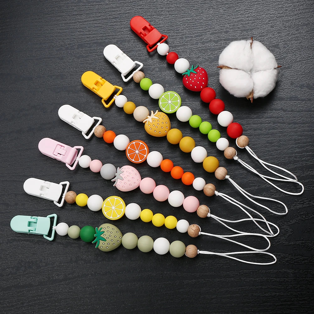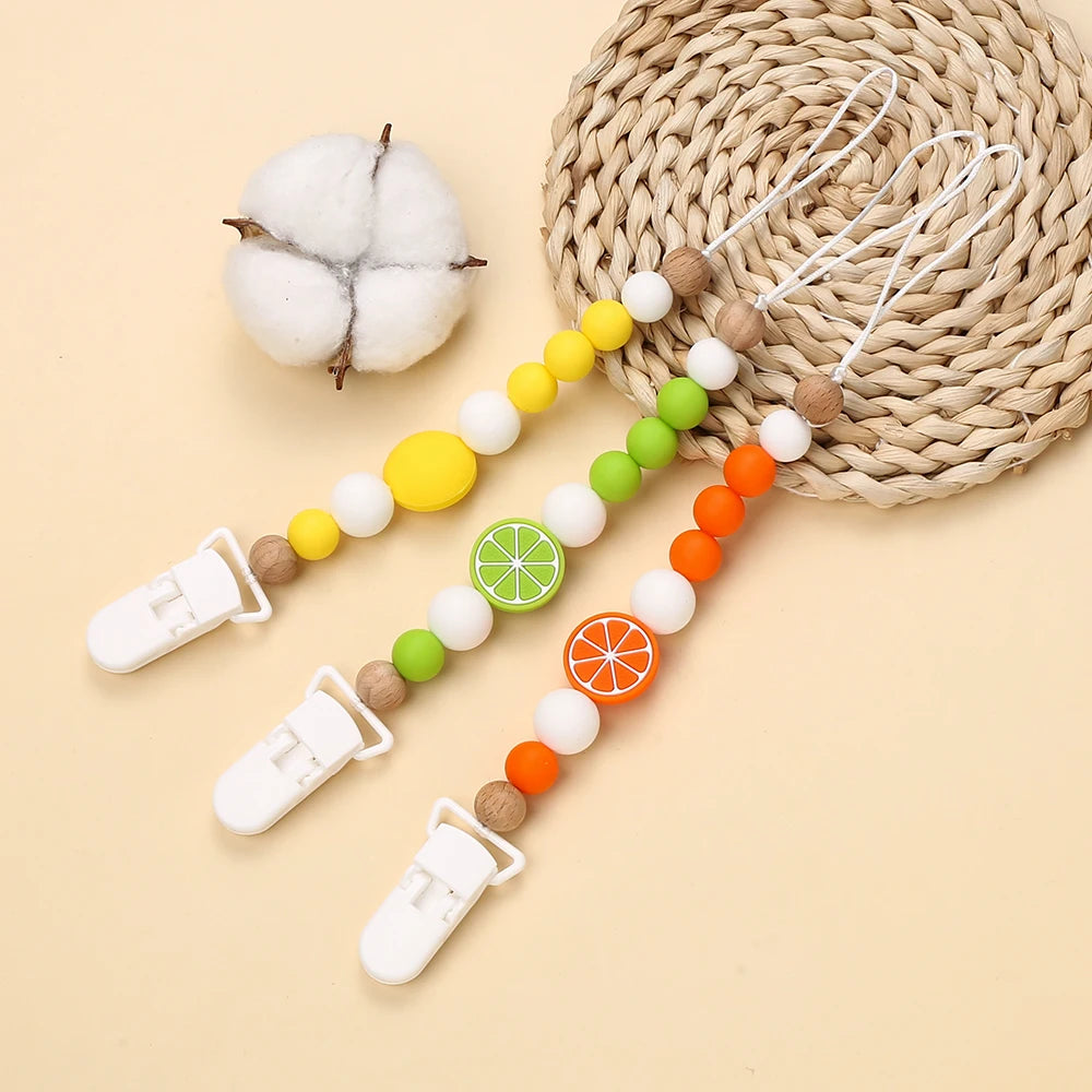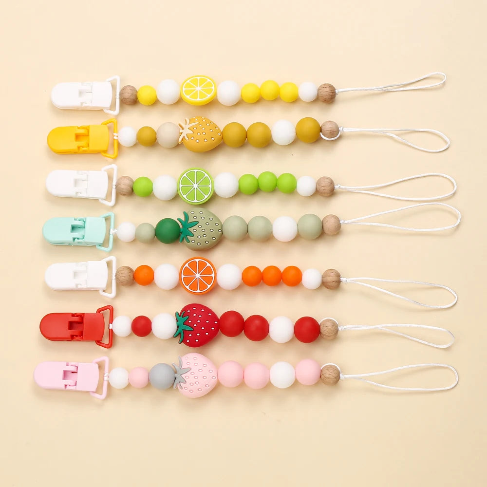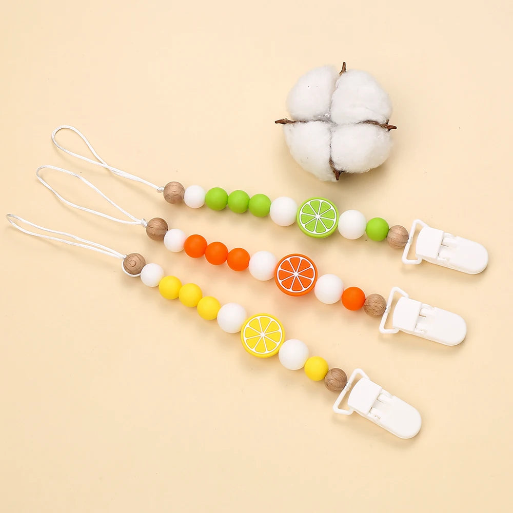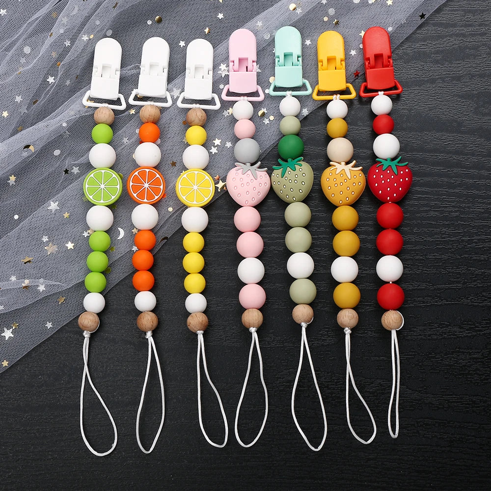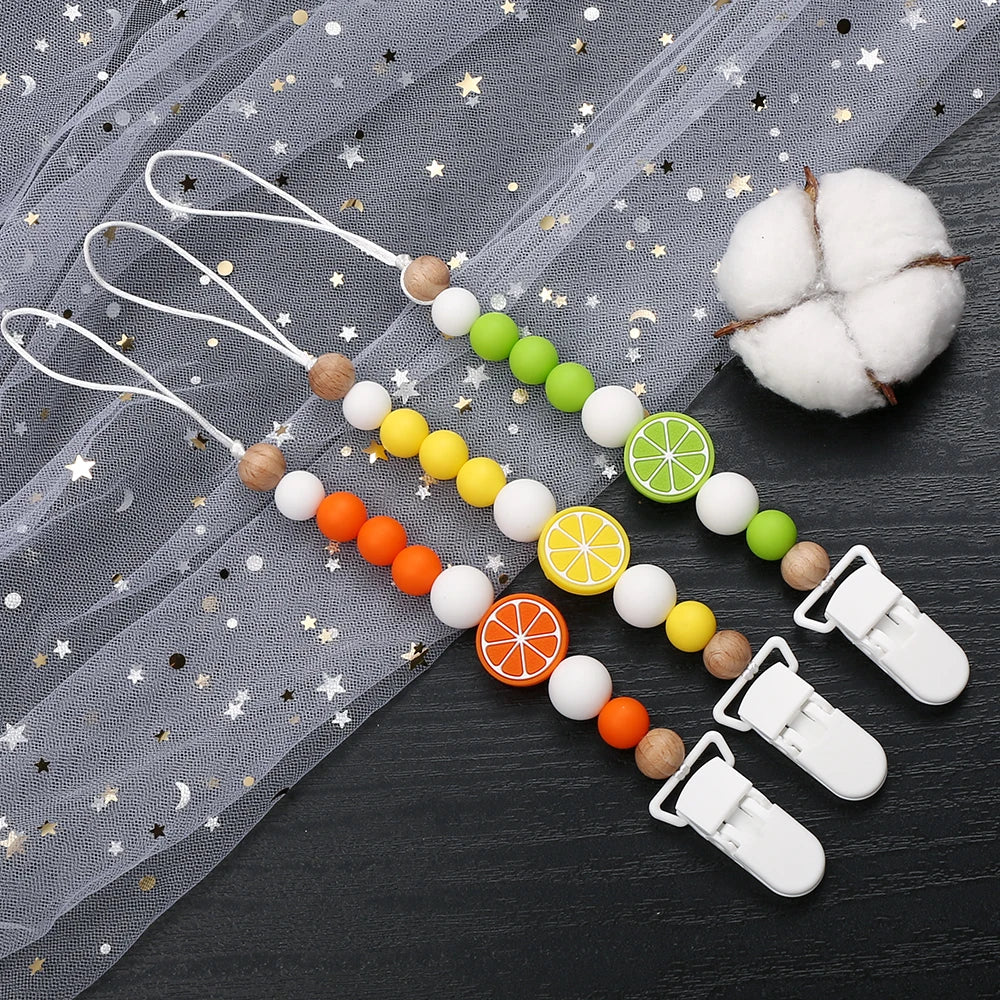 Fruit Silicone Beads Baby Pacifier Clip & Teether Holder Soother Chain Dummy Strap Nipple Holder
