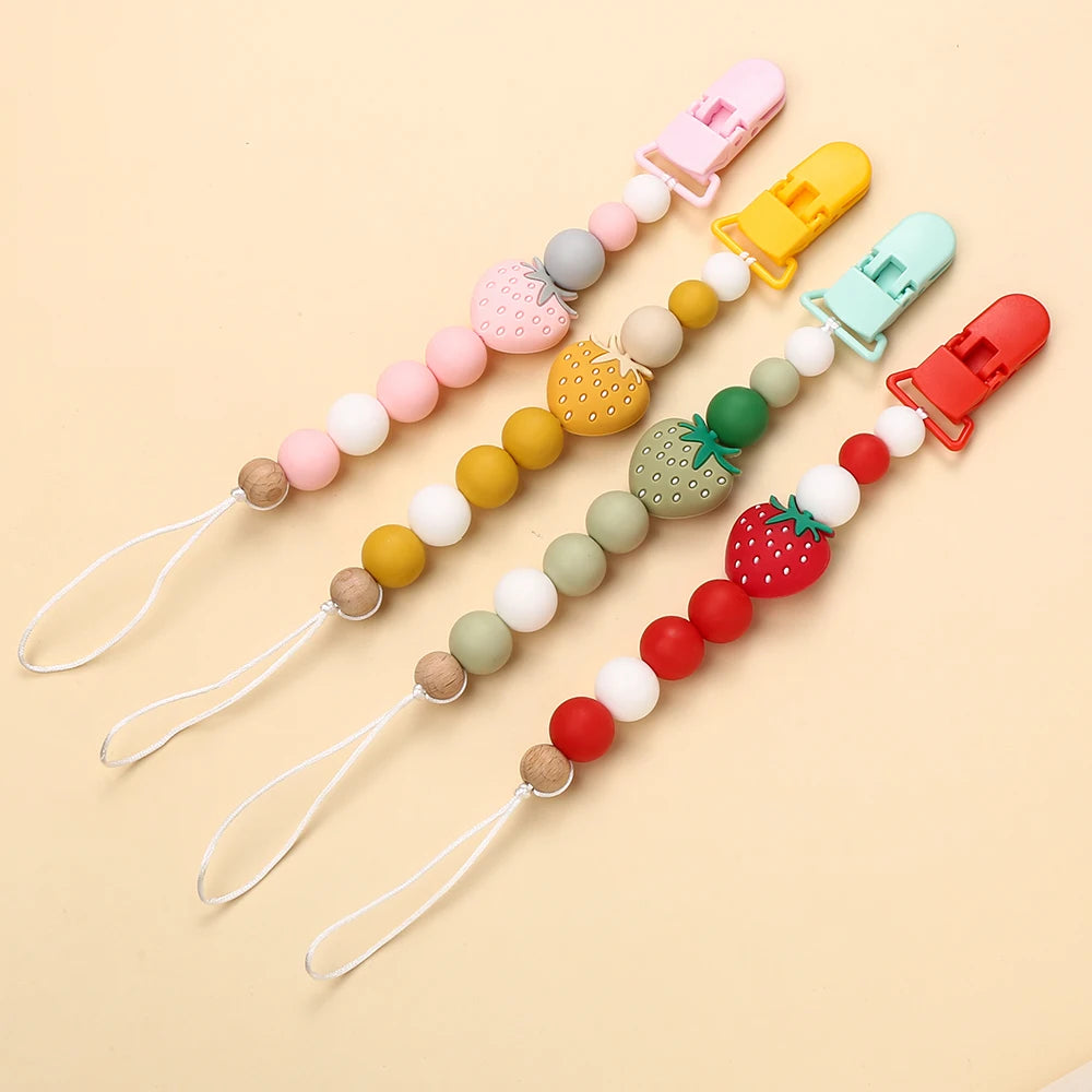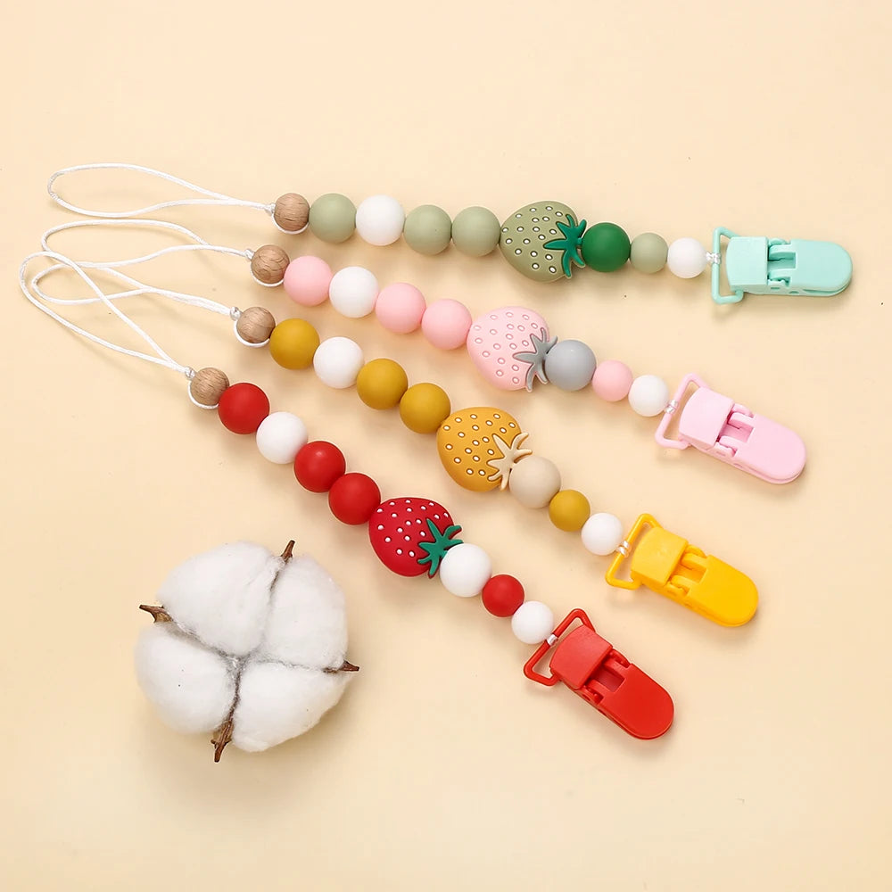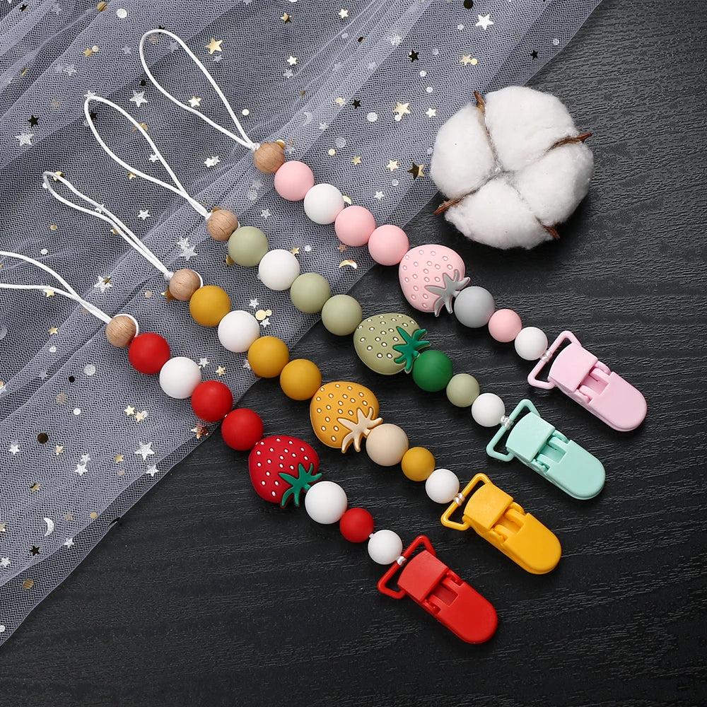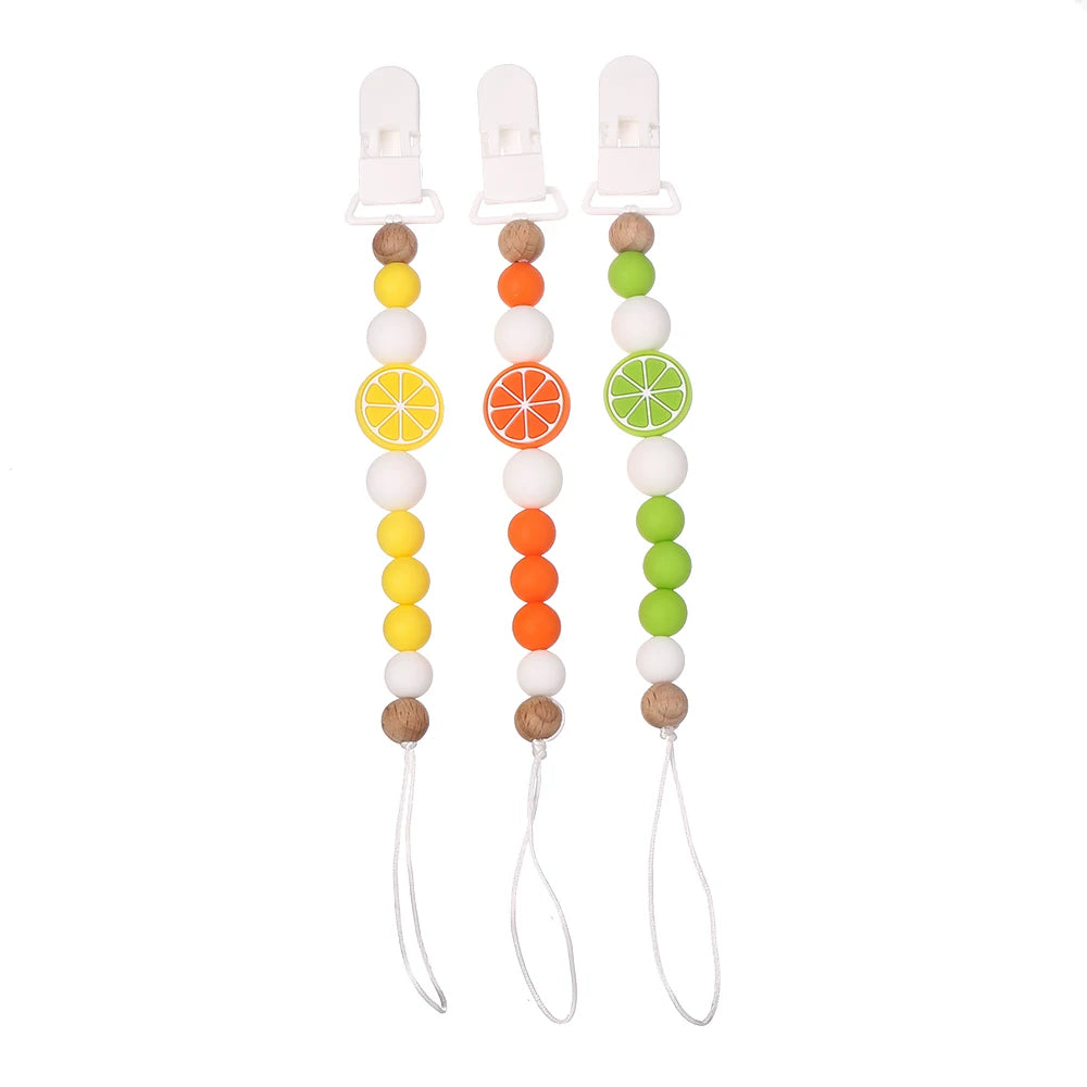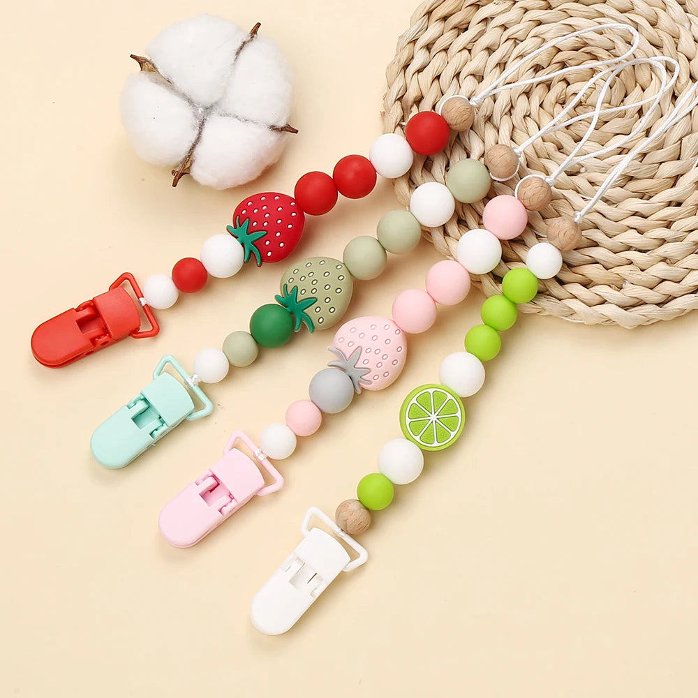 Fruit Silicone Beads Baby Pacifier Clip & Teether Holder Soother Chain Dummy Strap Nipple Holder