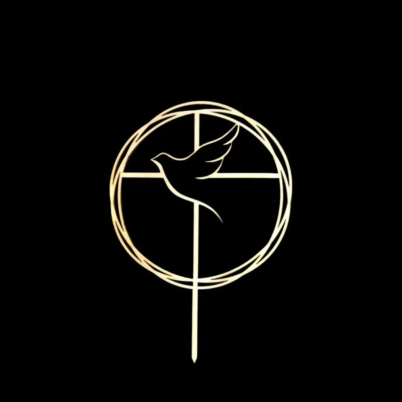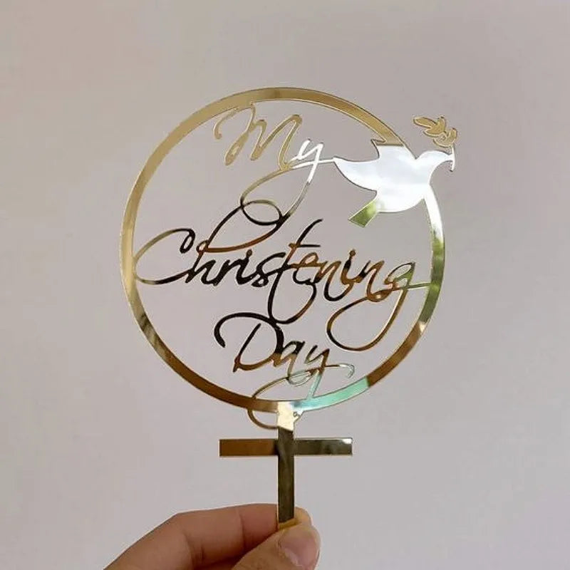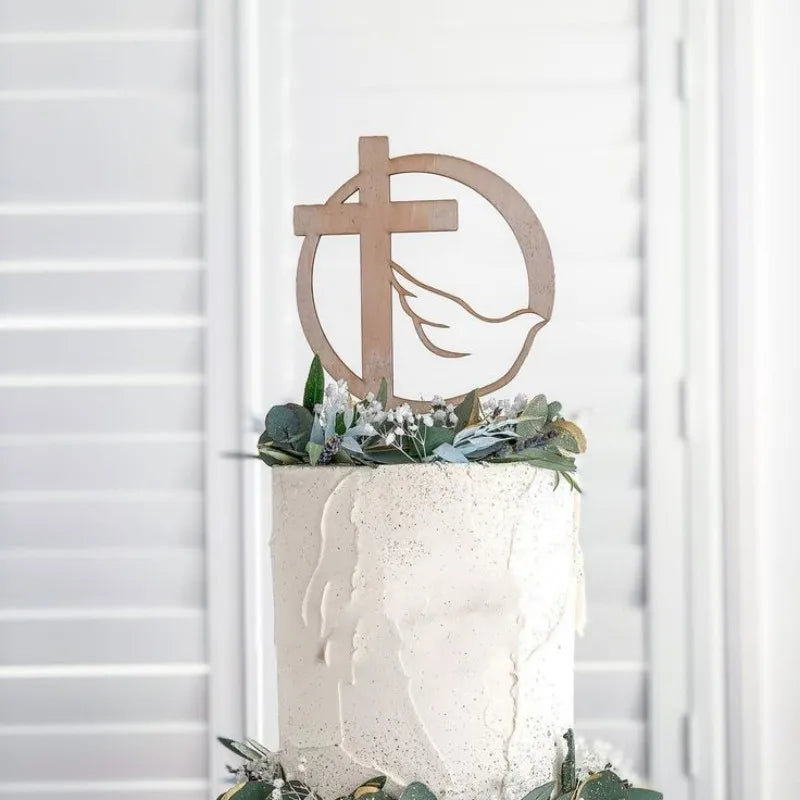 Gold Cake Topper Set for First Communion and Baptism Party Decorations