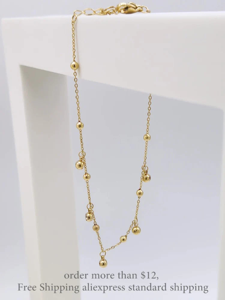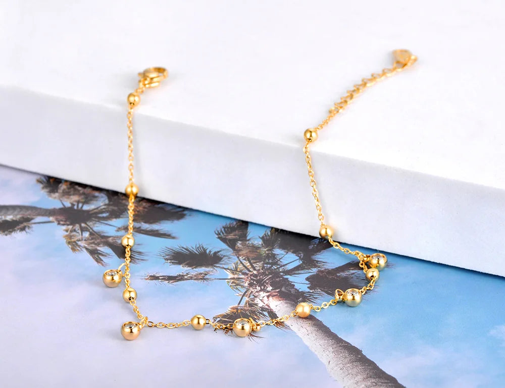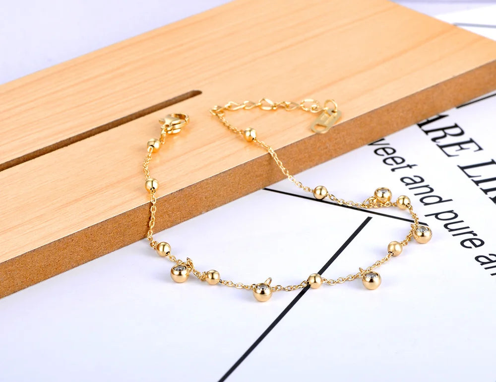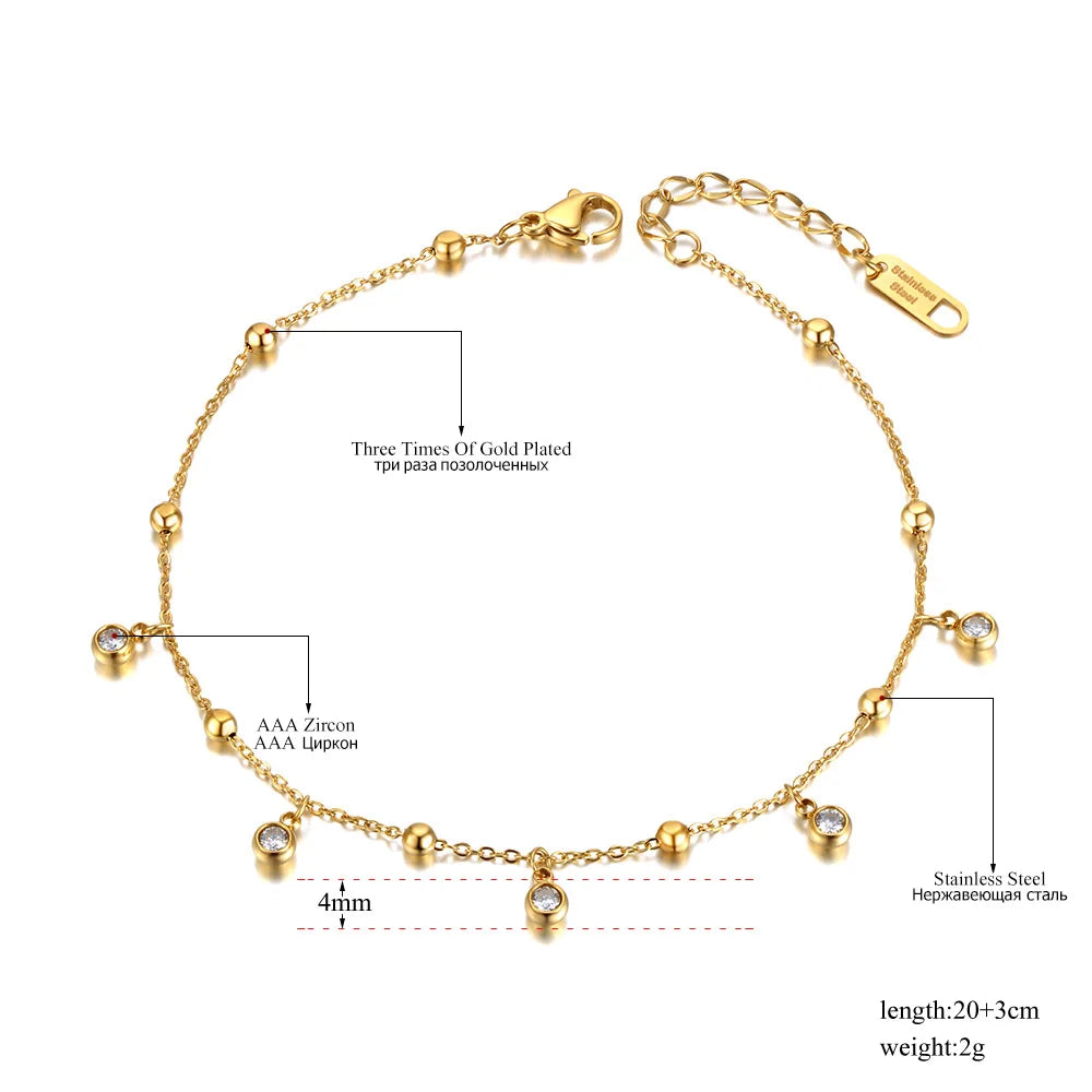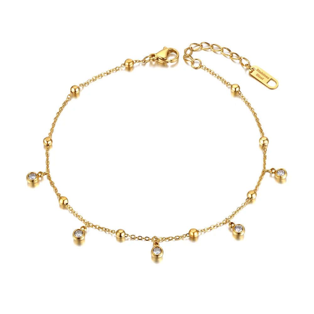 Gold Plated Stainless Steel Cz Crystal Charm Ankle Bracelet Foot Jewelry