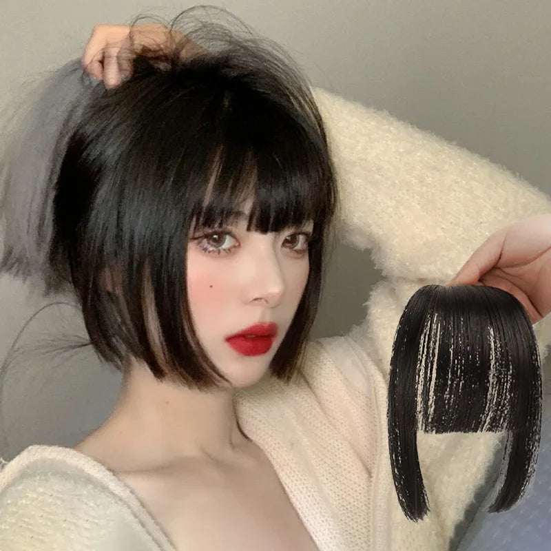 Clip-In False Bangs Hair Extension Fake Fringe Natural High-Temp Hime Cut Hair Accessories