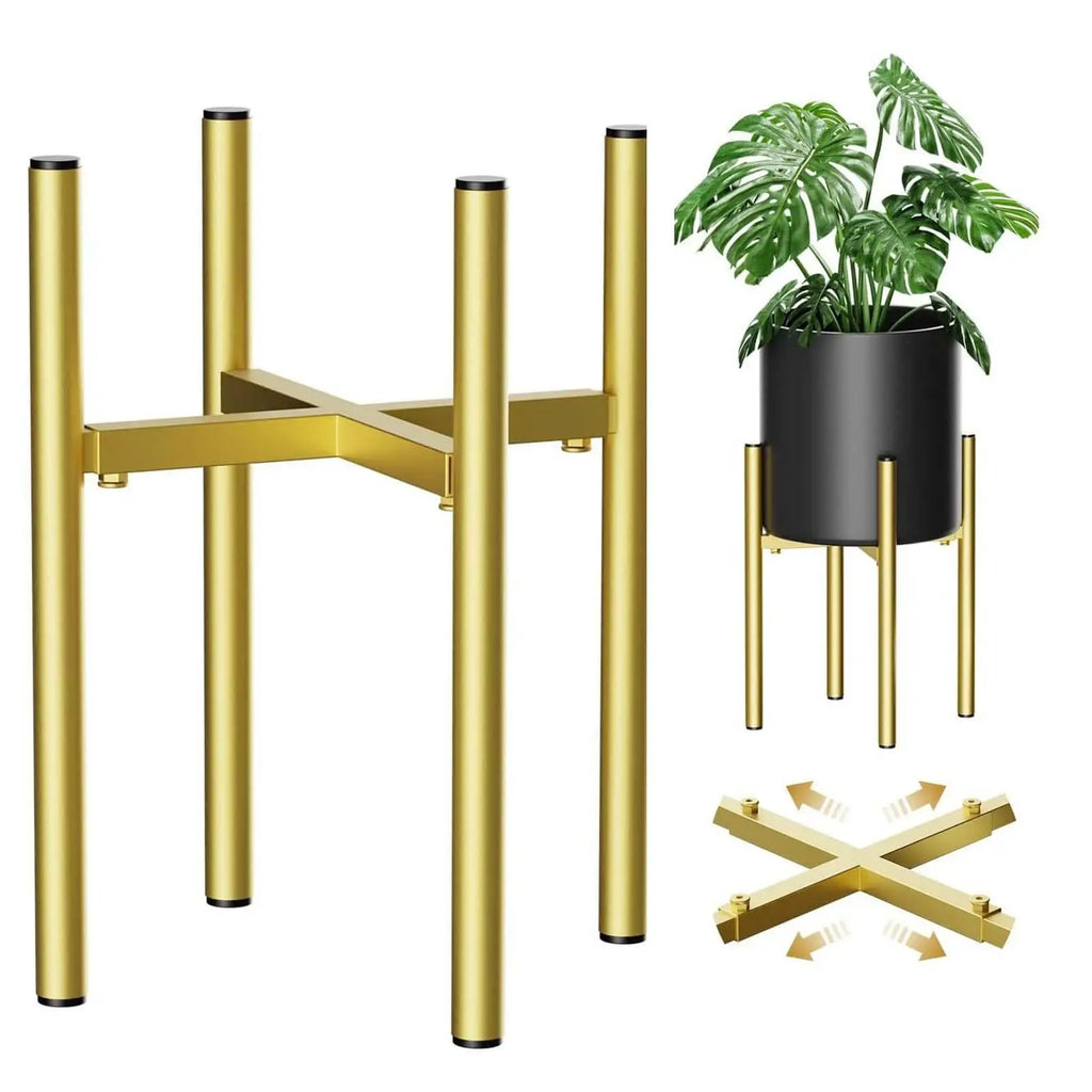 Gold Iron Plant Stand Holder Rack for 7-12 Inch Pots, Heavy Duty for Balcony or Living Room