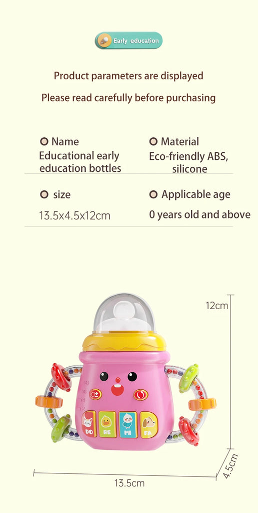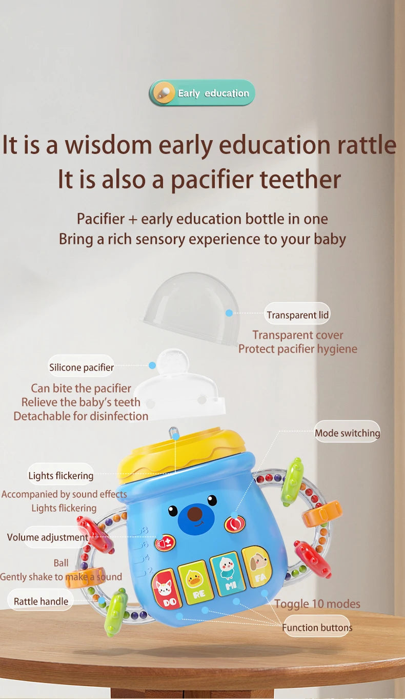 Baby Musical Bottle Pacifier 0-12M Teether Rattle Toy - Newborn Educational Soothing Music