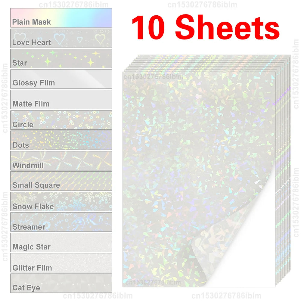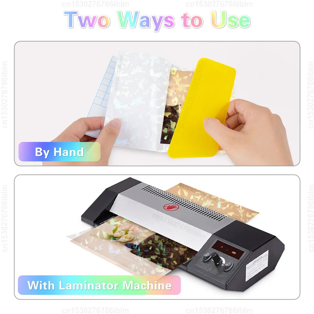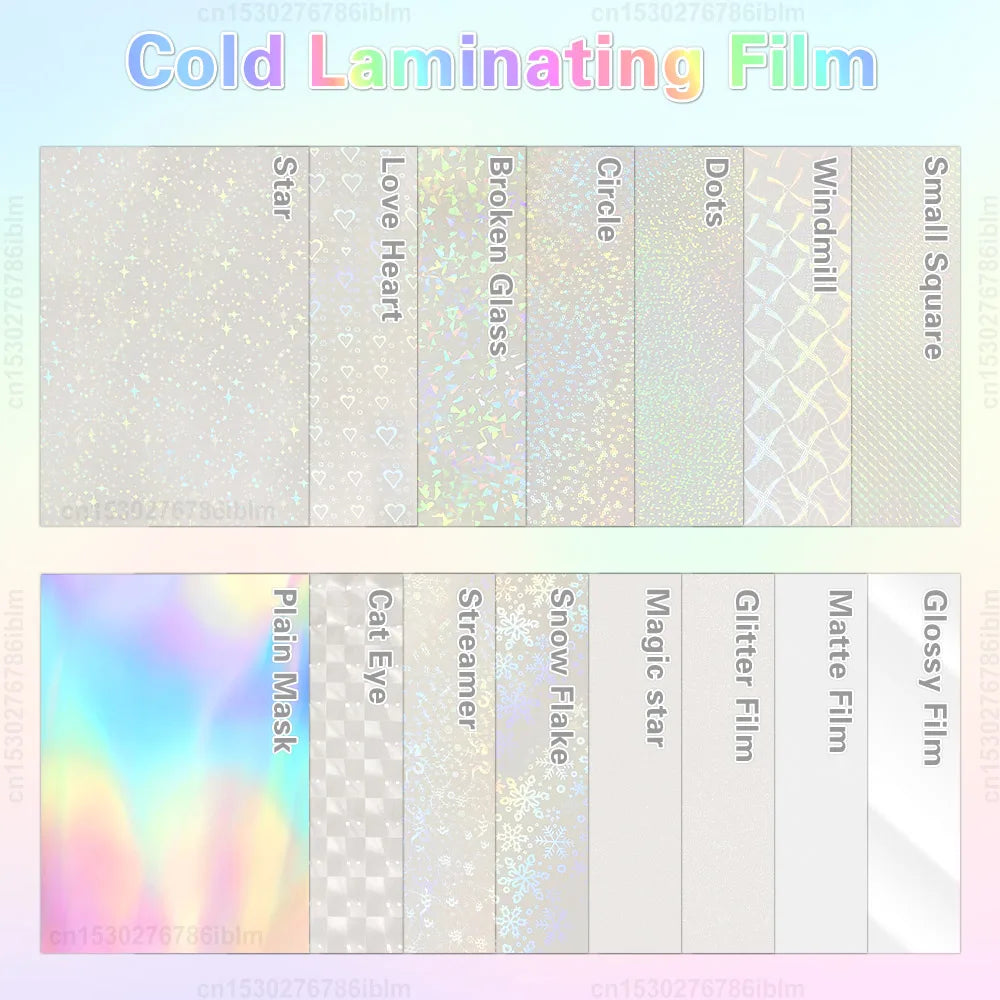 Enhance and protect your precious memories and documents with our versatile Cold Laminating Film. Designed for both creativity and functionality, this film is perfect for wedding photos, advertisements, and various artworks. It features a self-adhesive, waterproof surface that not only safeguards your images but also enhances their texture. Available in a diverse range of colors and patterns, including Broken Glass, Stars, Hearts, and Holographic designs, this film adds a unique touch to any project. Each pack contains ten A4 sheets, measuring 210mm x 297mm, with a thickness of 50 microns for durable protection. Easy to apply, you can use it with or without a laminator, making it ideal for DIY enthusiasts.