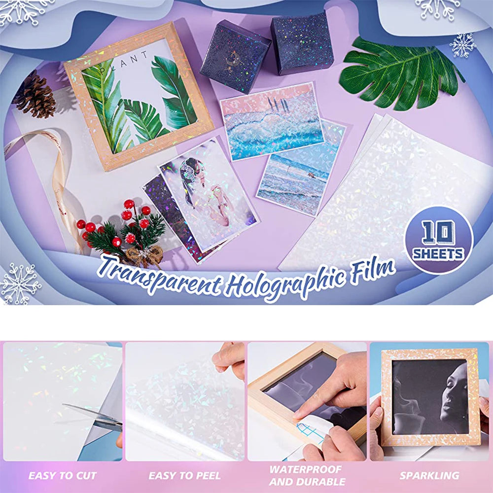 A4 Glossy Transparent Cold Laminating Film 10 Sheets - Self-Adhesive Holographic Sticker Sheets