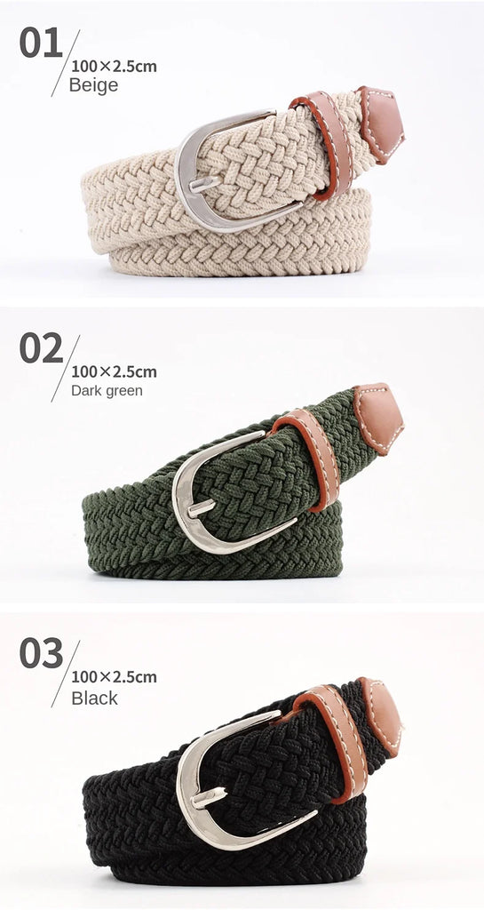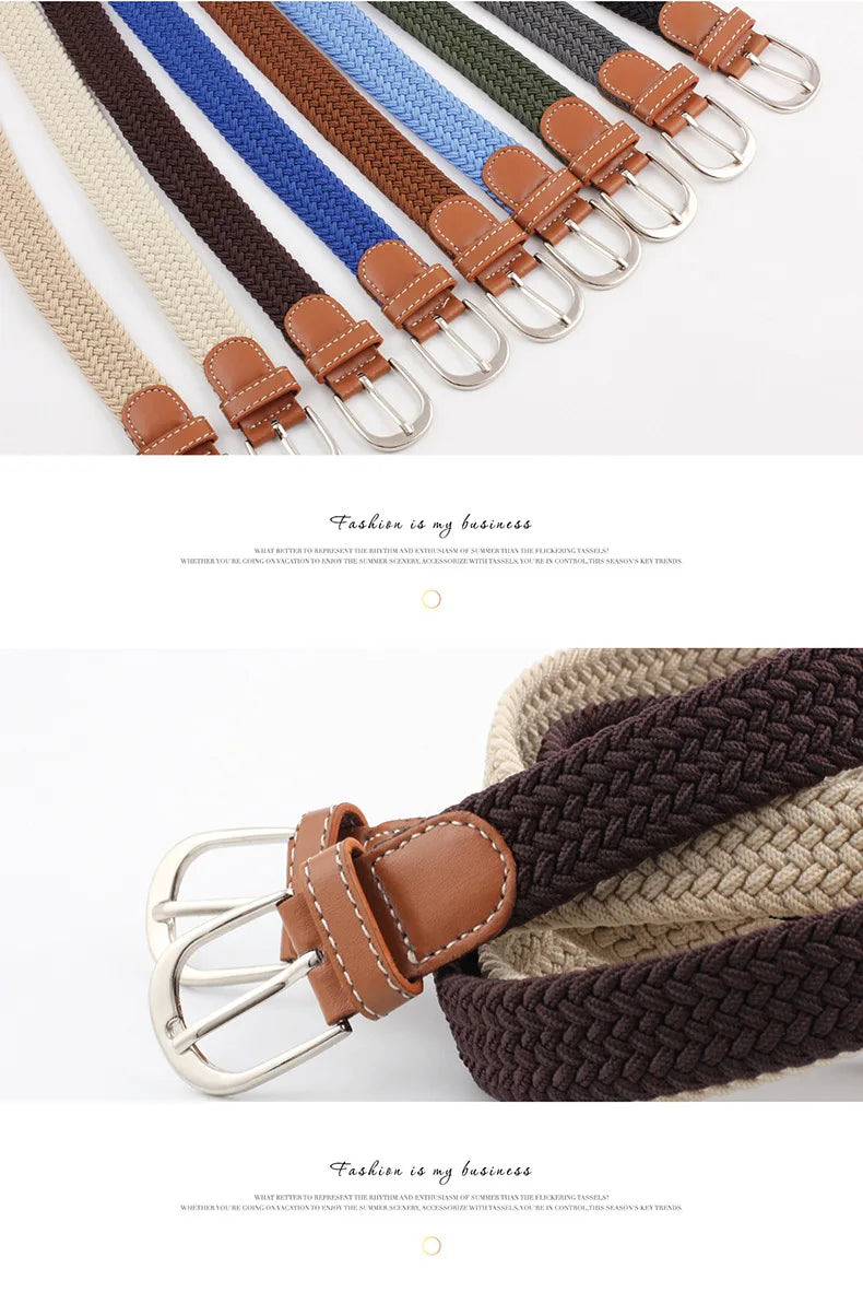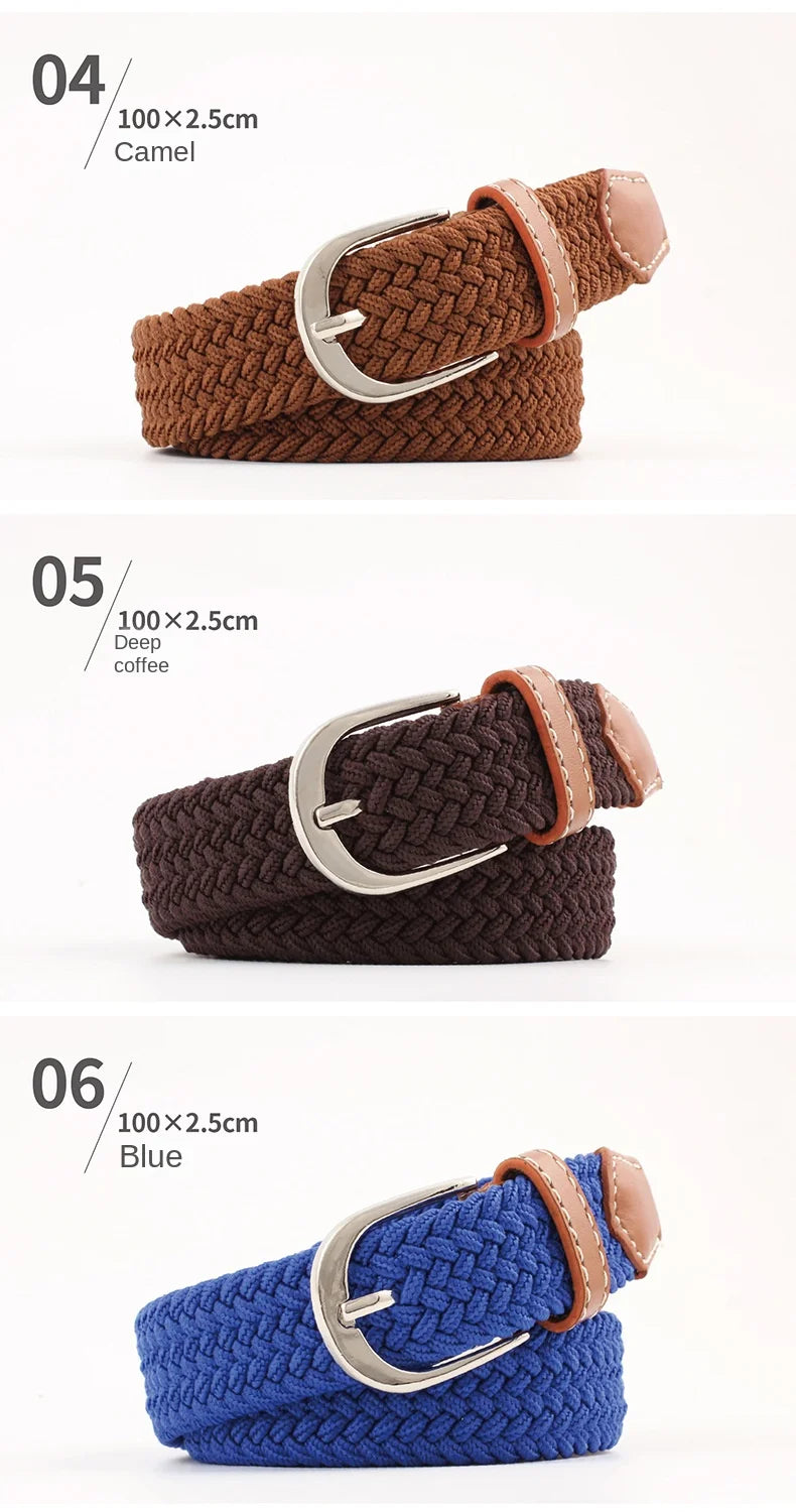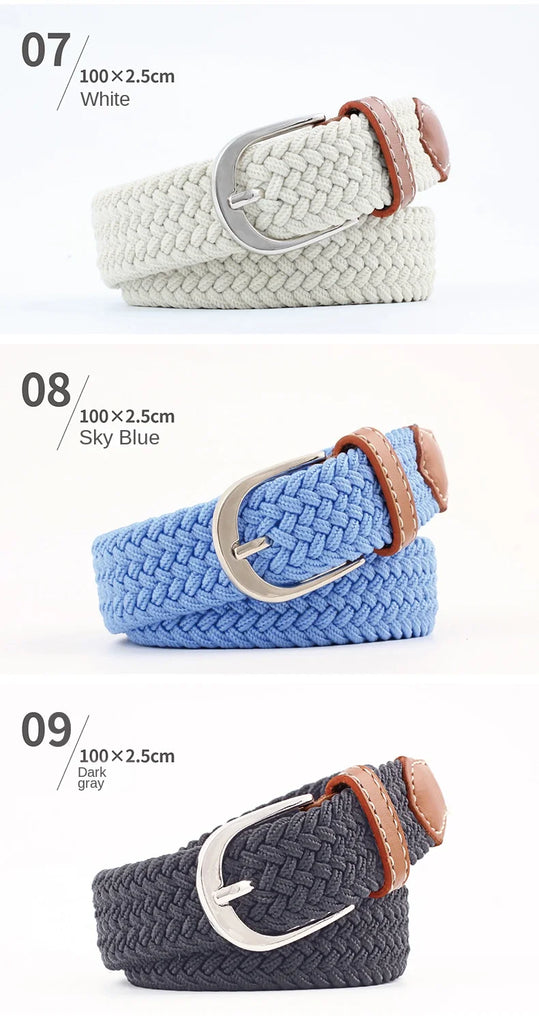 Adjustable 100cm Stretch Canvas Belt Men's Women's Casual Knitted Woven Tactical Strap Elastic for Jeans Pants