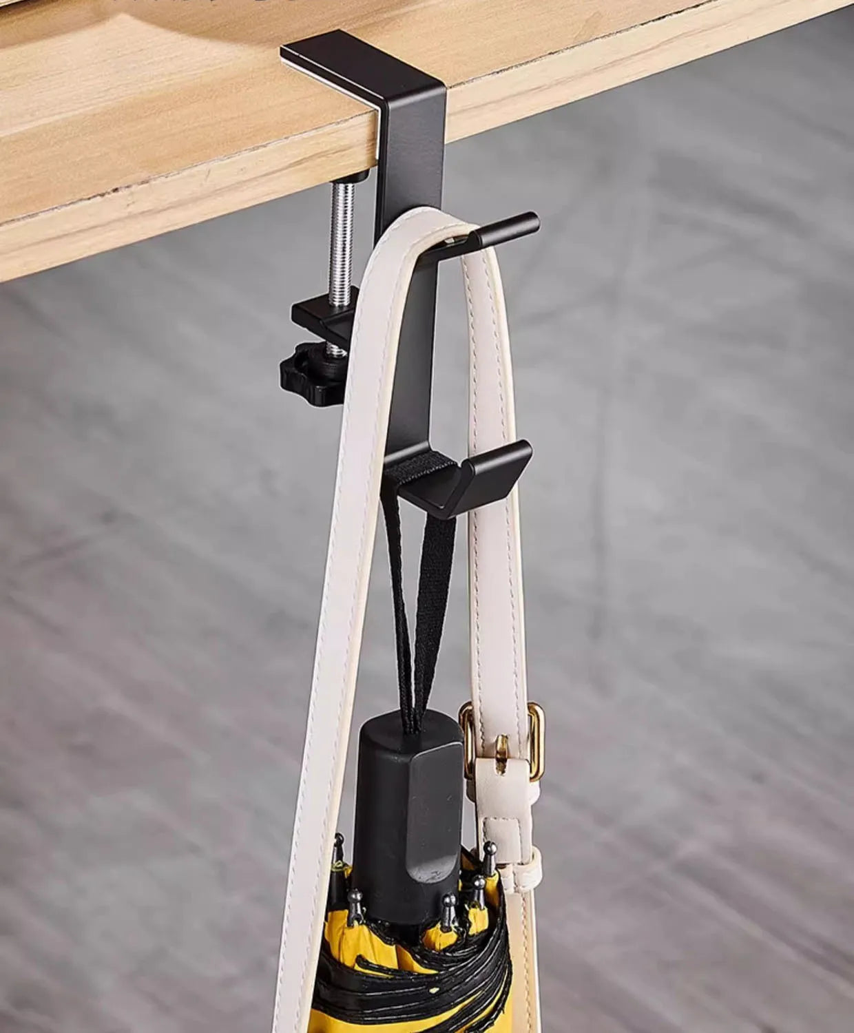 Adjustable No-Drill Under-Desk Headphone & Backpack Hook Hanger