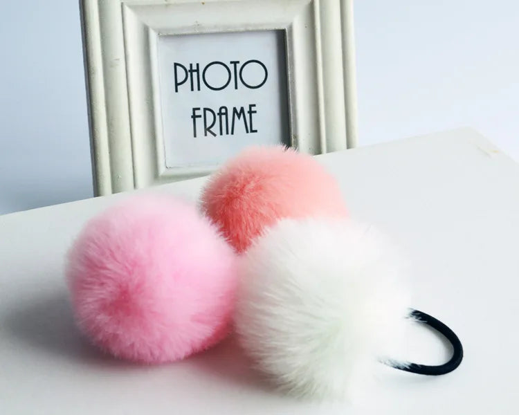 Cute Double Pom Pom Hair Ties - Elastic Bands for Girls
