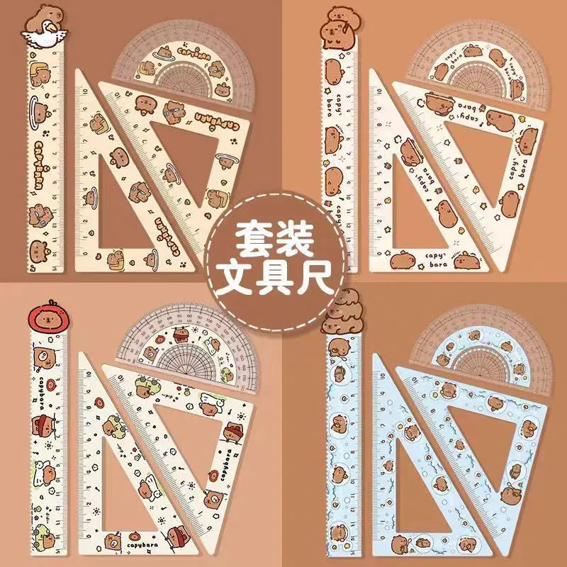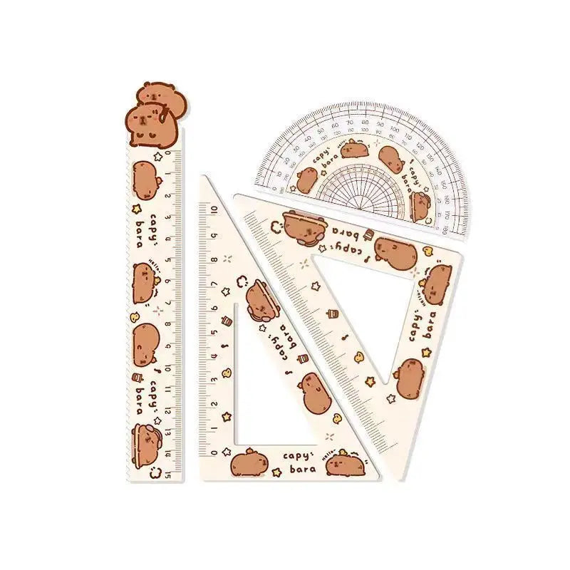Cute Capybara Acrylic Ruler Set - 4pcs Cartoon Drawing Tools for Office & School