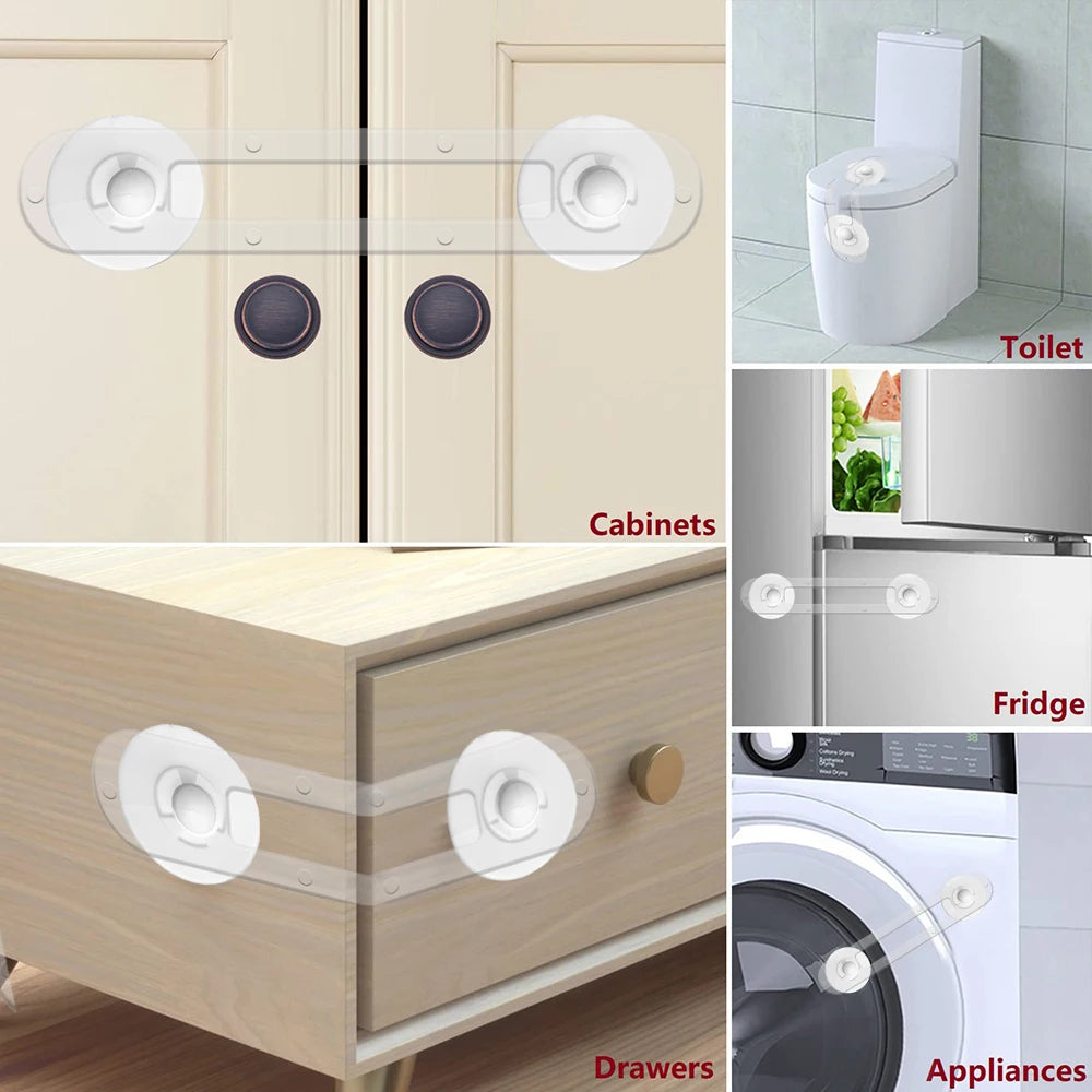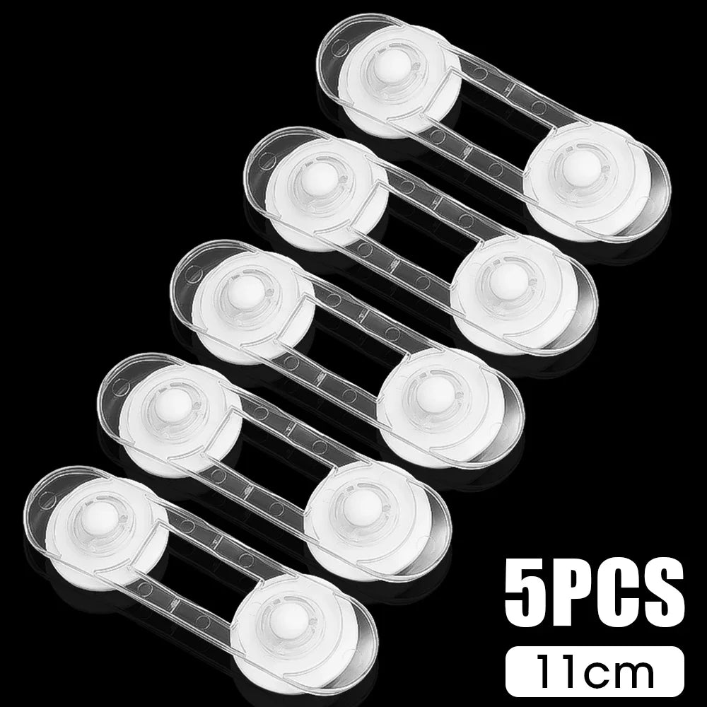 Baby Safety Locks 5pc Set: Transparent Cabinet Locks, Anti-Opening, Anti-Clip Hand Door Locking Fixing Clips