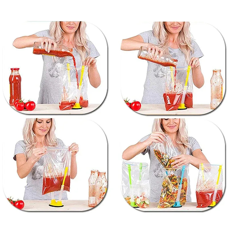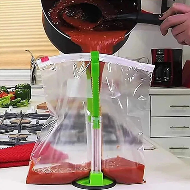 Elevate your kitchen efficiency with our Eco-Friendly Bag Holder, designed to streamline your meal prep routine. Crafted from durable, sustainable plastic, it features non-slip rubber feet for secure, hands-free operation, reducing spills and messes.