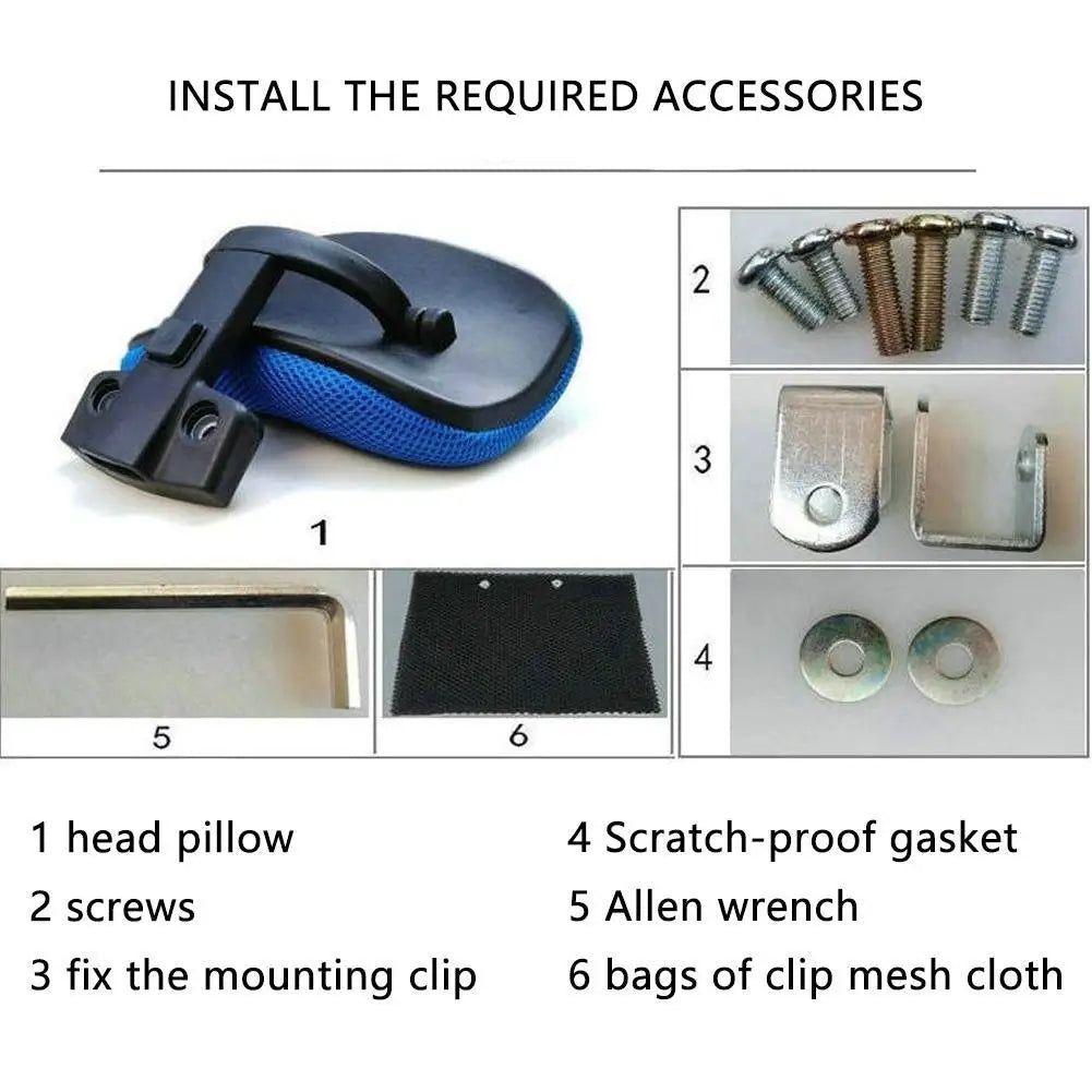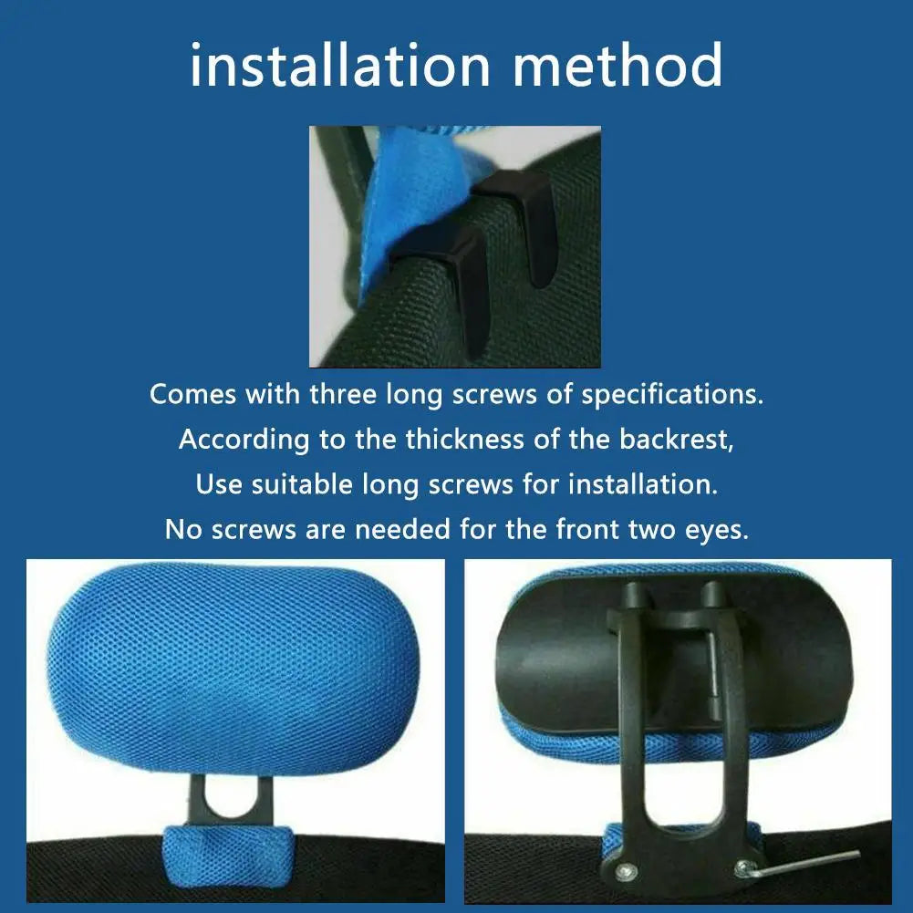 Ensure proper installation by checking your backrest's thickness, as the headrest comes with different sized fixing clips to accommodate various chair designs.