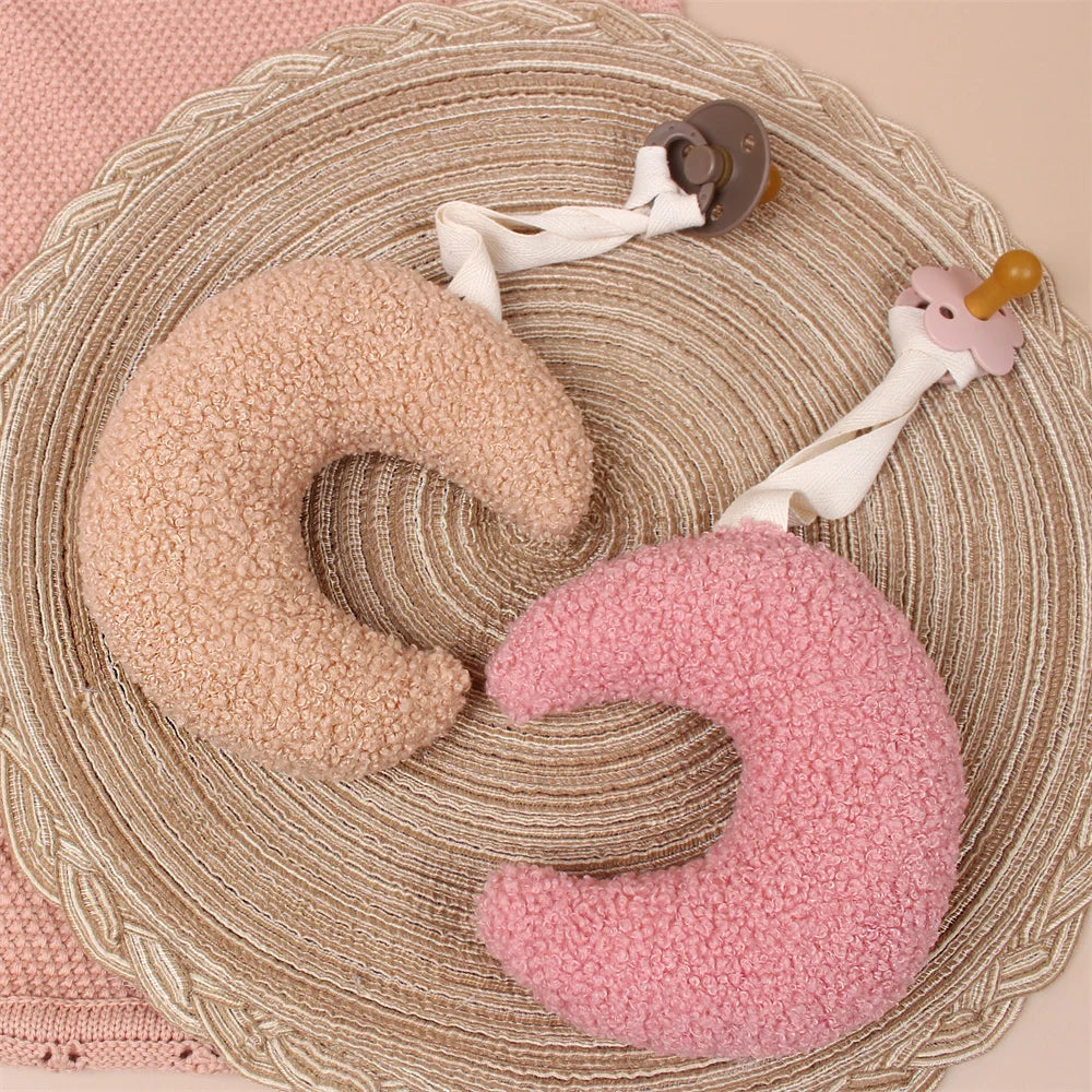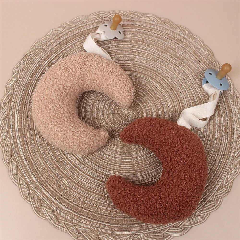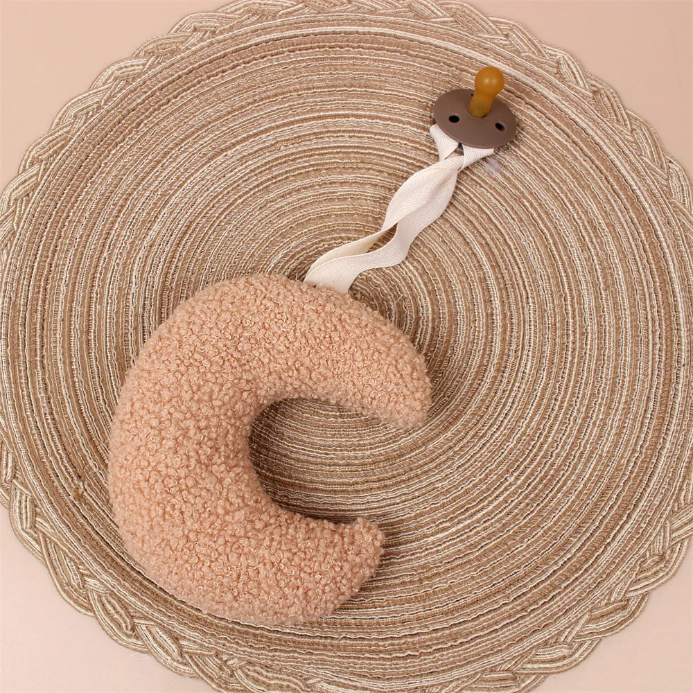 Baby Pacifier Clip Sherpa Moon Plush Chain Silicone Soother Holder BPA Free Infant Newborn Dummy Accessory