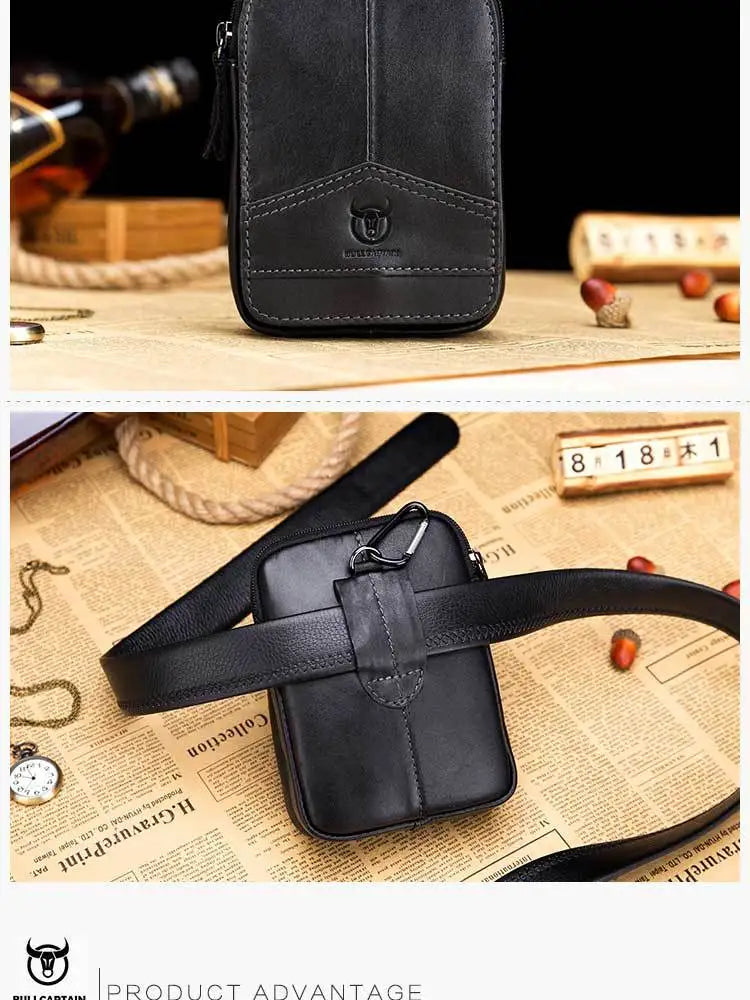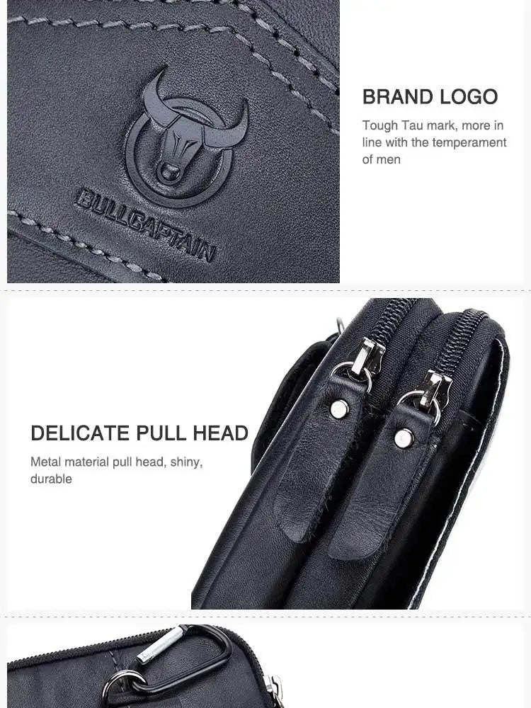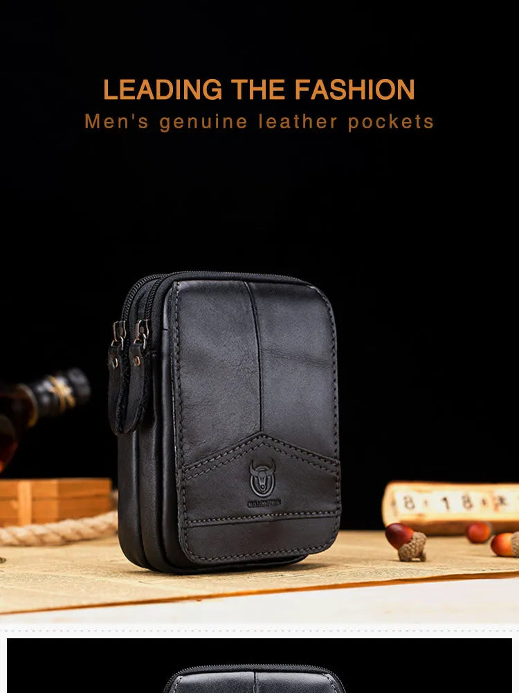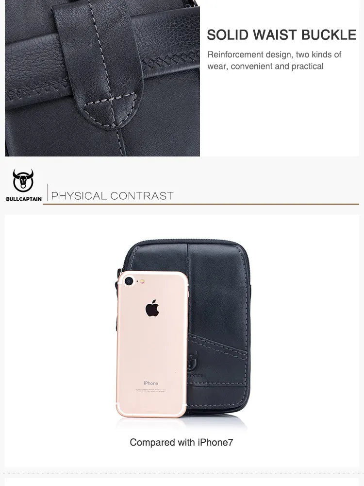 Cowhide Leather Men's Waist Pack Multifunctional Travel Belt Bag Phone Pouch Clutch
