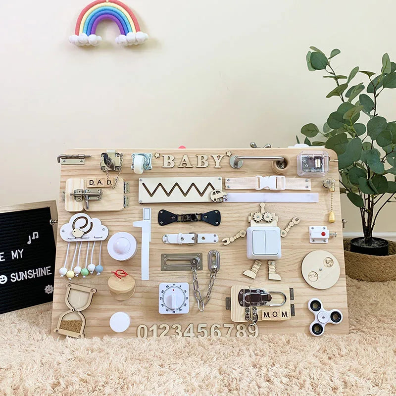 Introduce your little one to a world of exploration and learning with the Baby & Toddler Busy Board. Perfect for children aged 0 to 6, this interactive board is expertly crafted to nurture problem-solving skills and enhance fine motor development through a collection of Montessori-inspired activities. Made from high-quality, non-toxic materials, it ensures a safe and lasting playtime experience. Its lightweight design allows for easy use both at home and on the go, making education fun and accessible wherever you are.