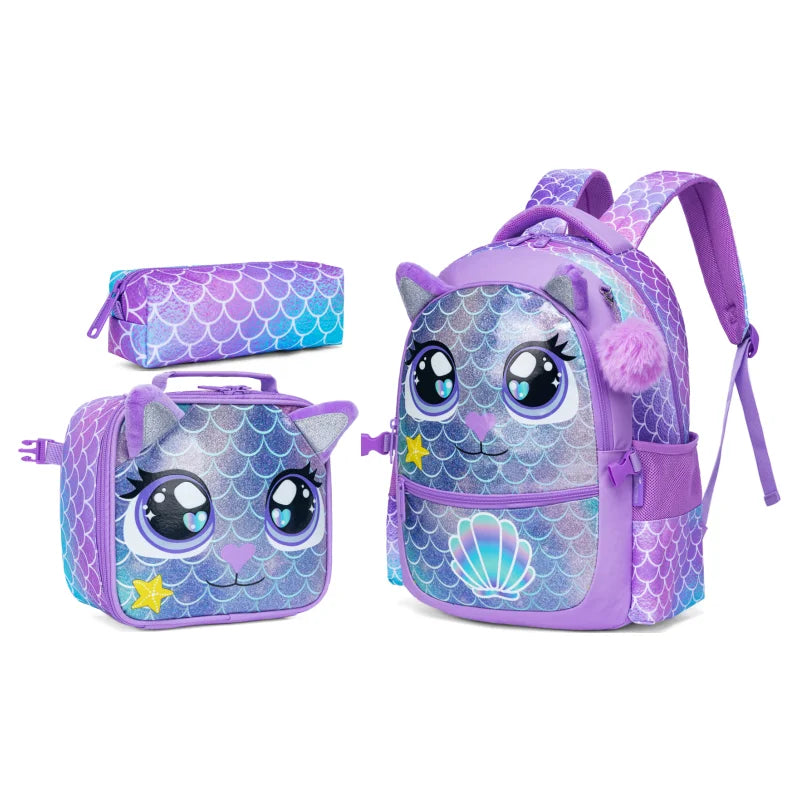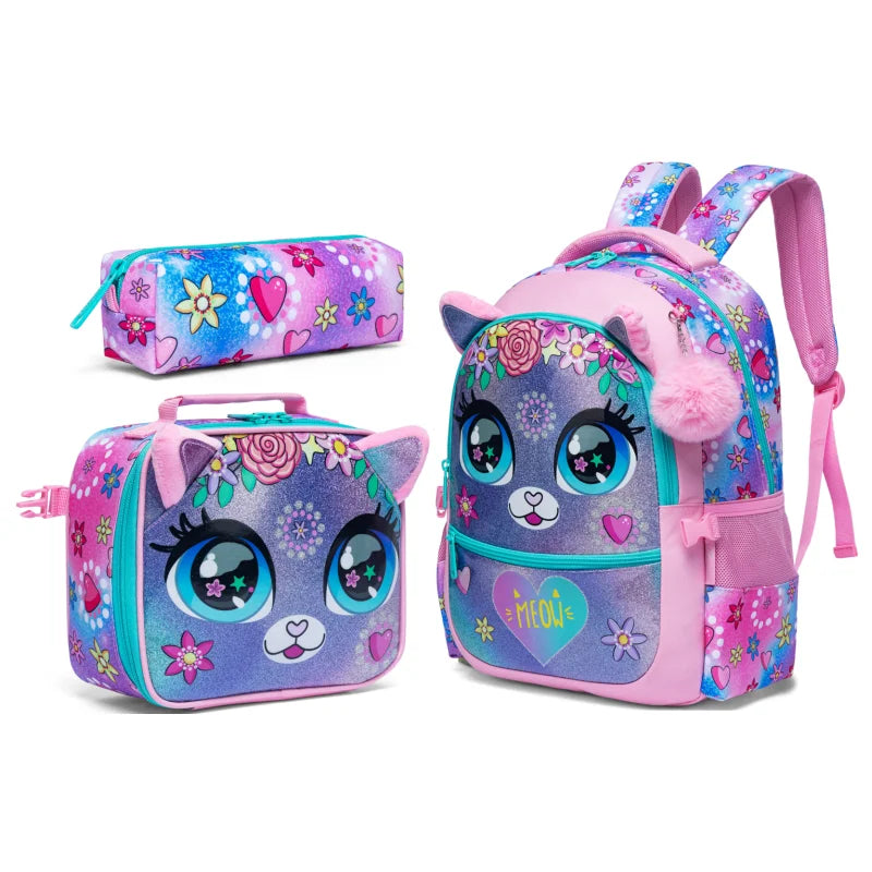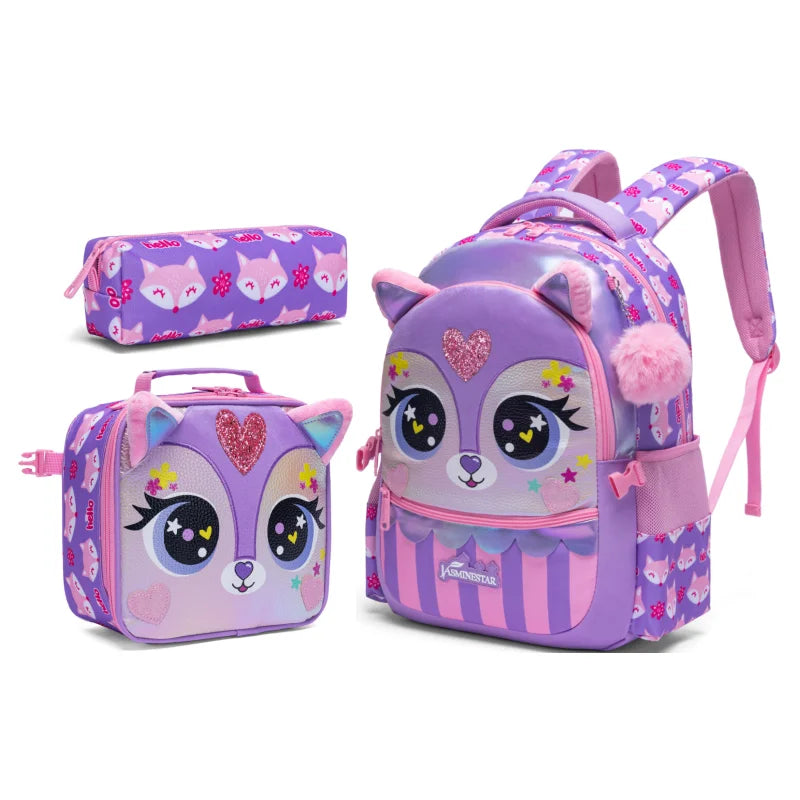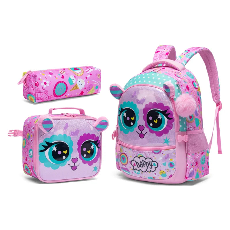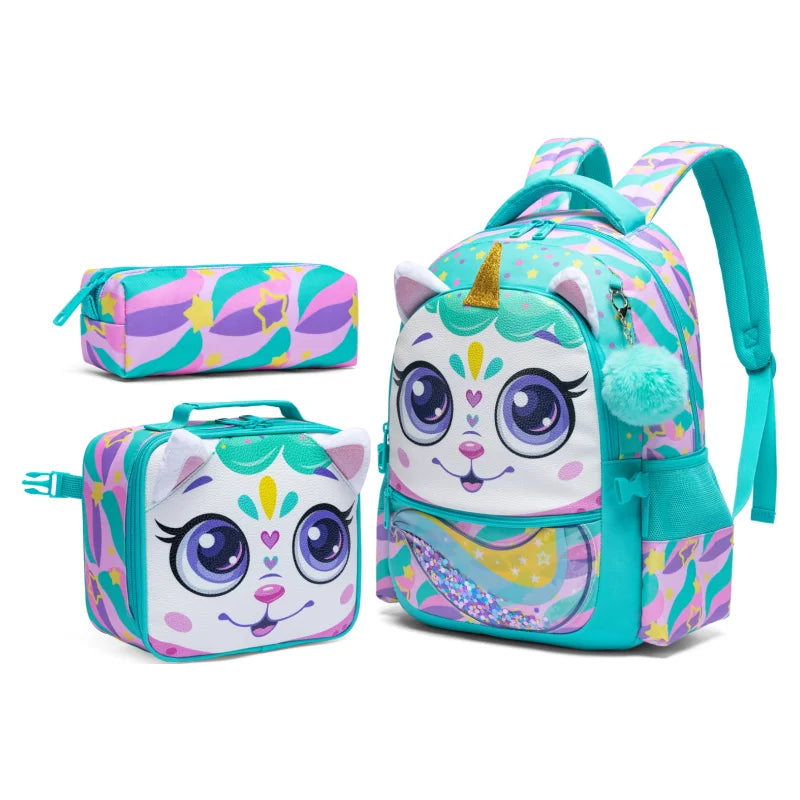 Cute Animal Kids Backpack Set with Lunch Box & Pencil Case for School, Travel, Elementary & Preschool Students