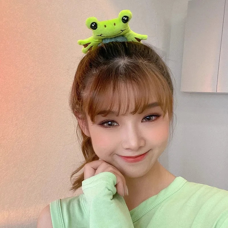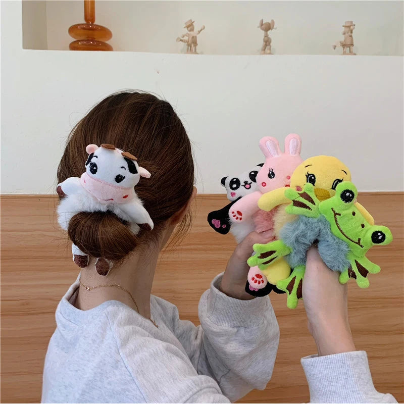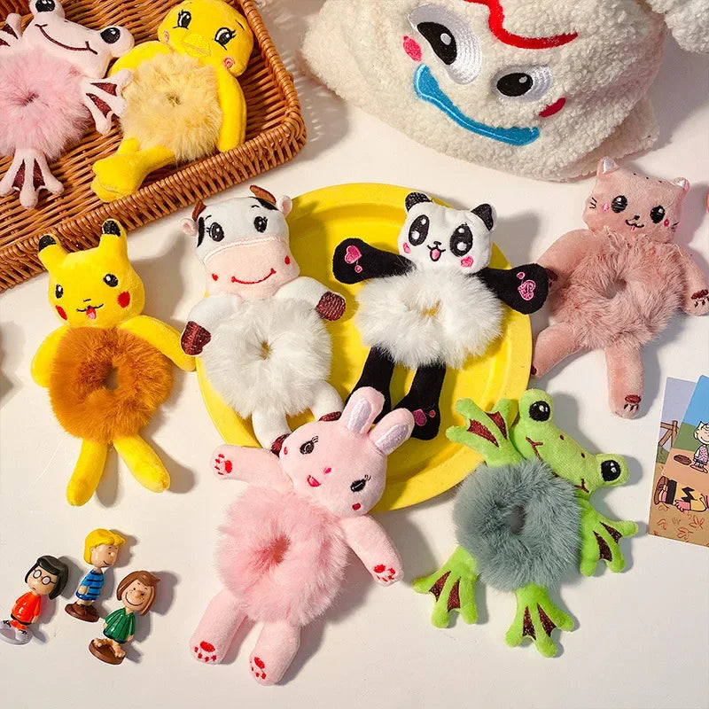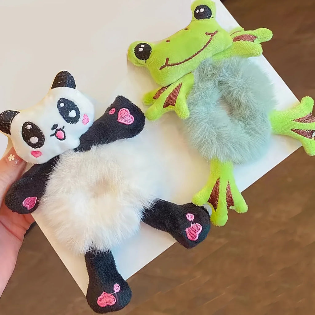 Cute Plush Animal Hair Bands - Frog, Panda, Cat Elastic Hair Ties, Women’s Barrettes & Headwear Accessories